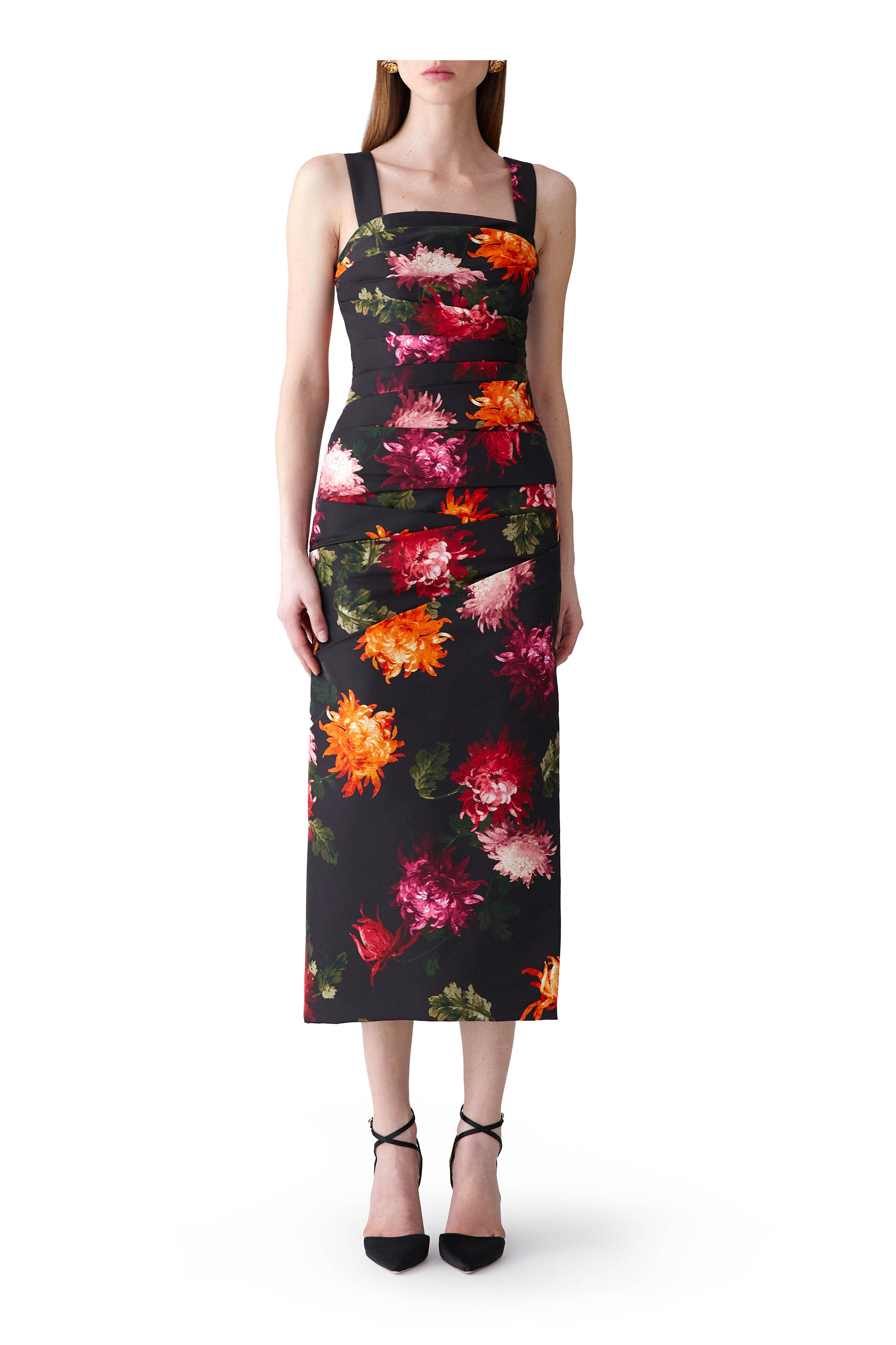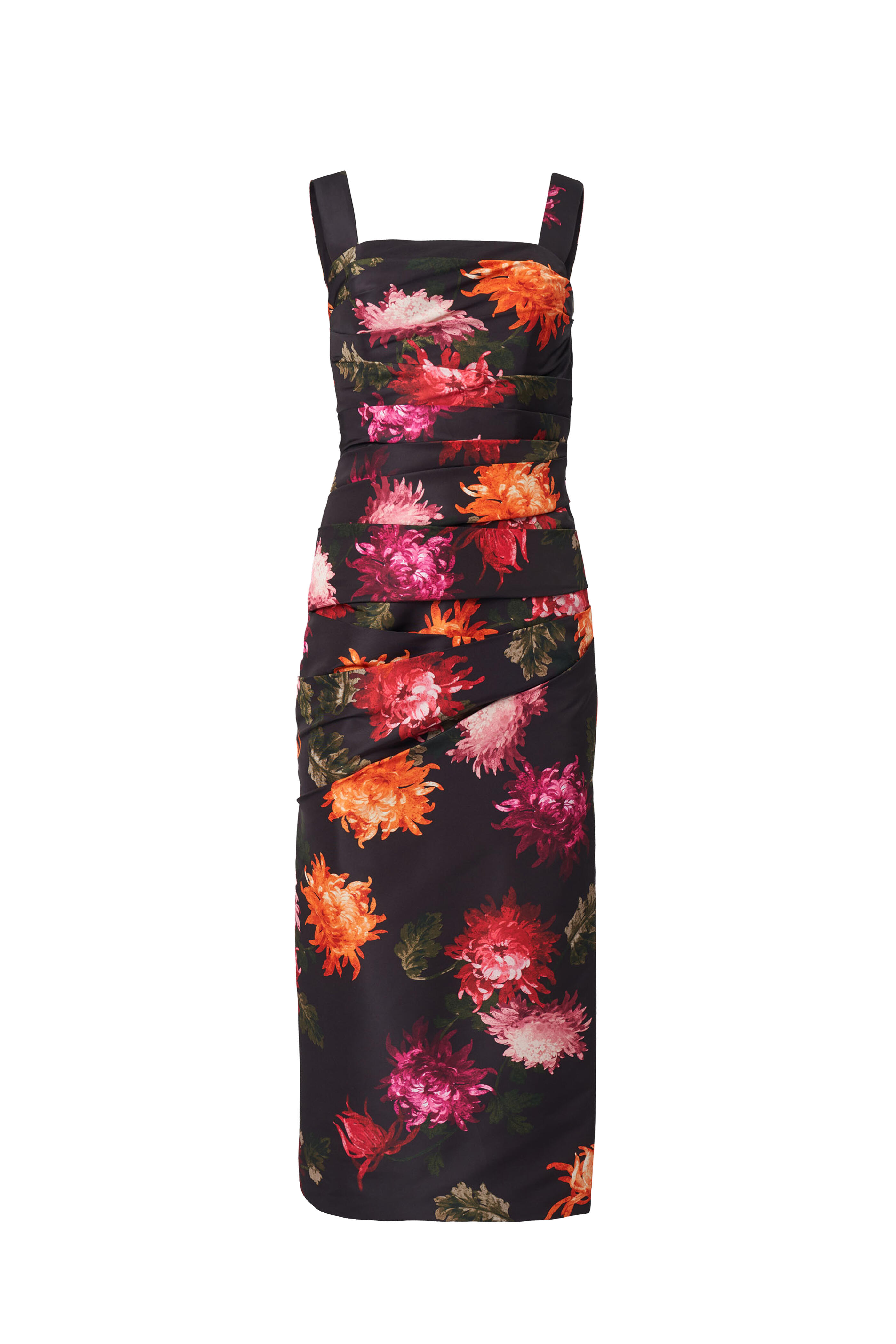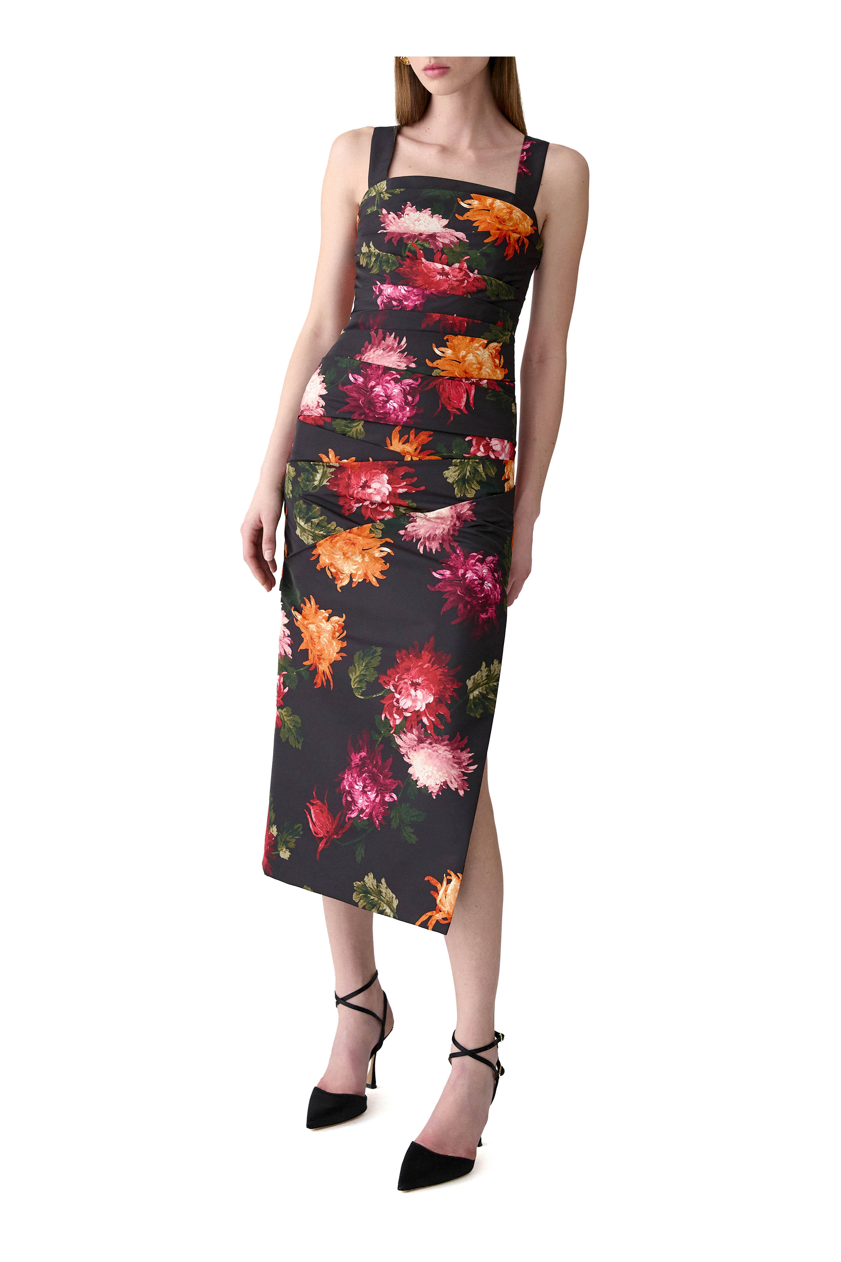 Chrysanthemum Print Draped Midi Dress