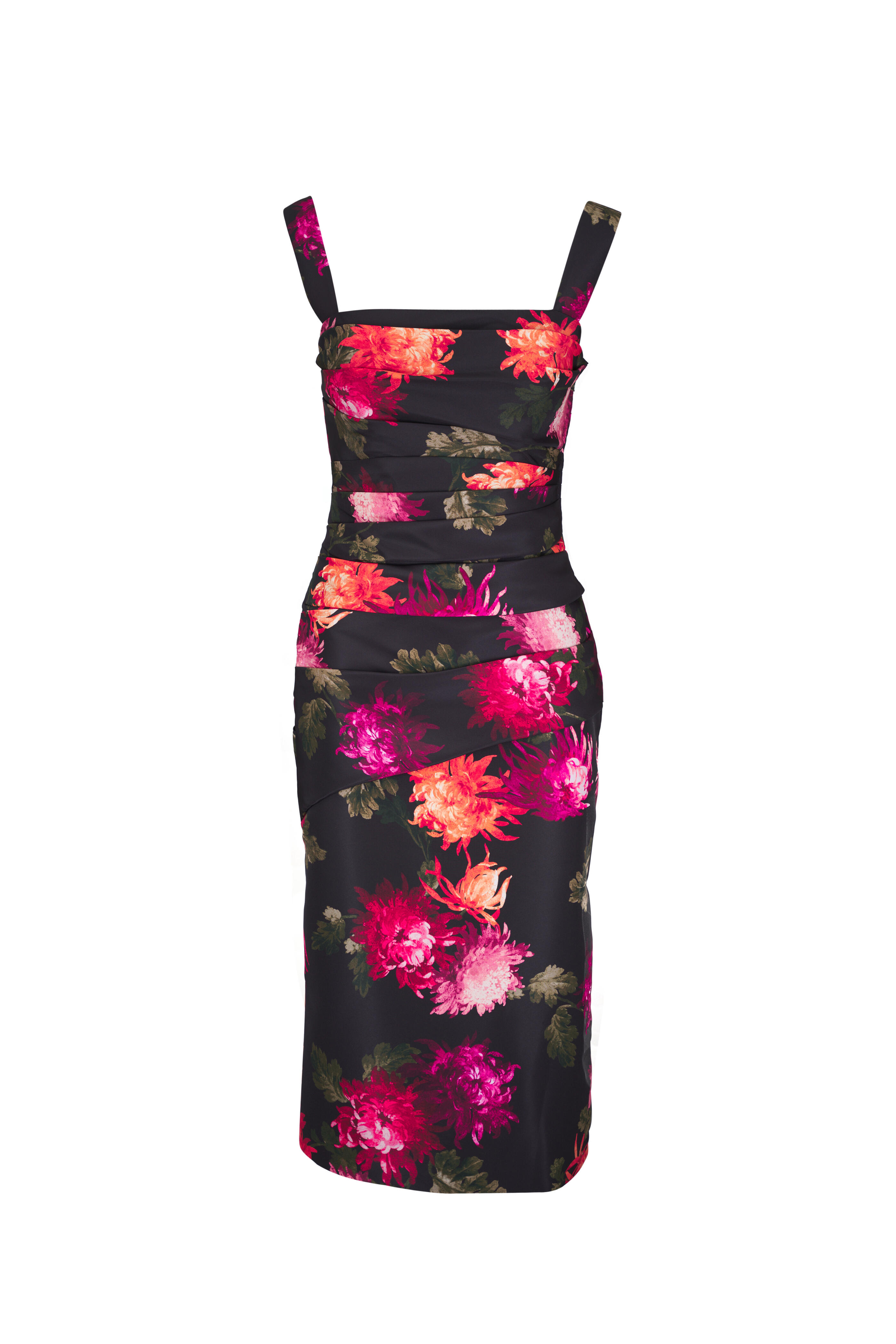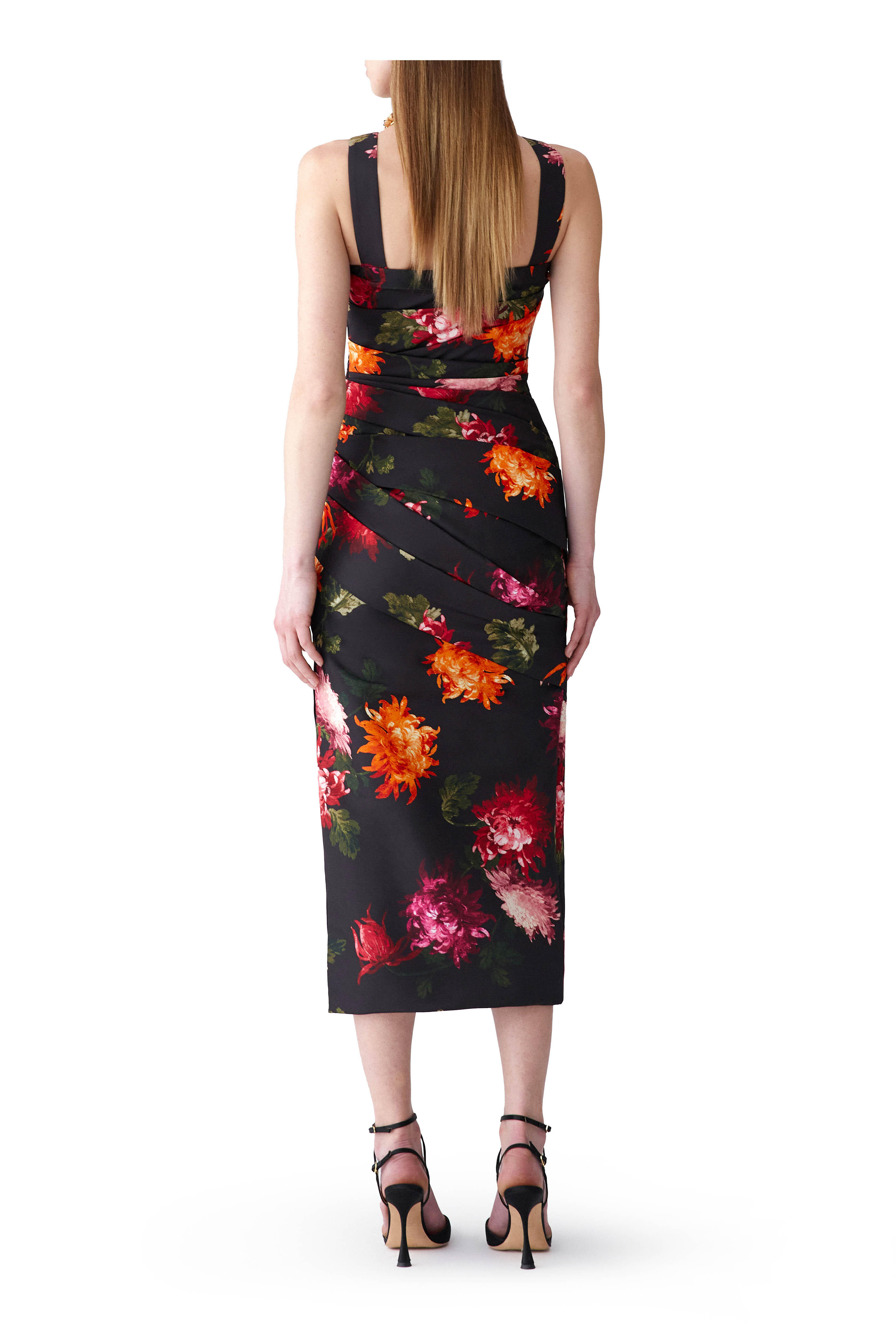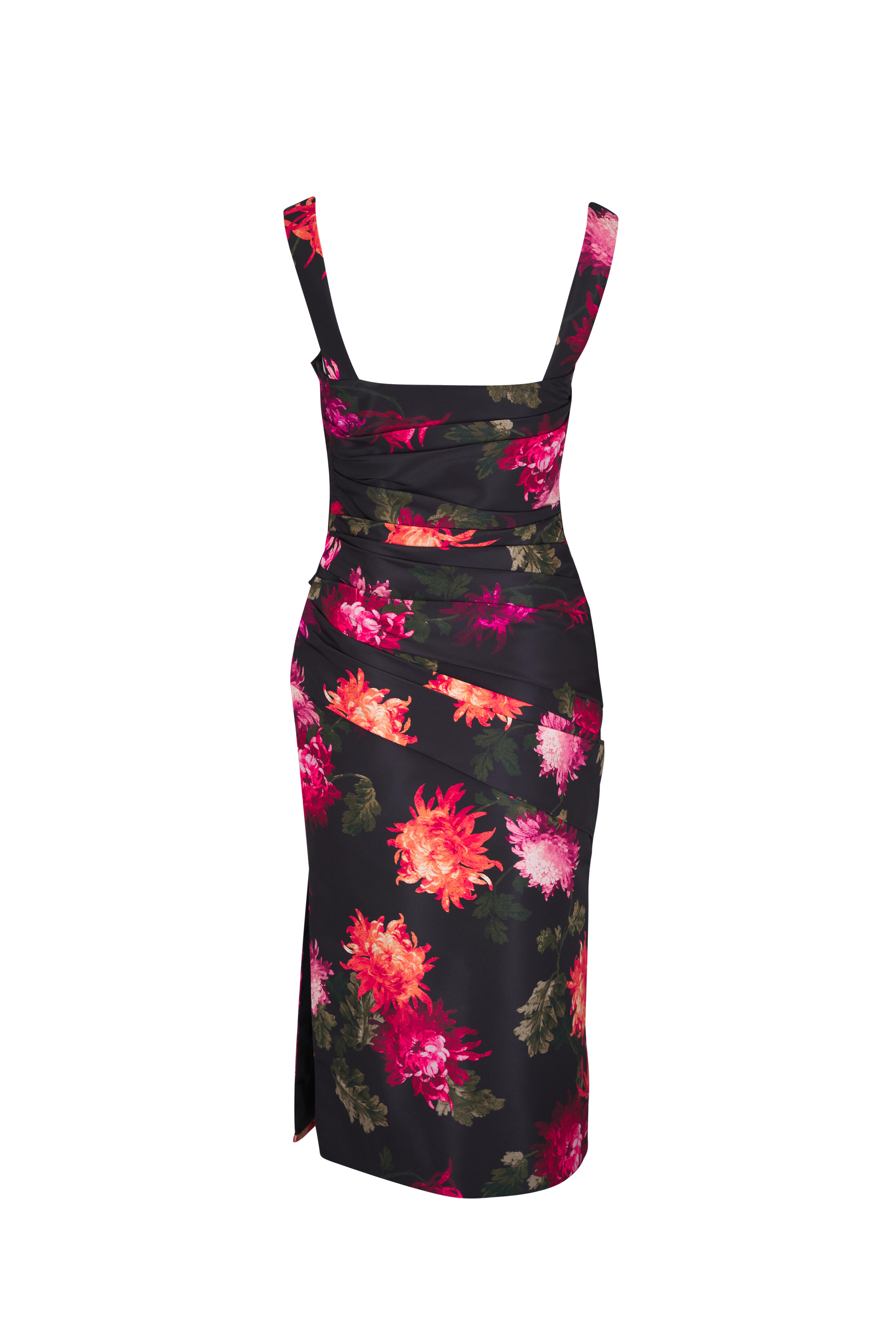 Chrysanthemum Print Draped Midi Dress