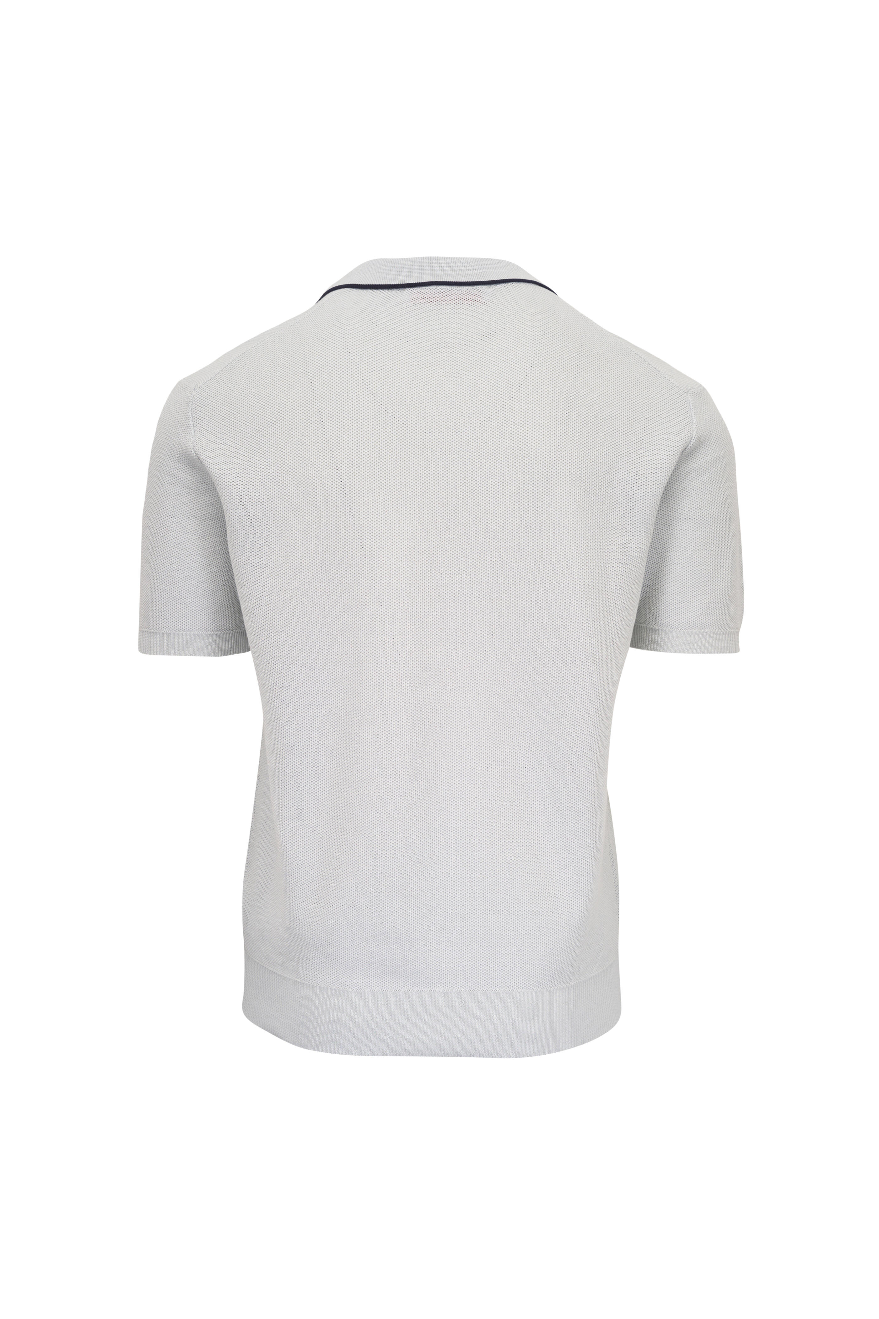 Johnny collar. Ribbed trims. Pique stitch. Made in Italy. Tailored fit. 100% Merino wool. Dry clean.