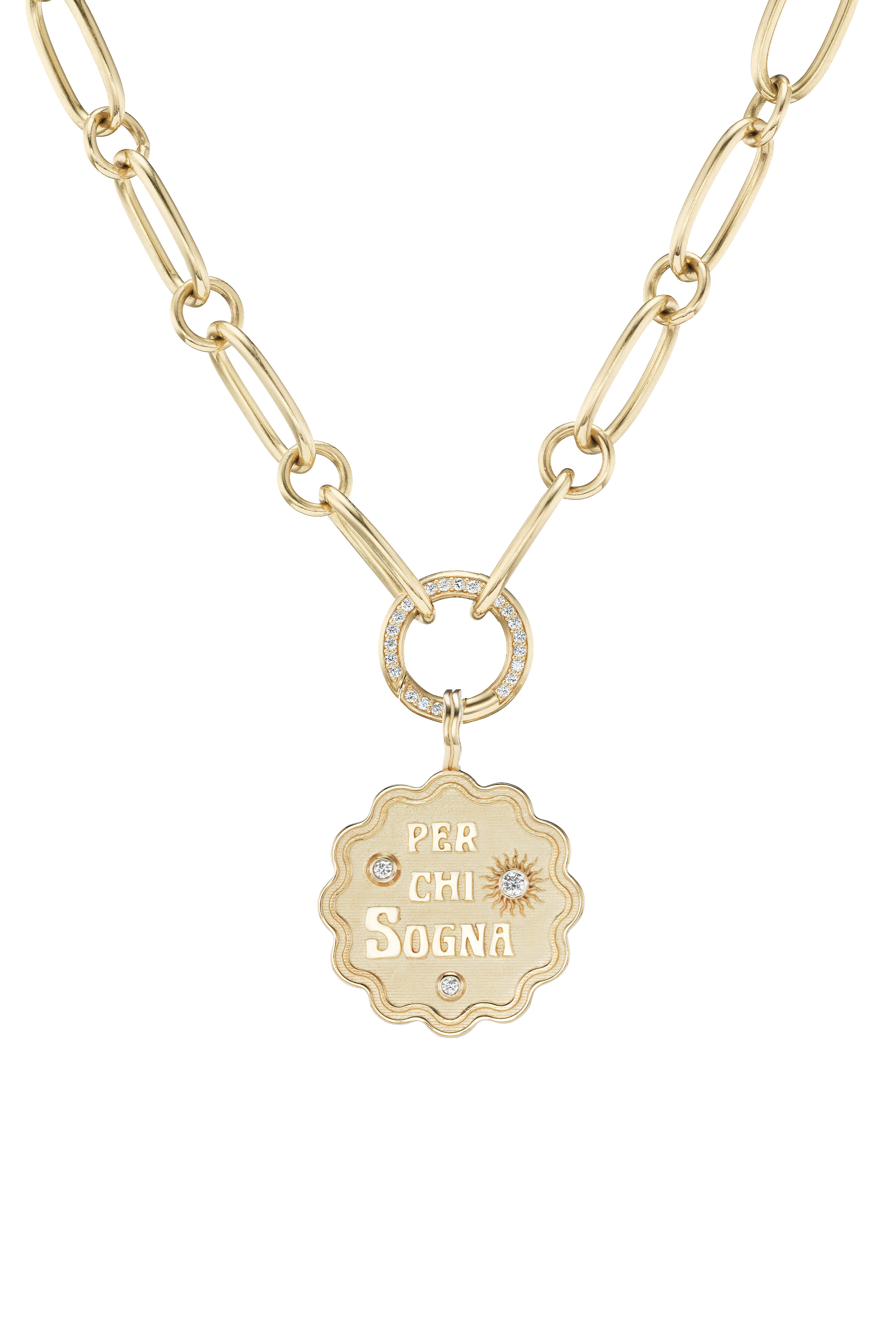 14k Yellow Gold "Per Chi Signa" Round Pendant
