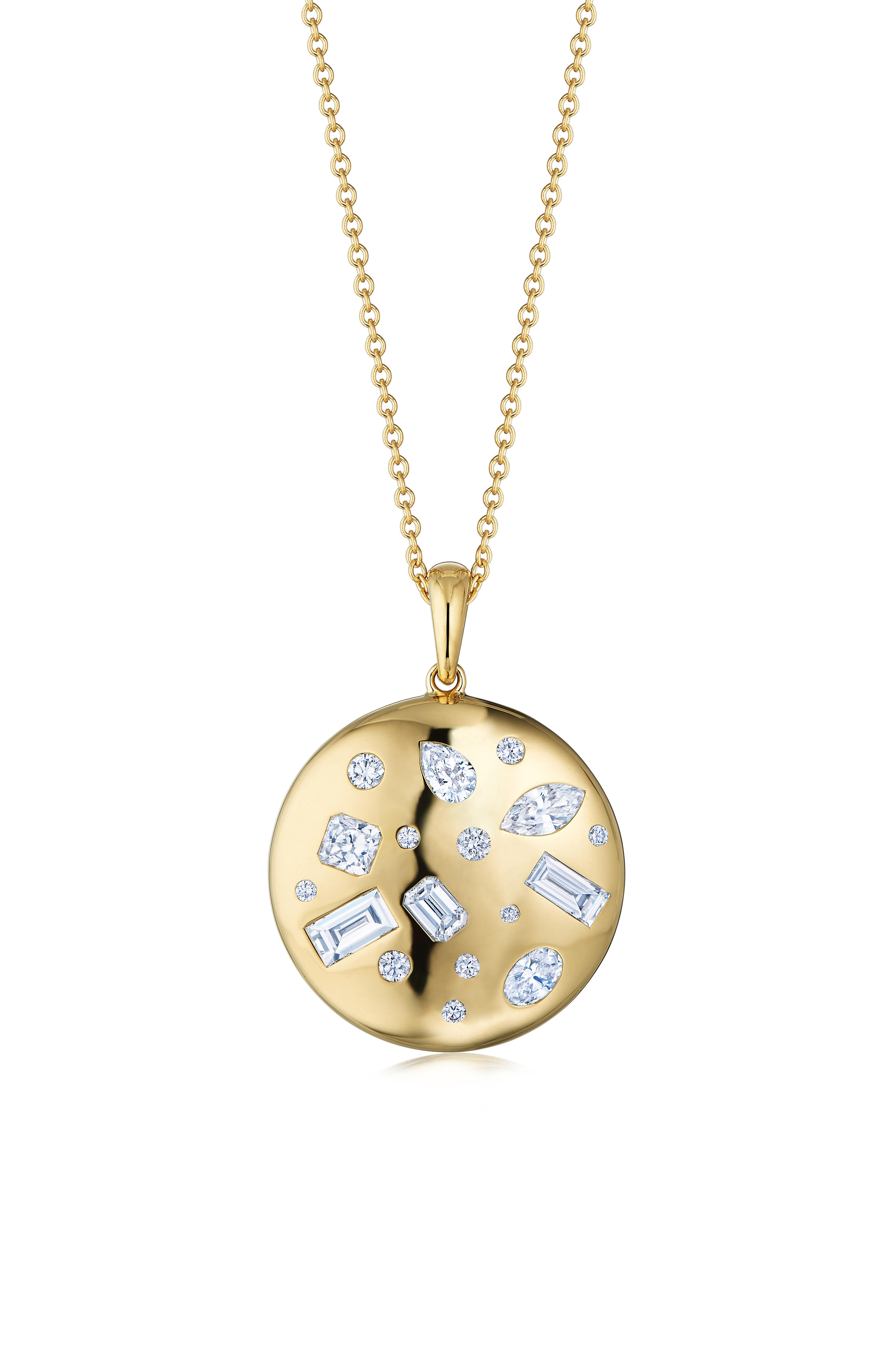 18k Yellow Gold Round Pendant Cobblestone Necklace