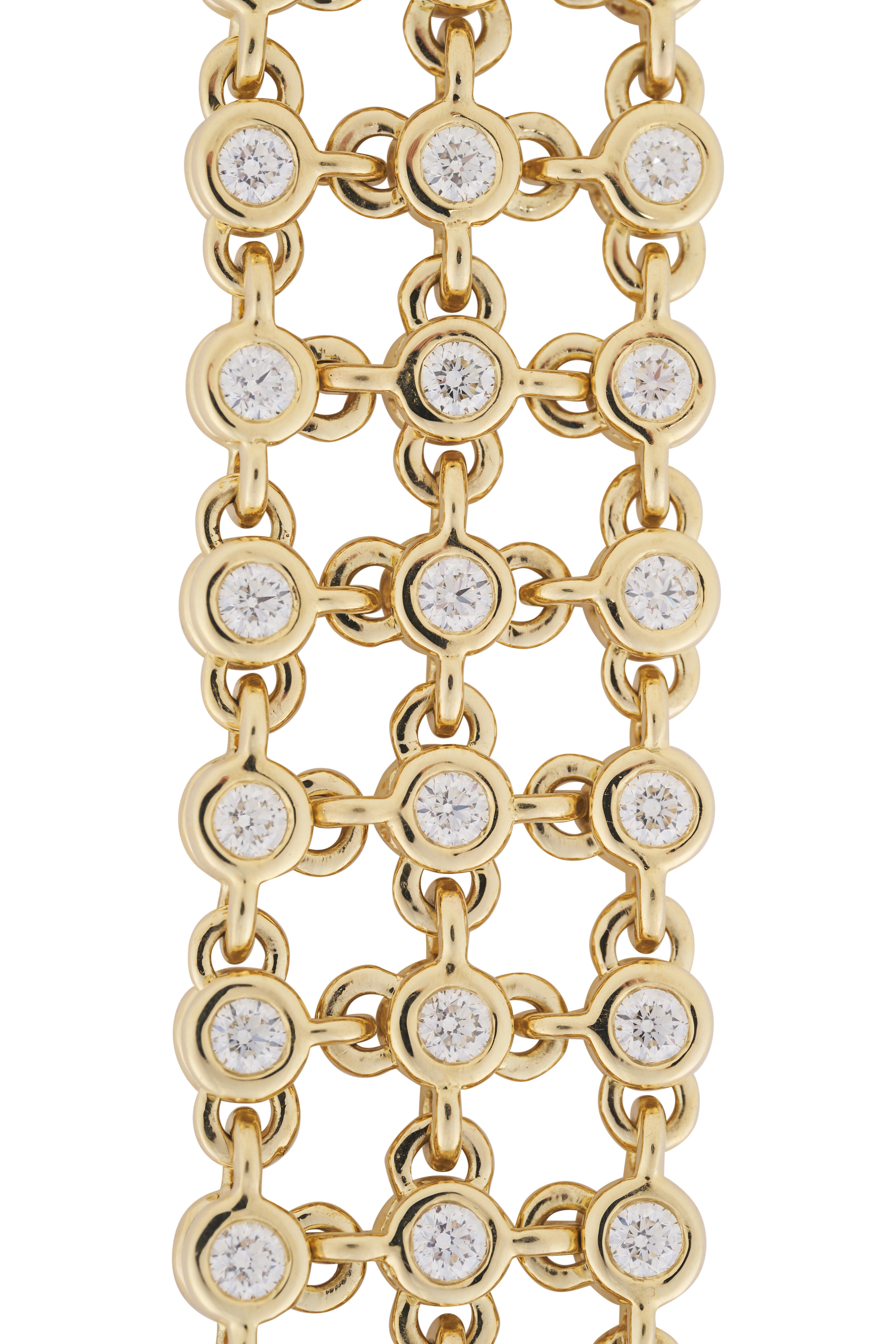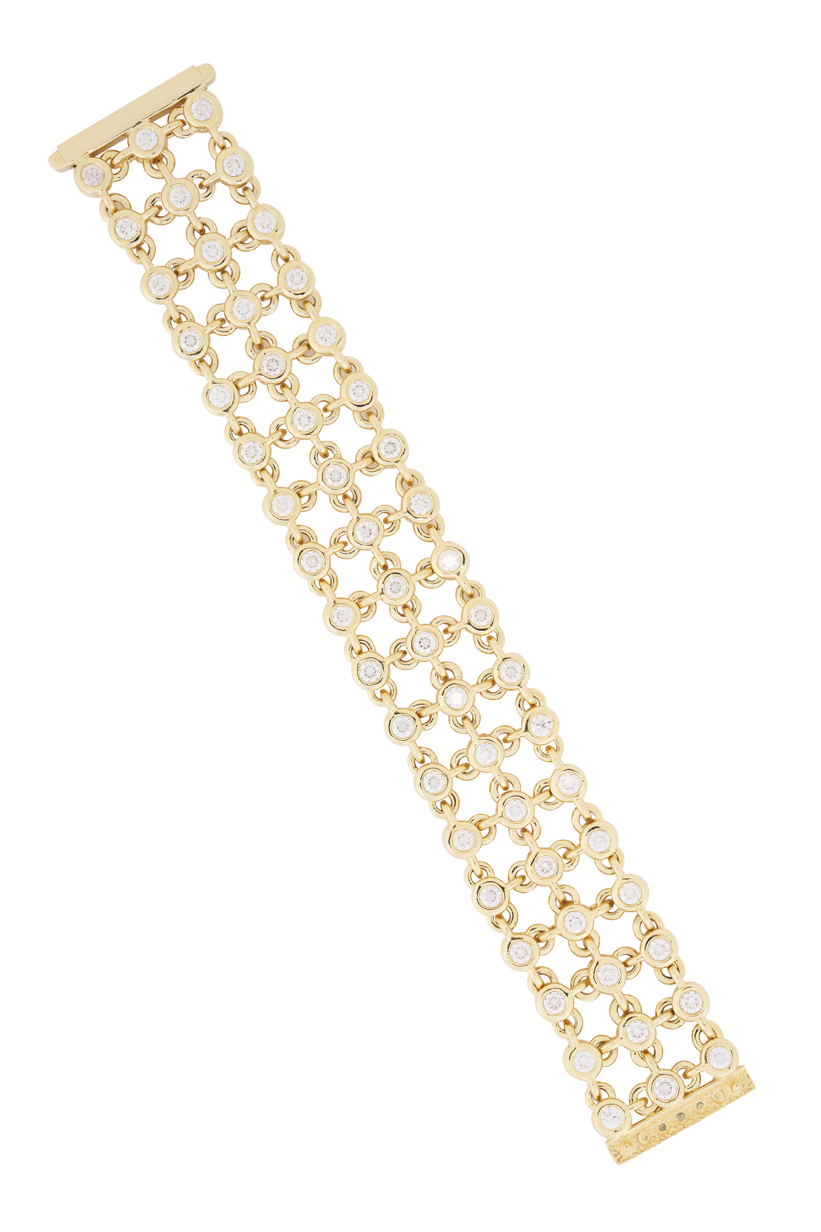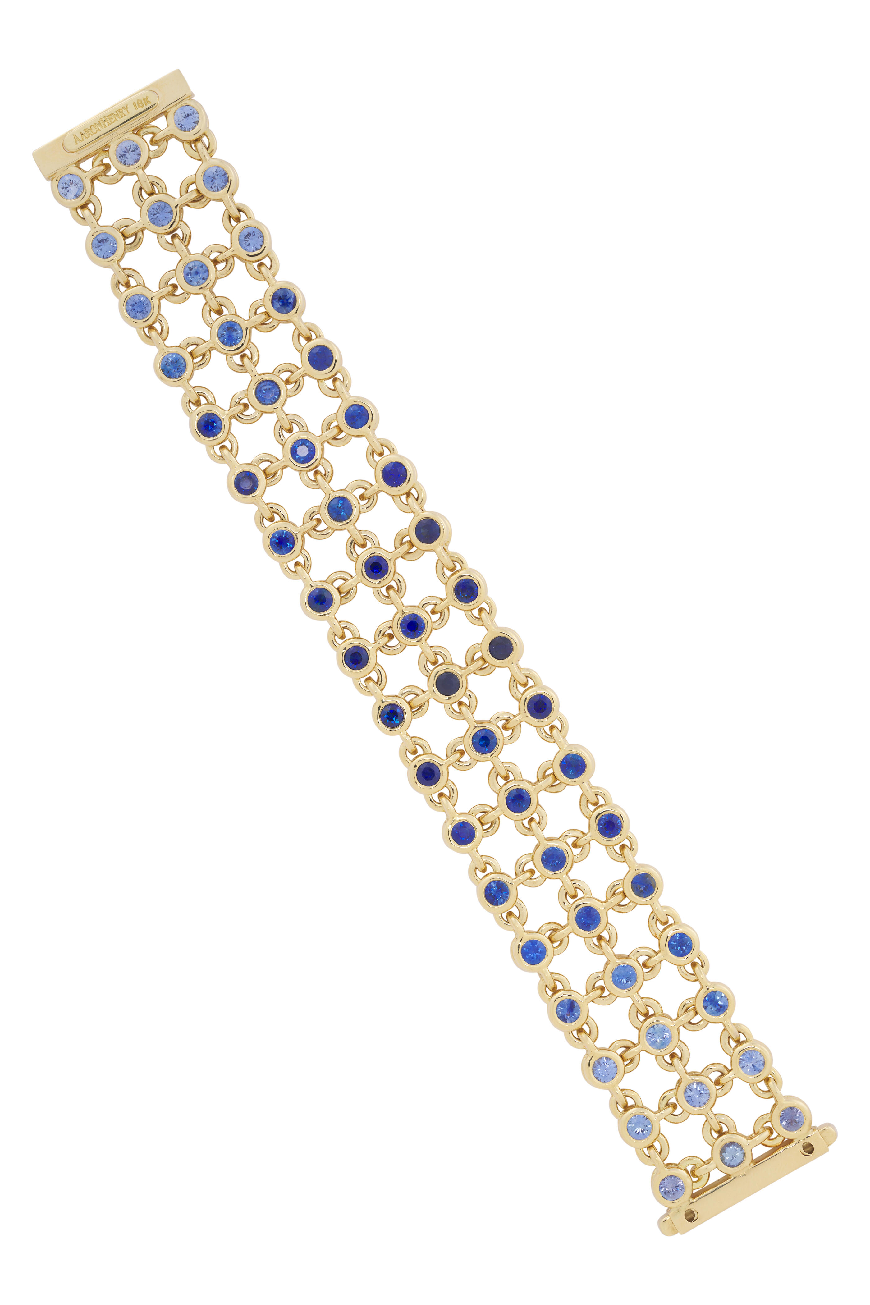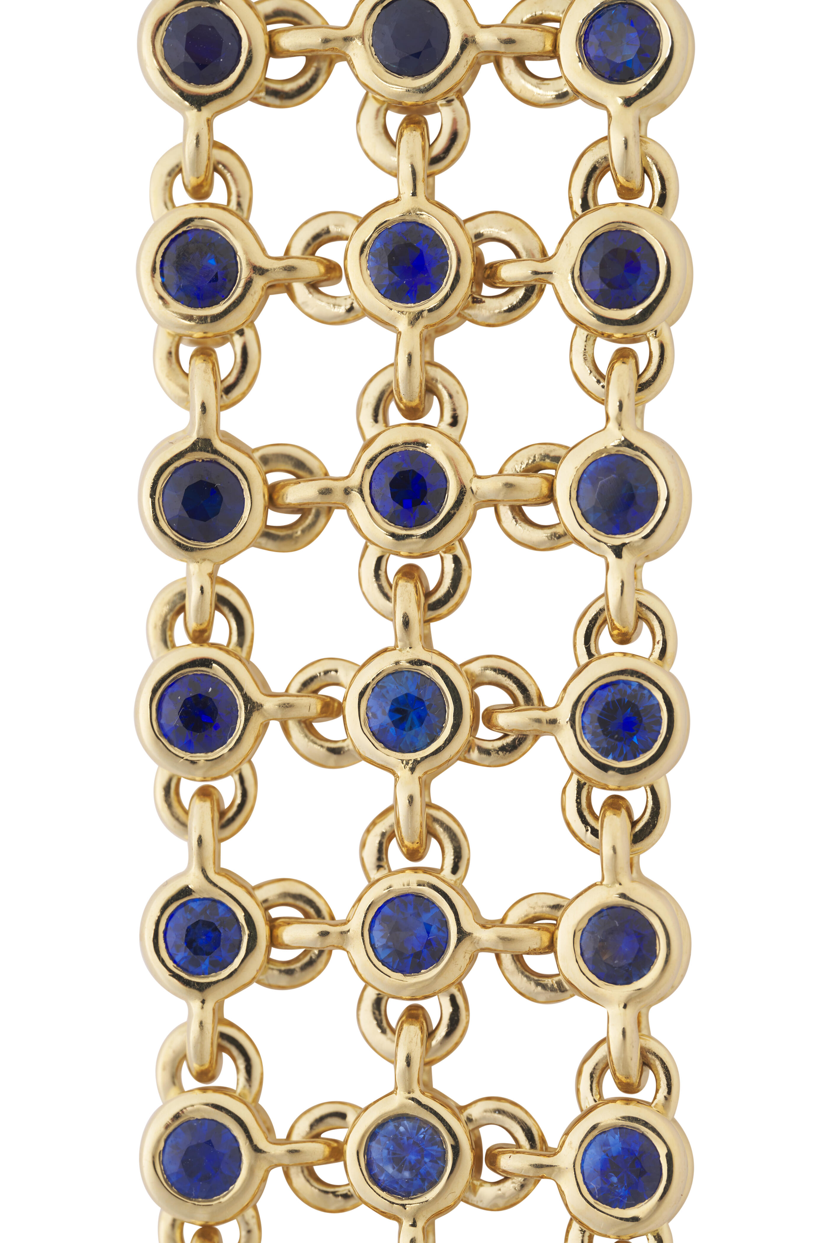 18k yellow gold. 9.2 carat diamonds. 12.10 carat blue sapphires.