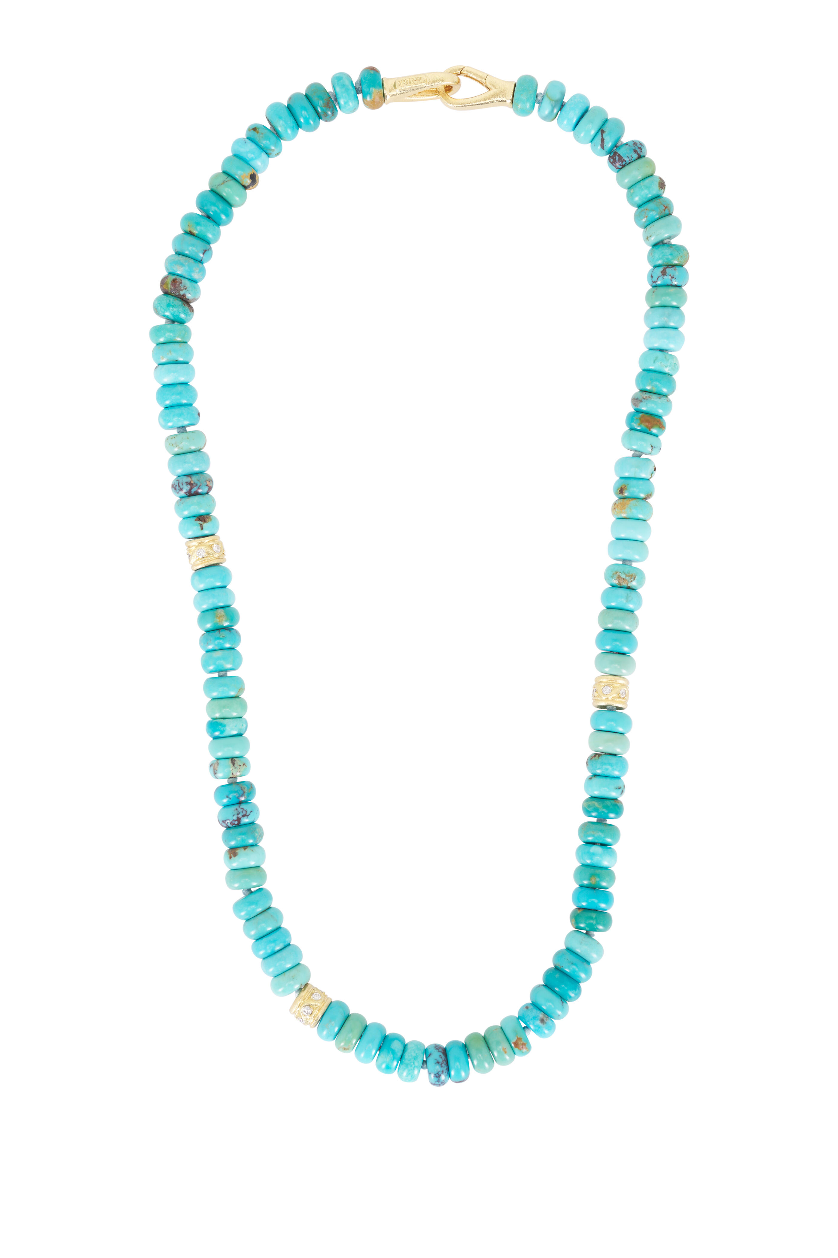 18k Yellow Gold. 0.41 ct Diamond. Green/Blue Mentos Beads.