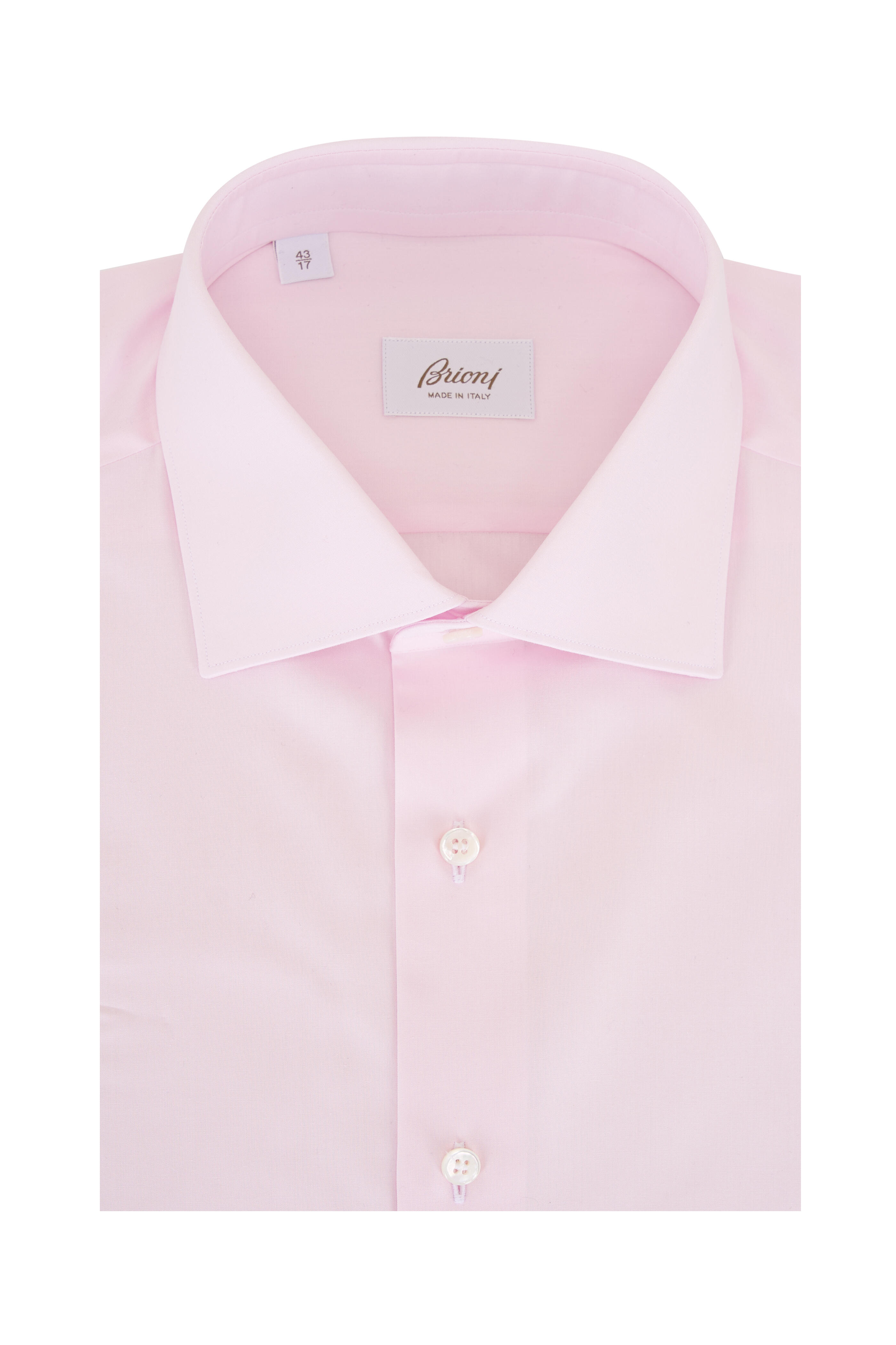 Spread collar. French front button placket. Single button barrel cuffs. Made in Italy. 100% cotton. Machine wash.
