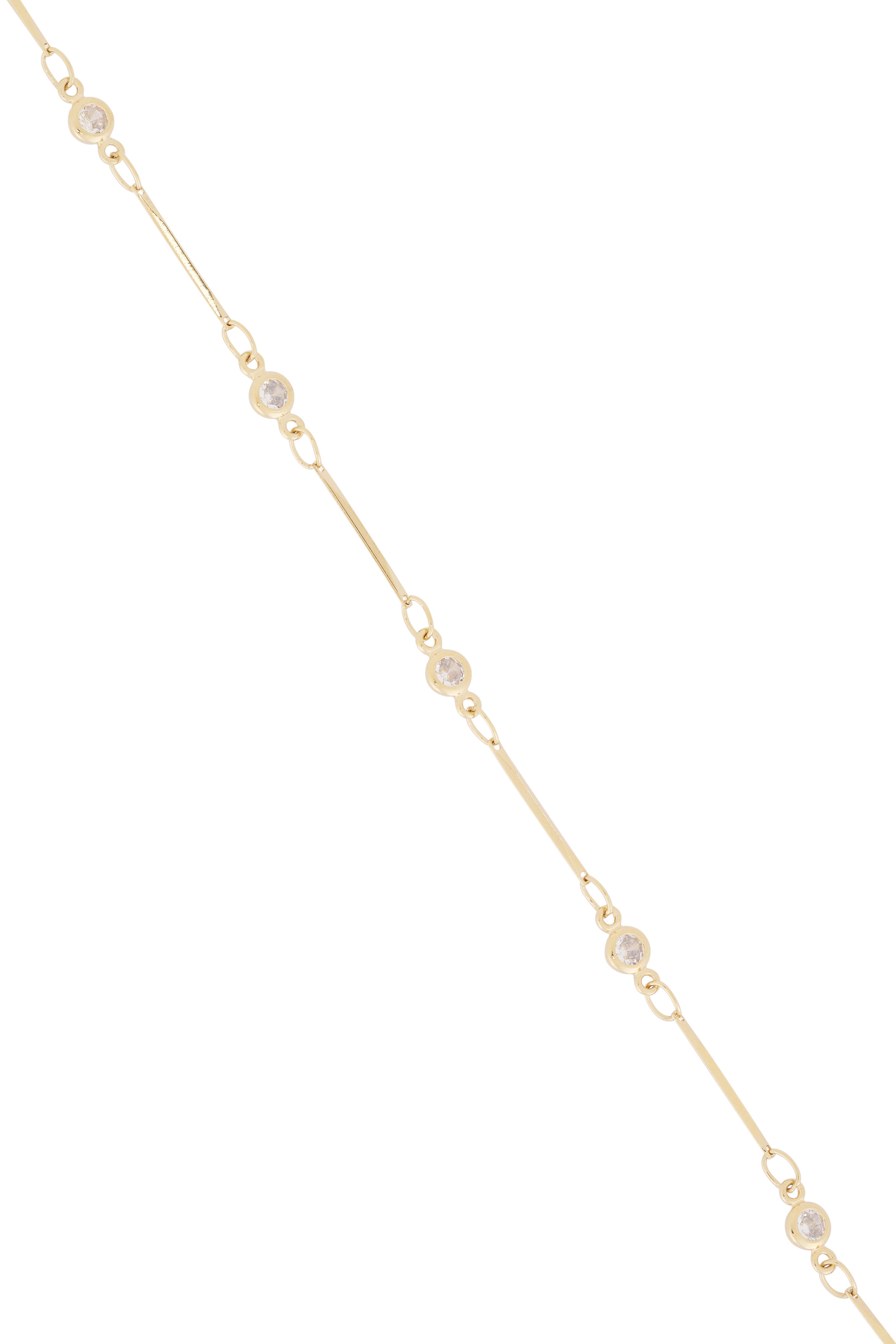 24k Gold Overlay. Zirconia Stones. Lobster Claw Clasp. 3 mm Cubic Zirconia Stones.