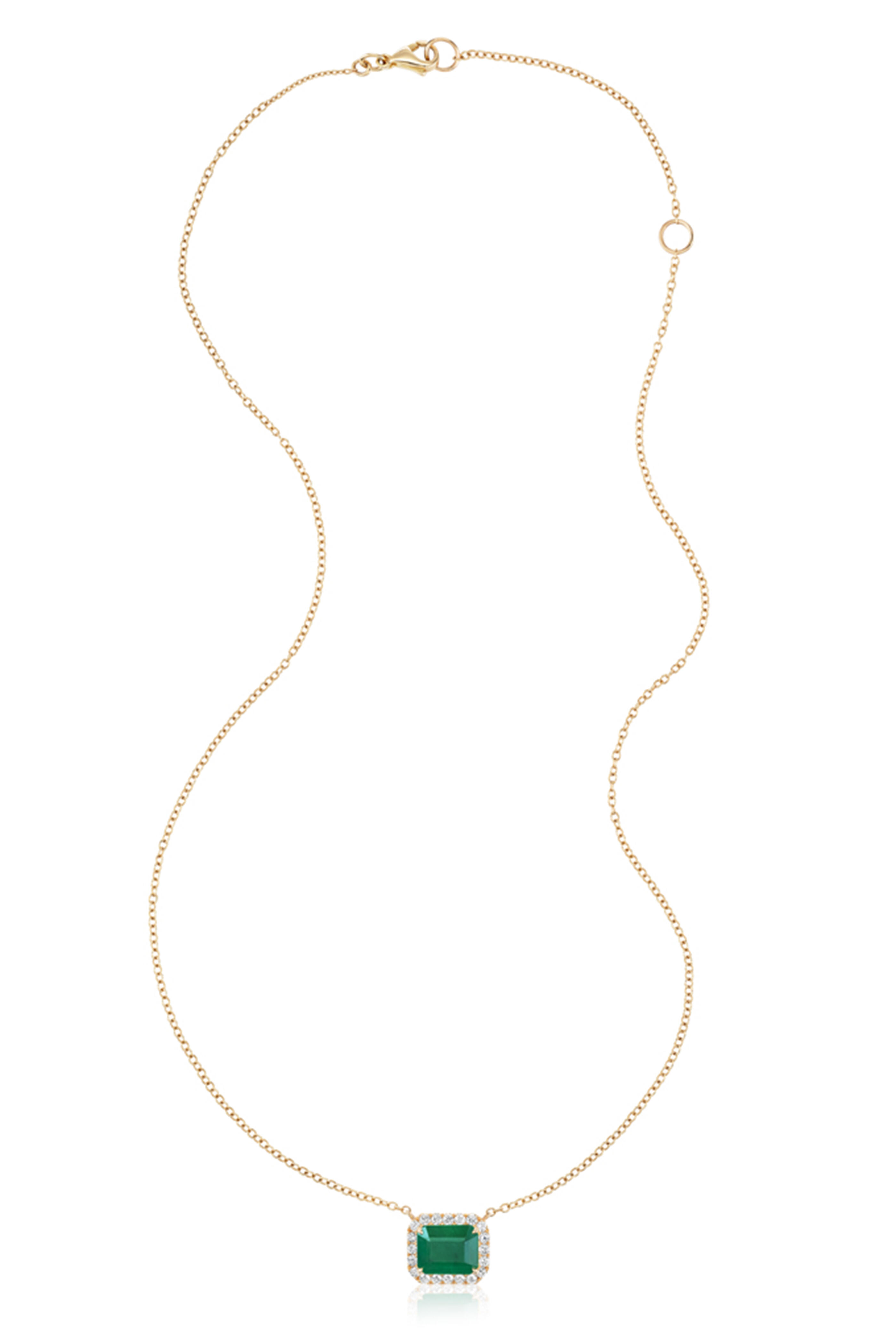 18k Yellow Gold Emerald & Diamond Pendant Necklace