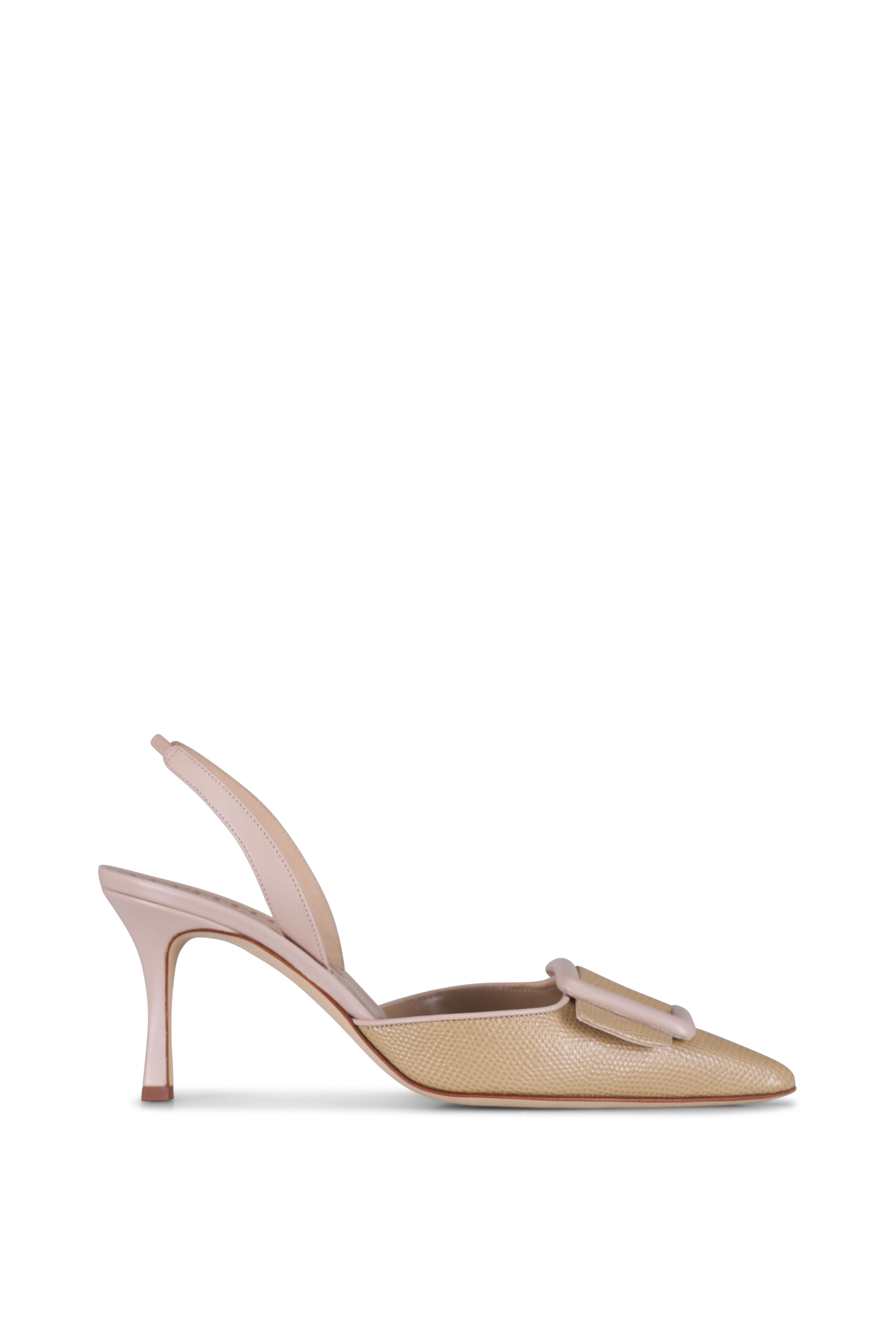 Leather upper. Pointed toe. Slingback. Leather lining and insole. Leather sole. Made in Italy. Color: Nude. Heel measurement: 70mm.