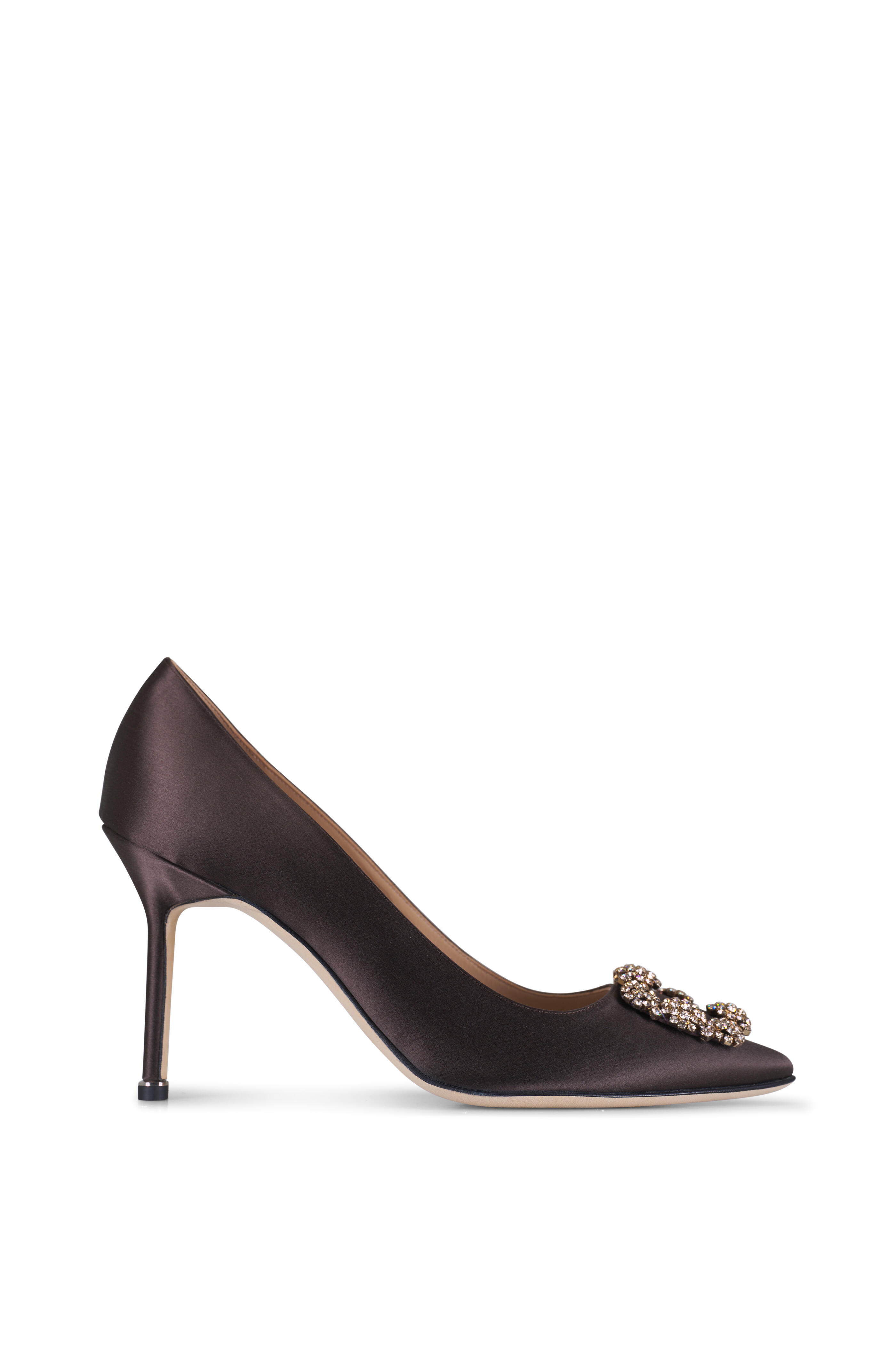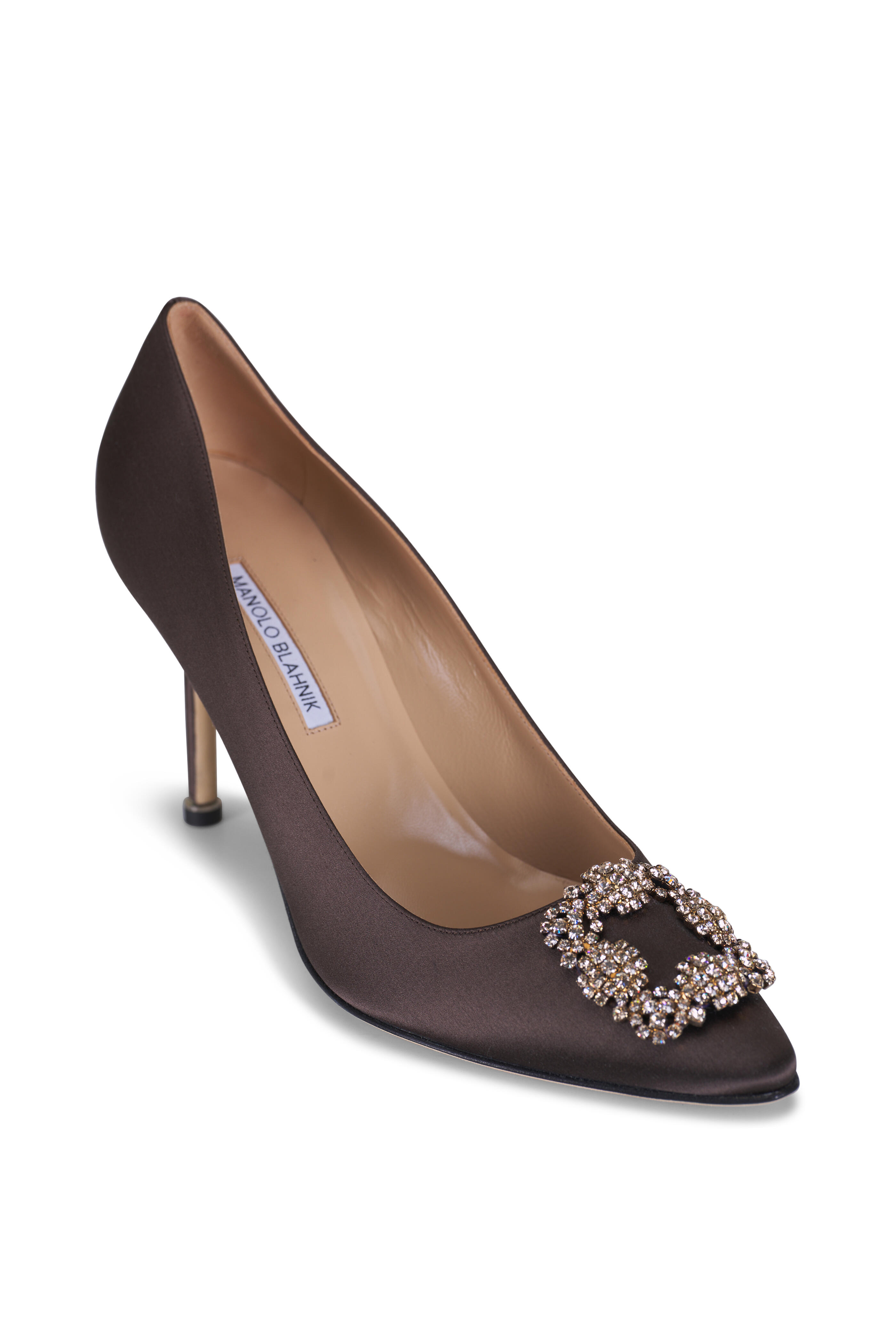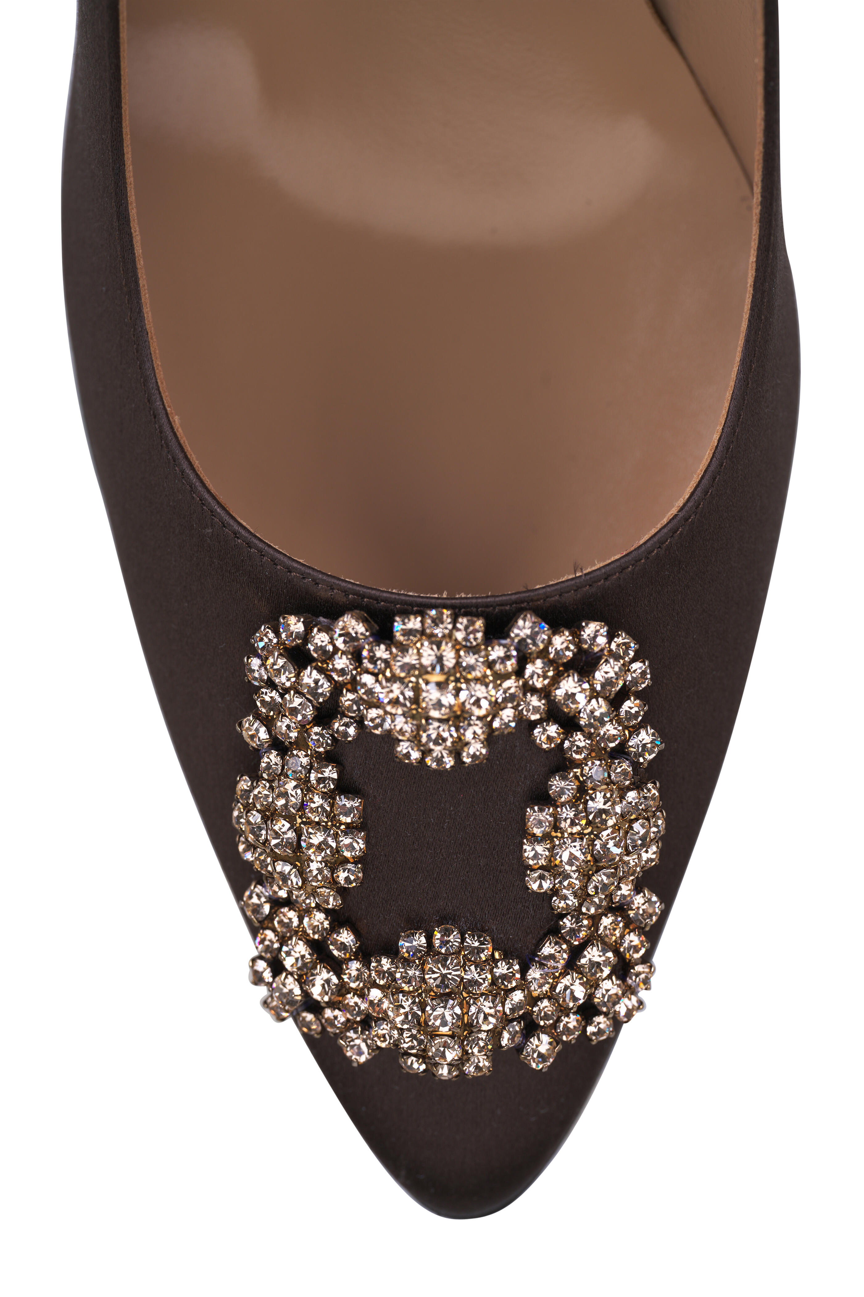 Hangisi Brown Satin Jewel Buckle Pump, 90mm
