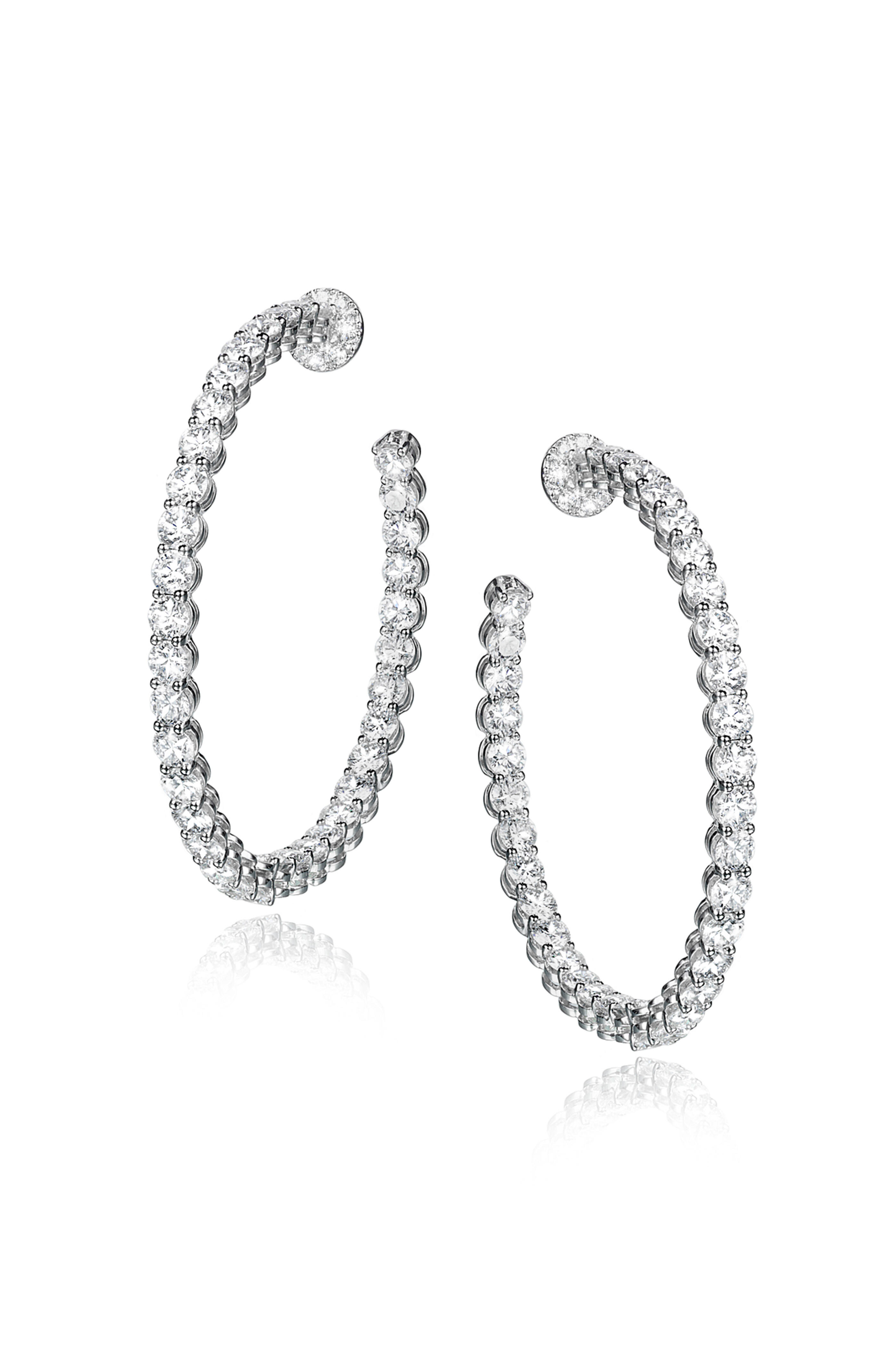 18k White Gold Diamond Basic Prong Set Round Hoops