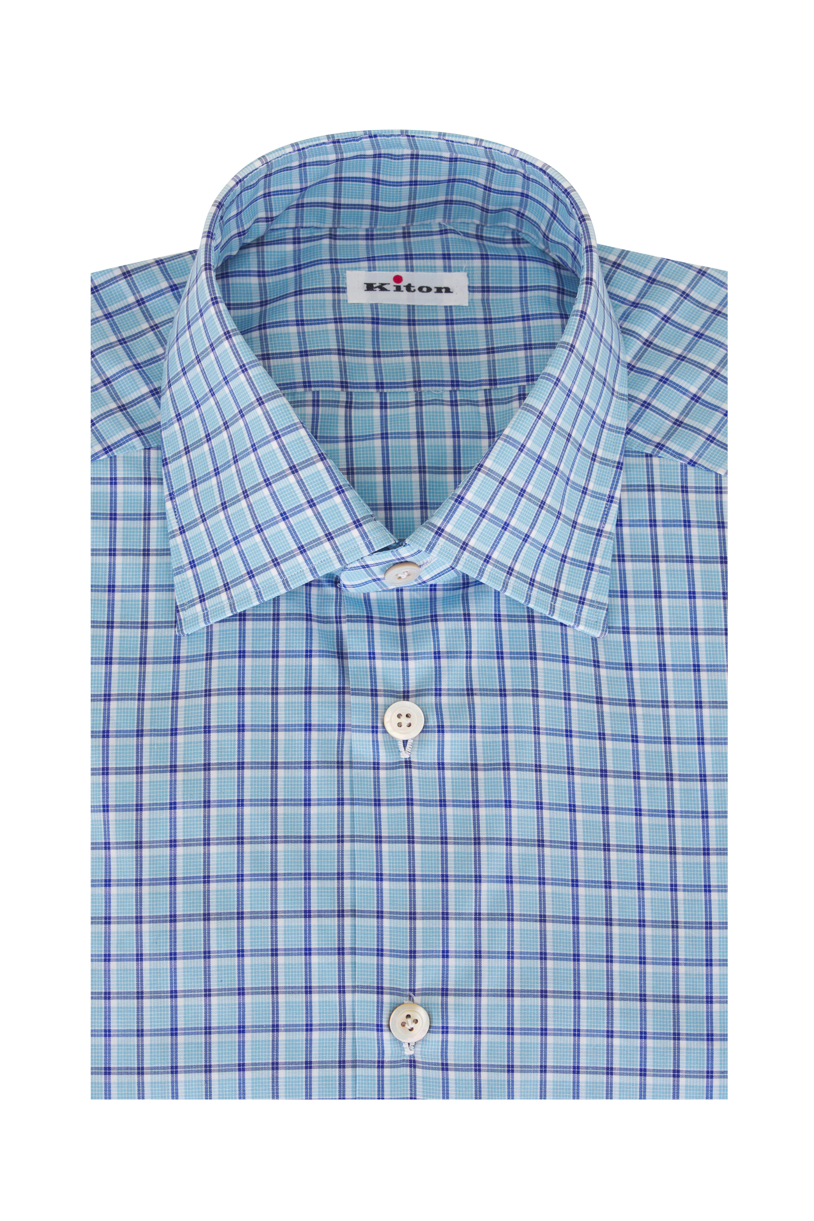 Blue Check Cotton Dress Shirt