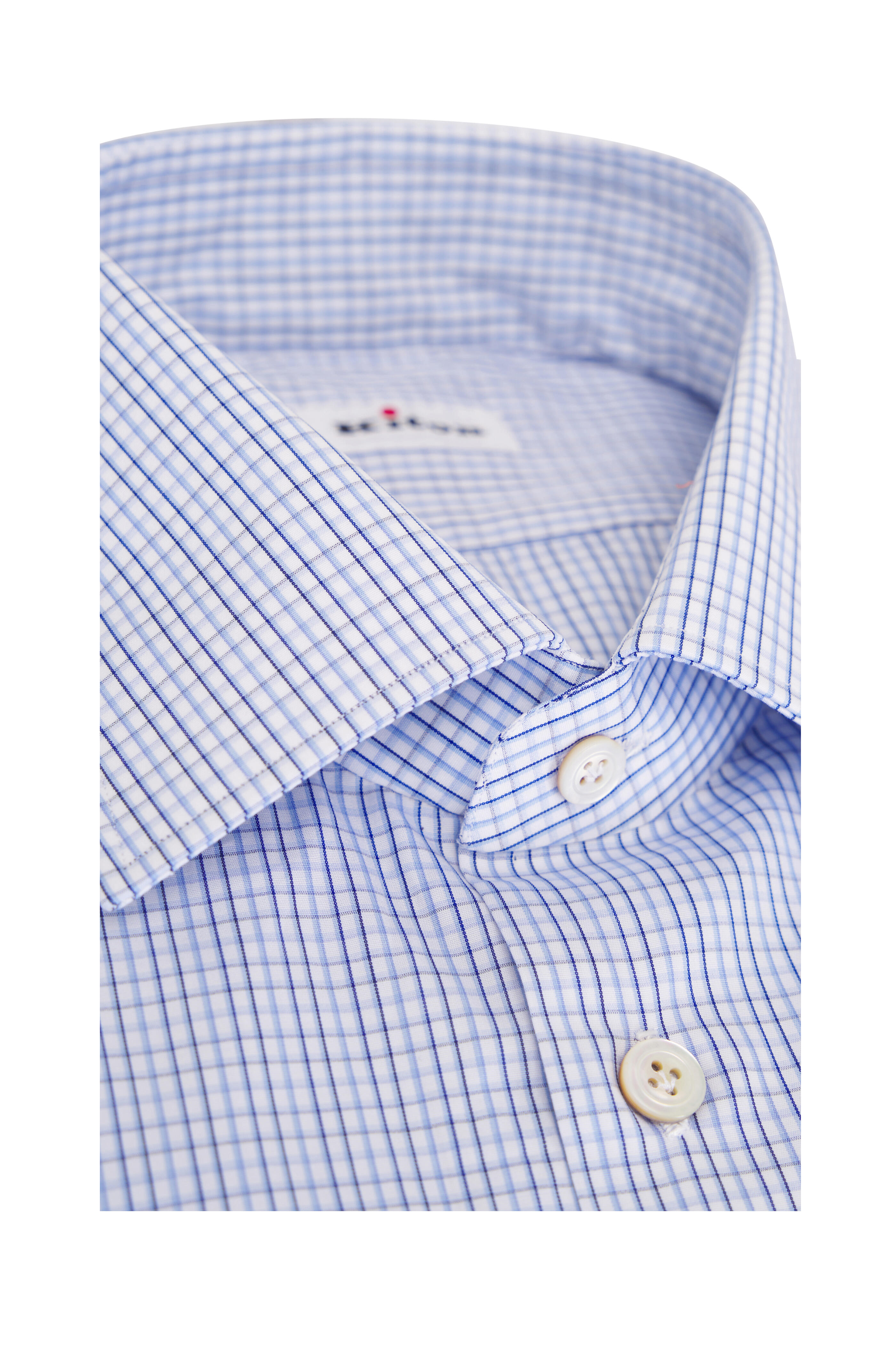 Point collar. Button down front closure. Long sleeves. Barrel mitered cuffs. Made in Italy. 100% cotton. Dry clean.