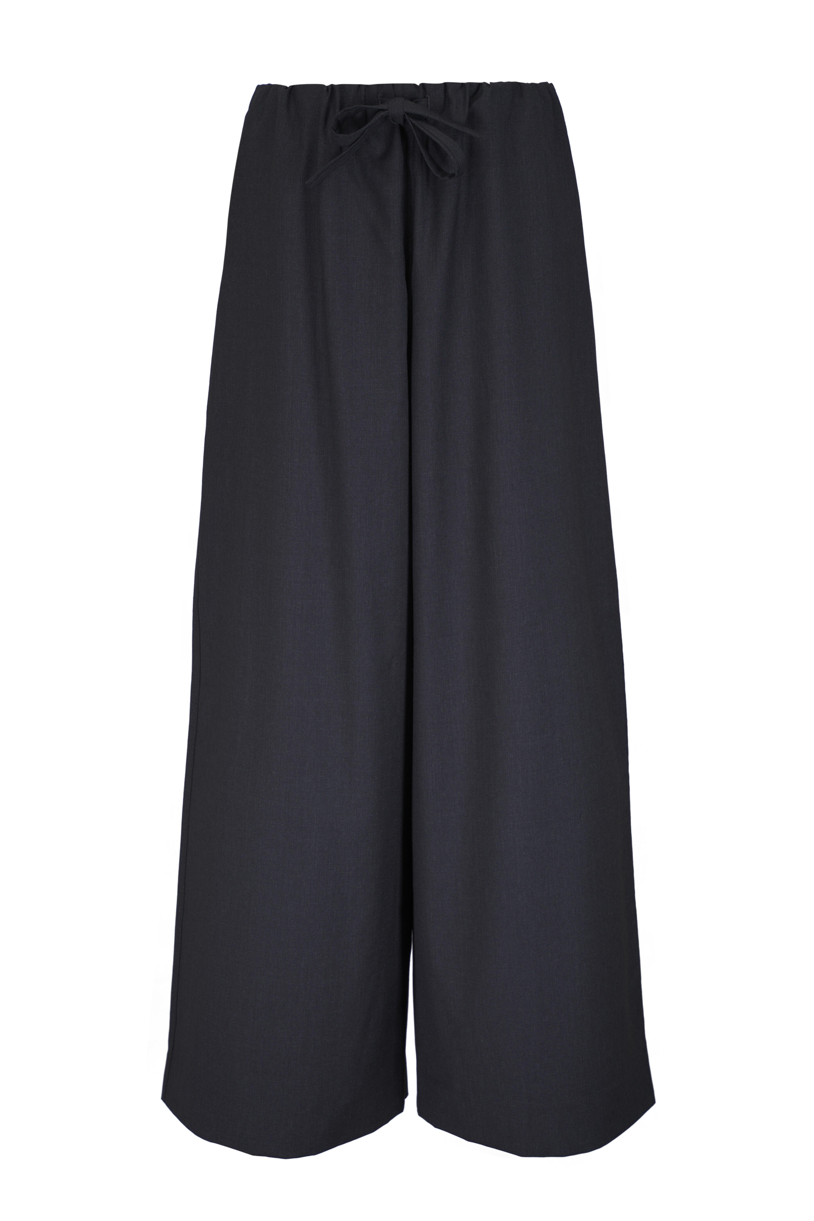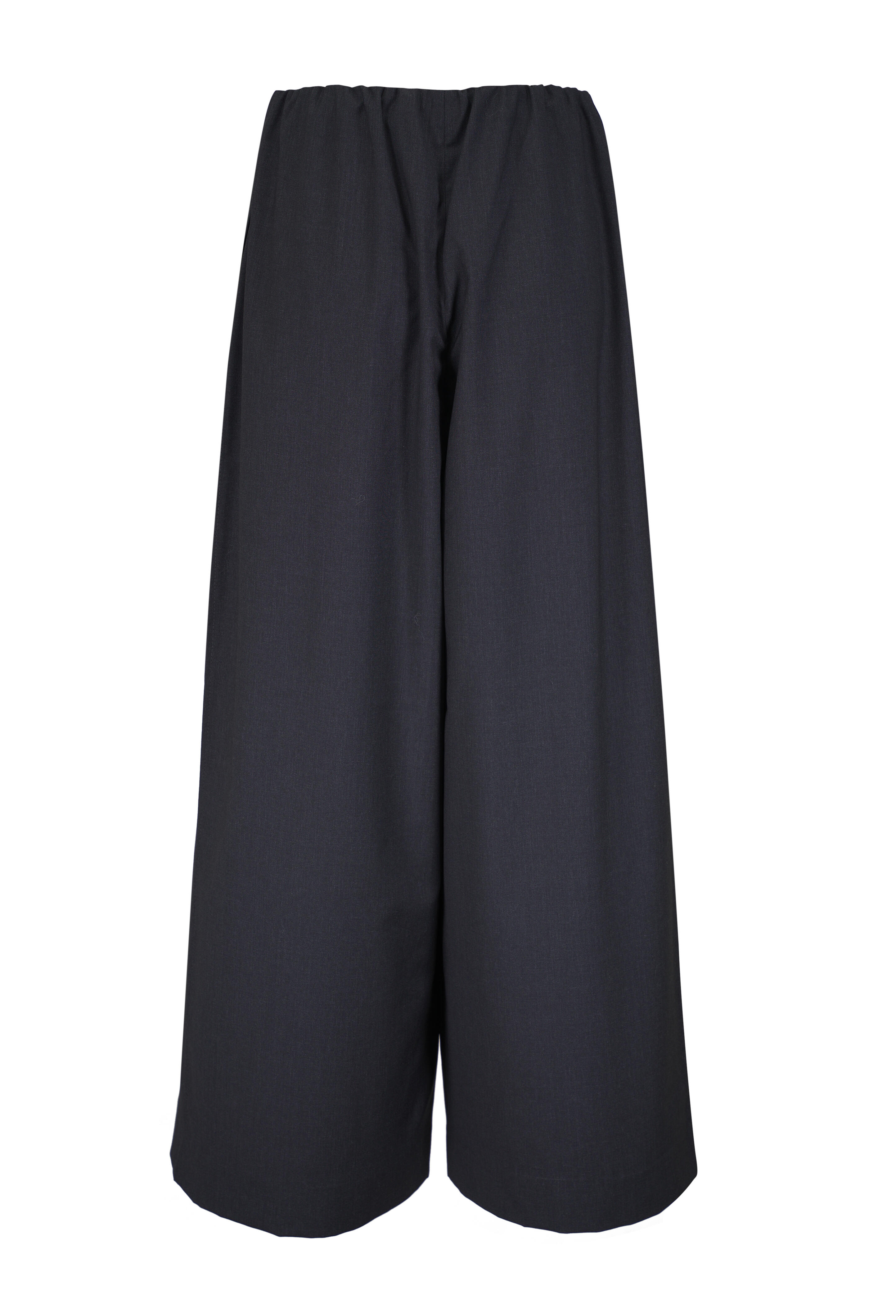 Elasticated drawstring waistband. Side slip pockets. Made in Portugal. 100% wool. Dry clean.