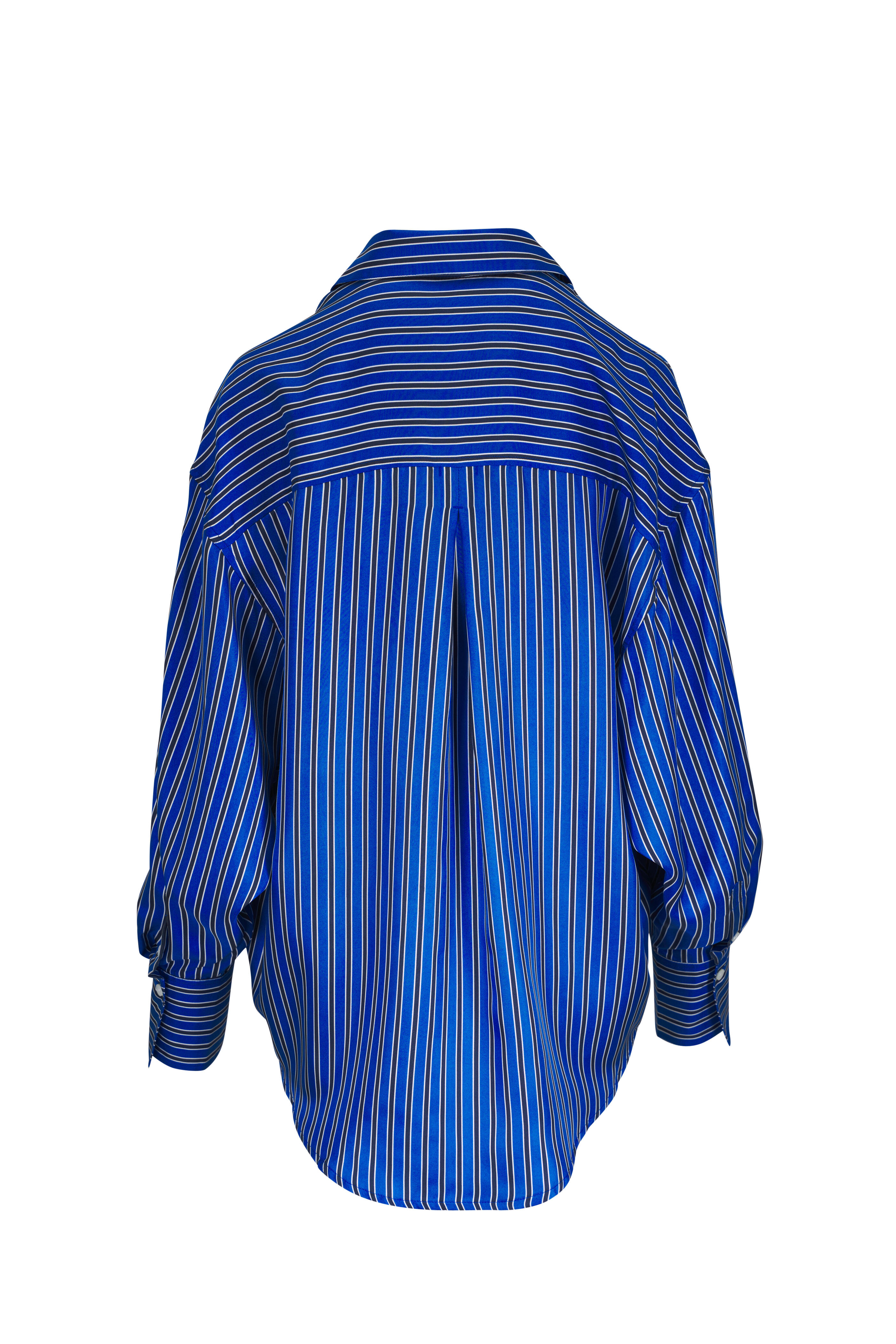Blue, Navy & White Stripe Silk Oversized Shirt