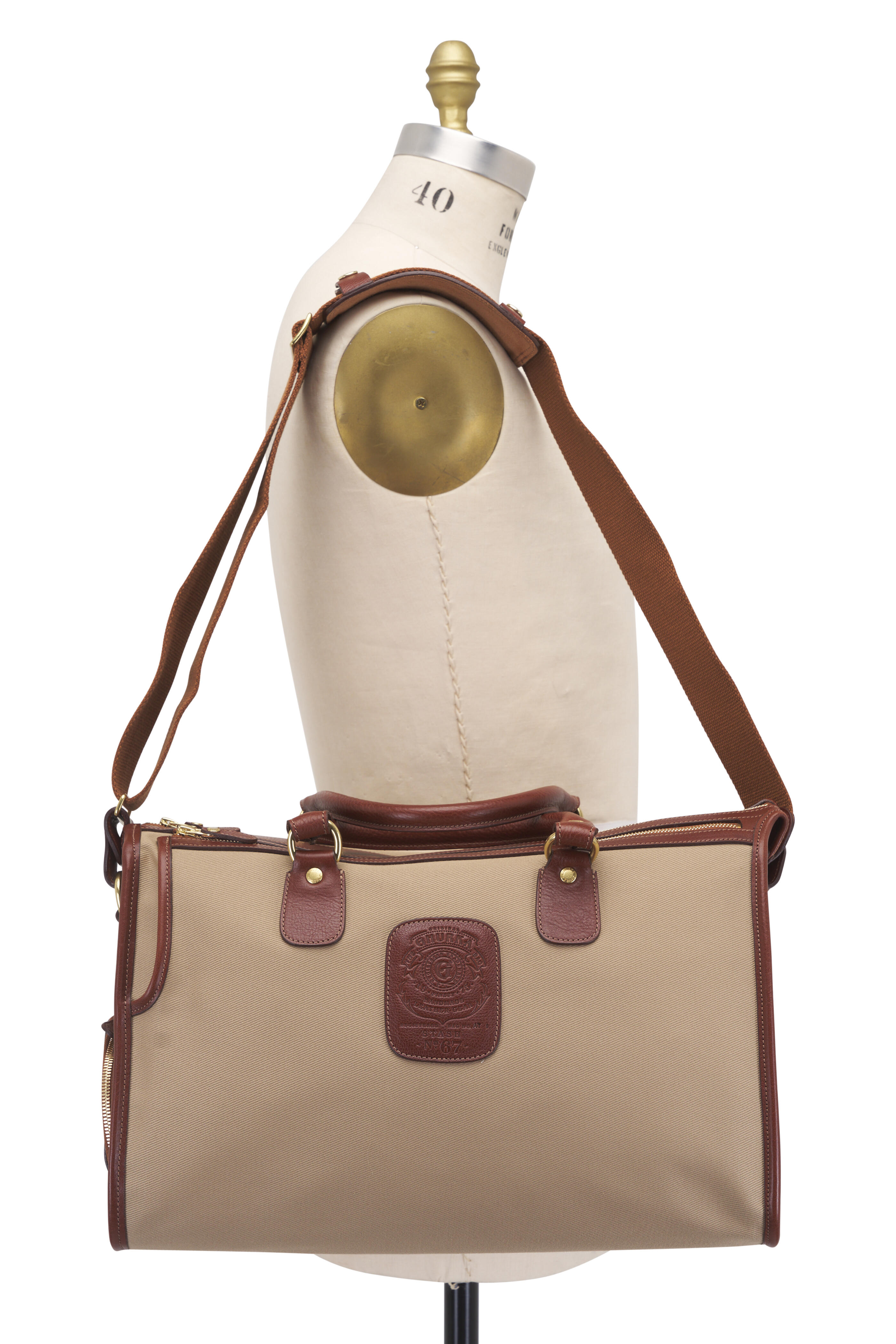 Stash No. 67 Khaki Twill & Chestnut Leather Tote