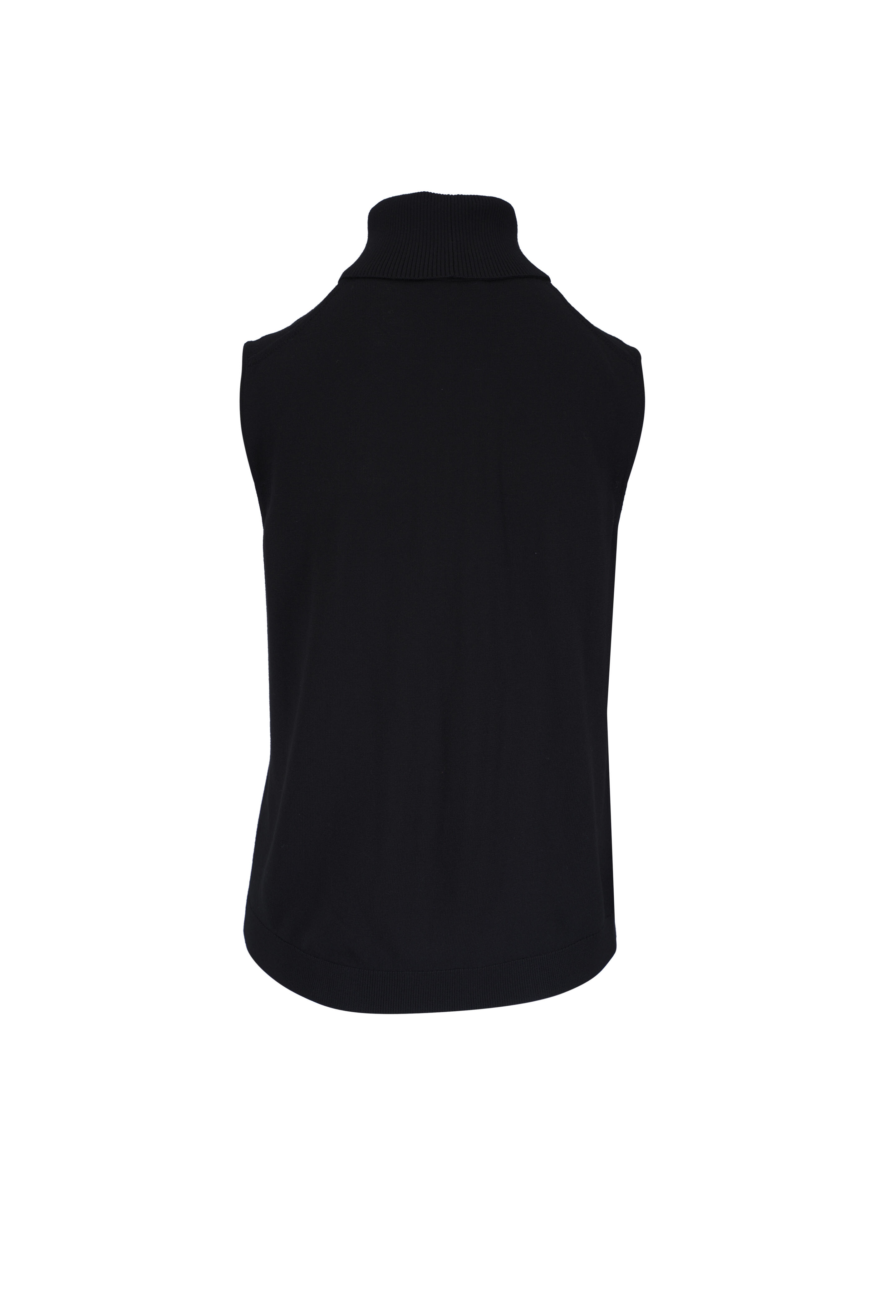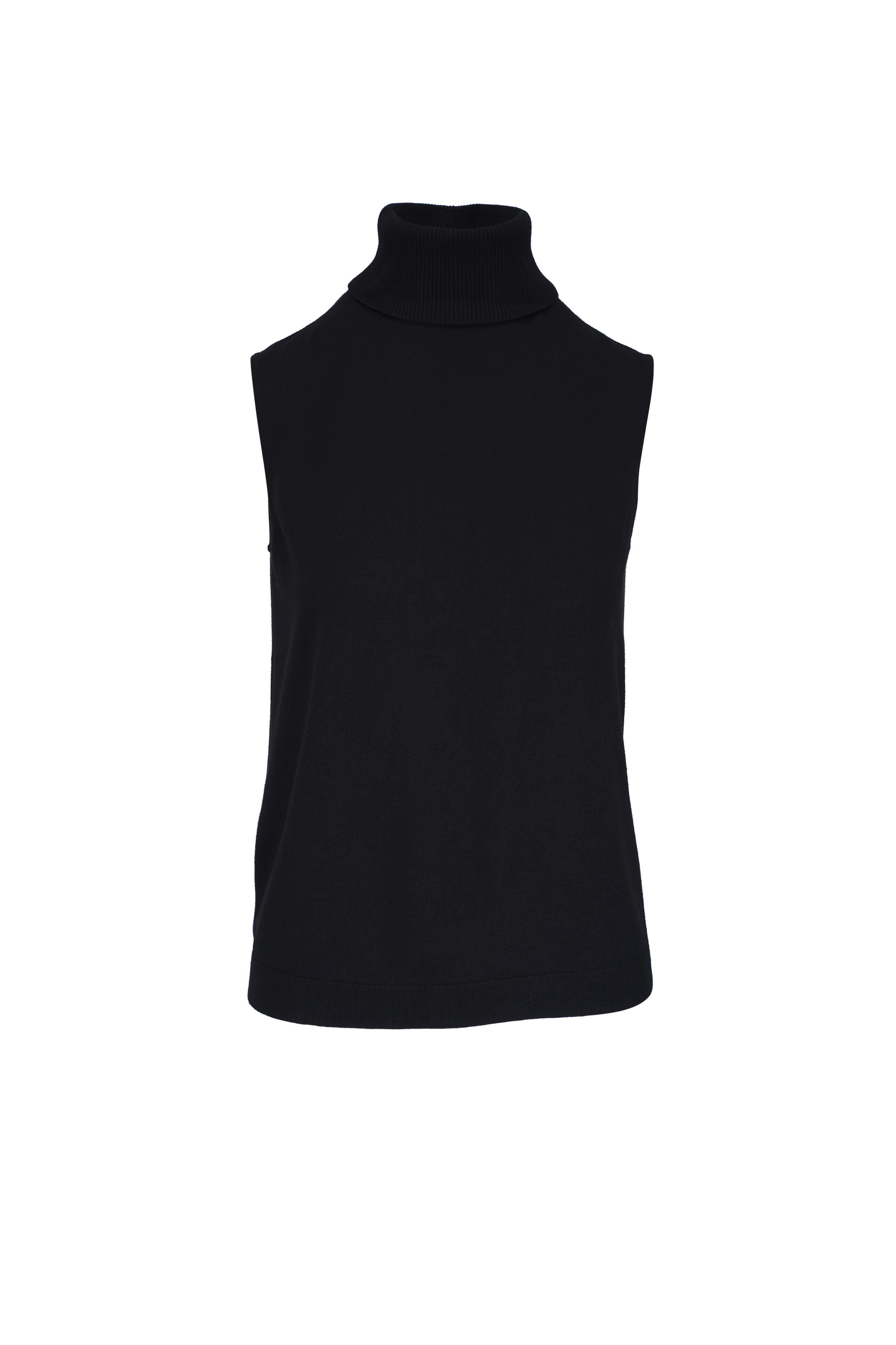 Turtleneck. Slip-on style. Ribbed rims. Sleeveless. Straight hem. Imported. Shoulder to hem 23" (size s). 90% Viscose, 10% polyester. Hand wash.