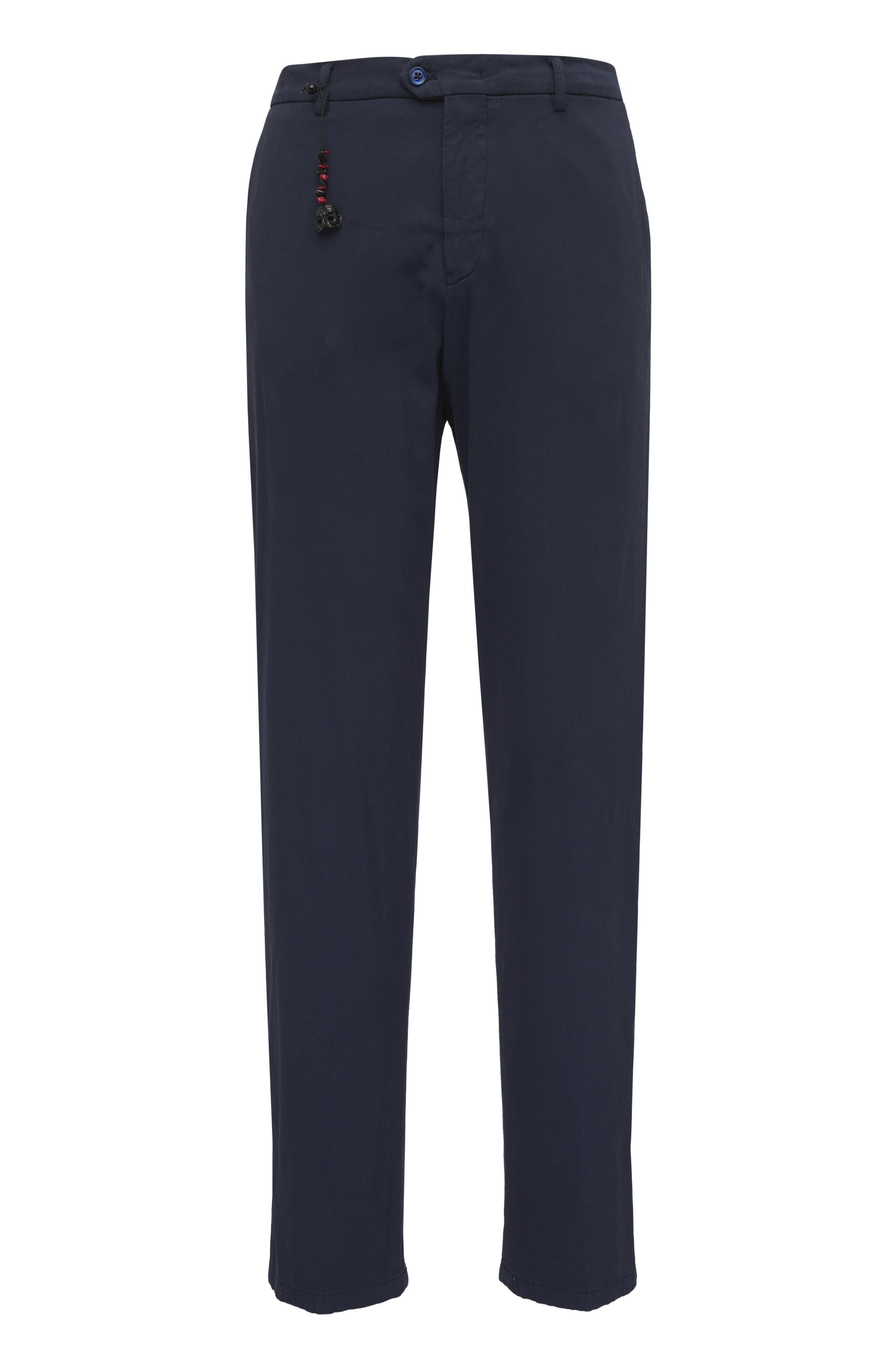 Zip fly; two button closure. Banded waist; belt loops. Side slash pockets; back welt pockets. Made in Italy. 73% Cotton, 18% silk, 6% cashmere, 3% elastane. Dry clean.