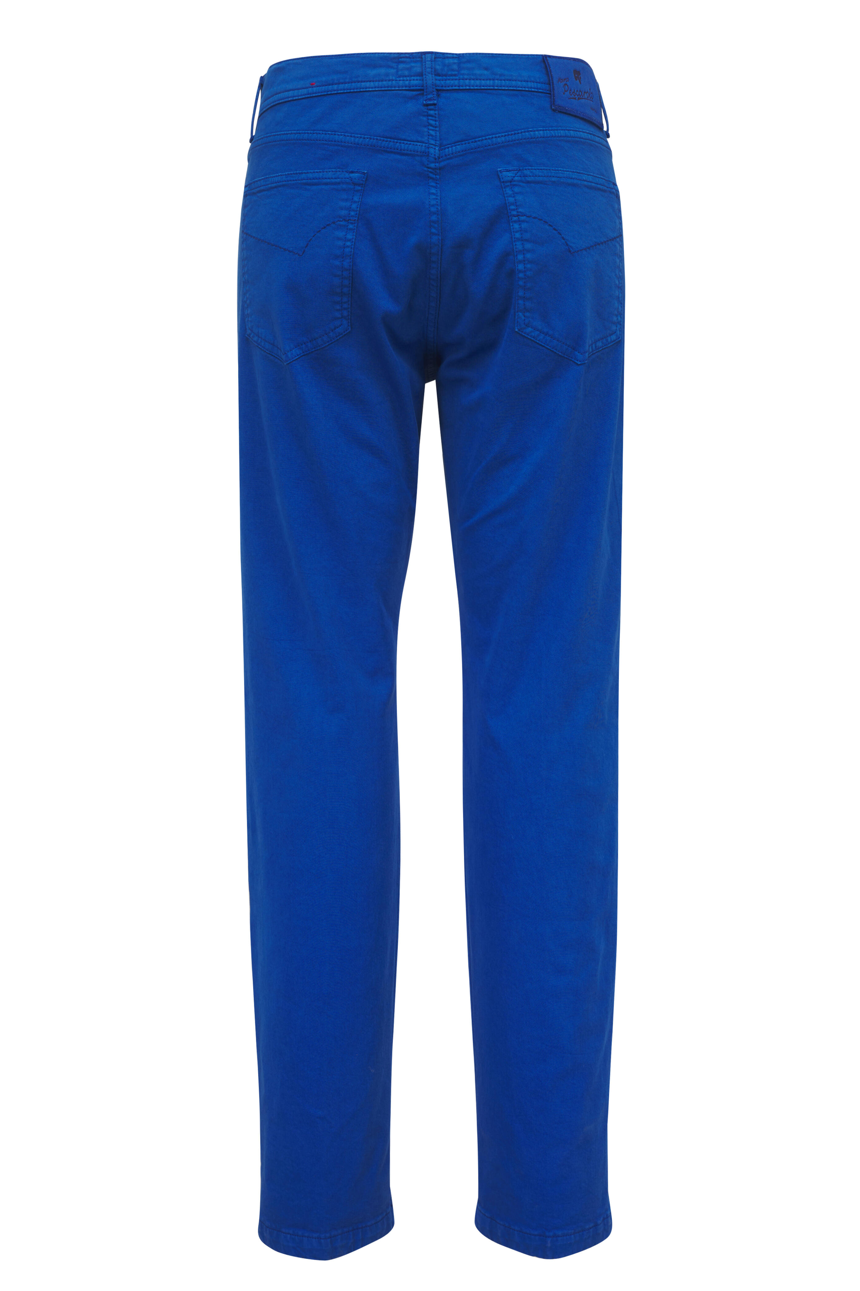 Zip fly with button closure. Banded waistband; belt loops. Five-pocket styling. Straight hem. Made in Italy. 98% cotton, 2% elastane. Dry clean.