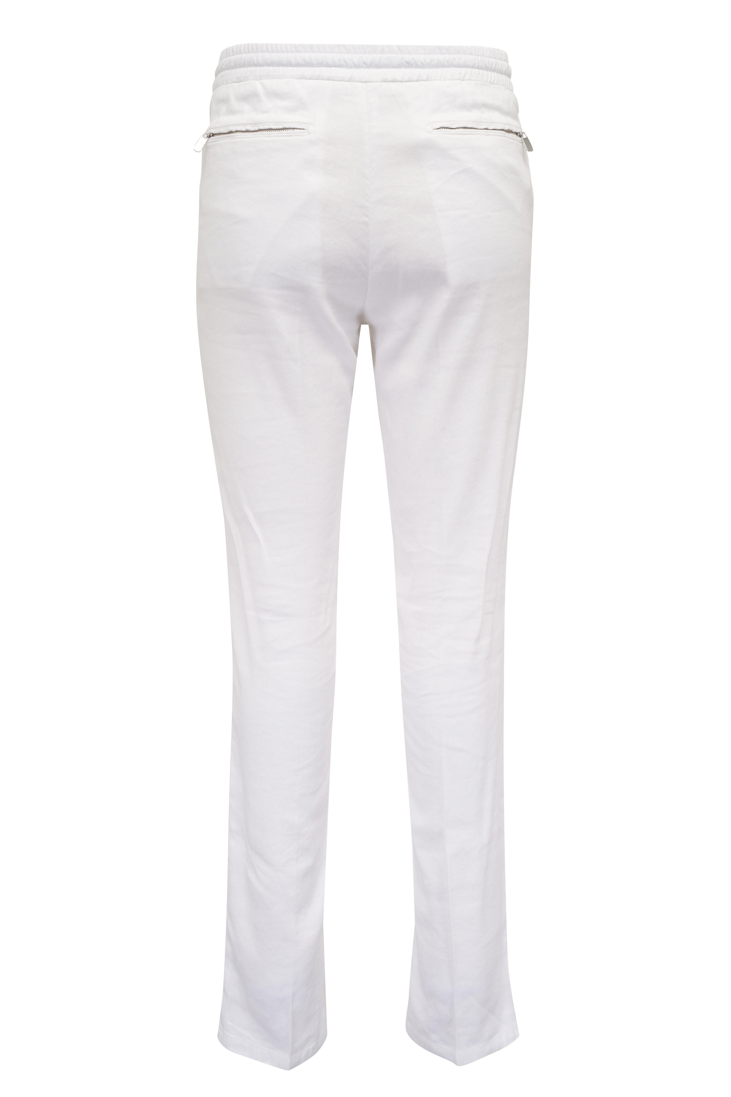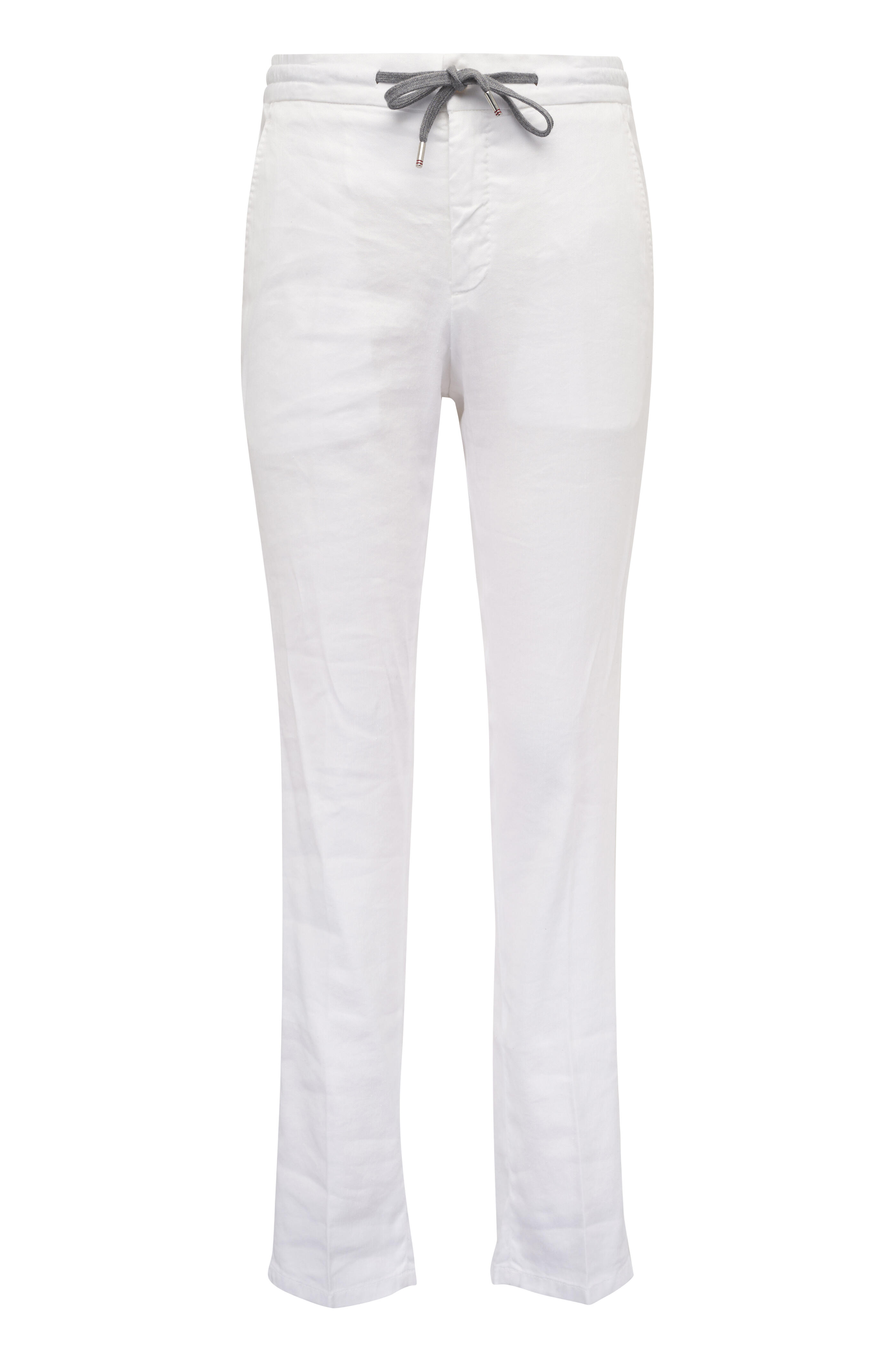 White Stretch Linen Drawstring Pant
