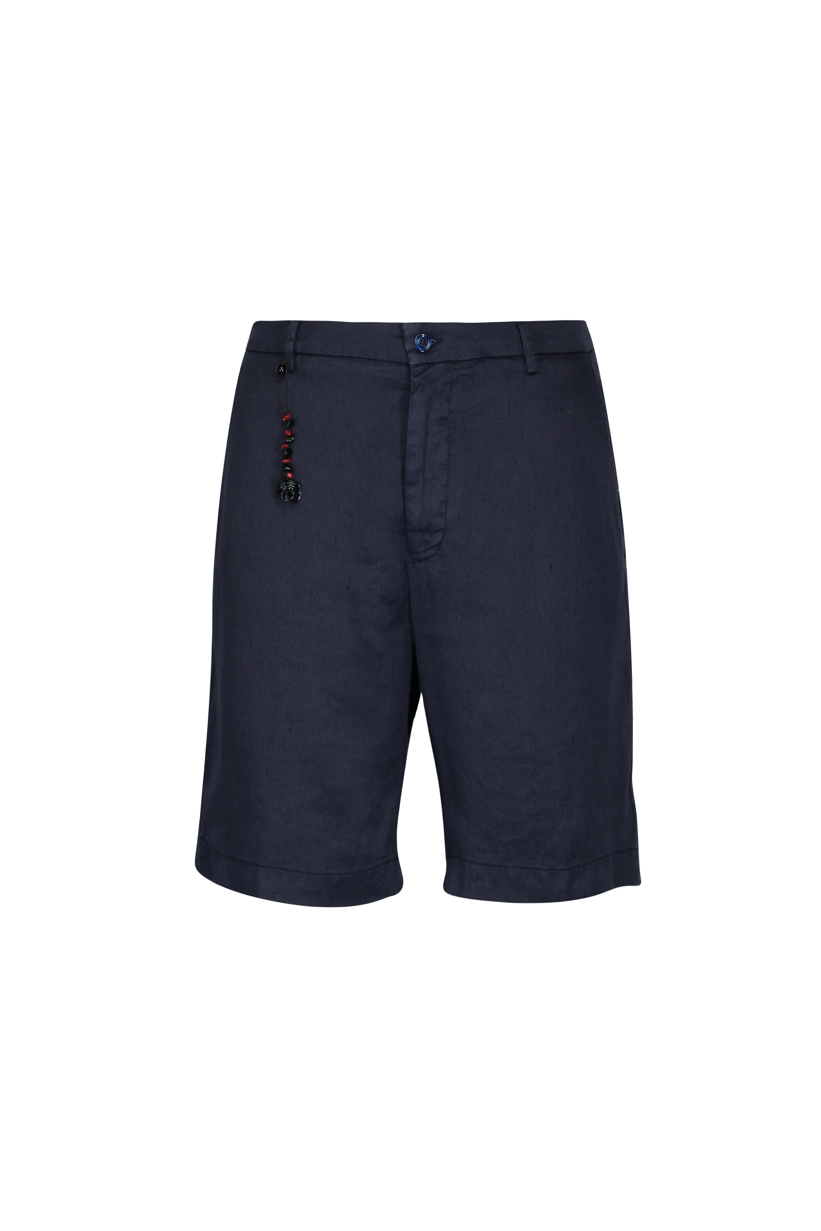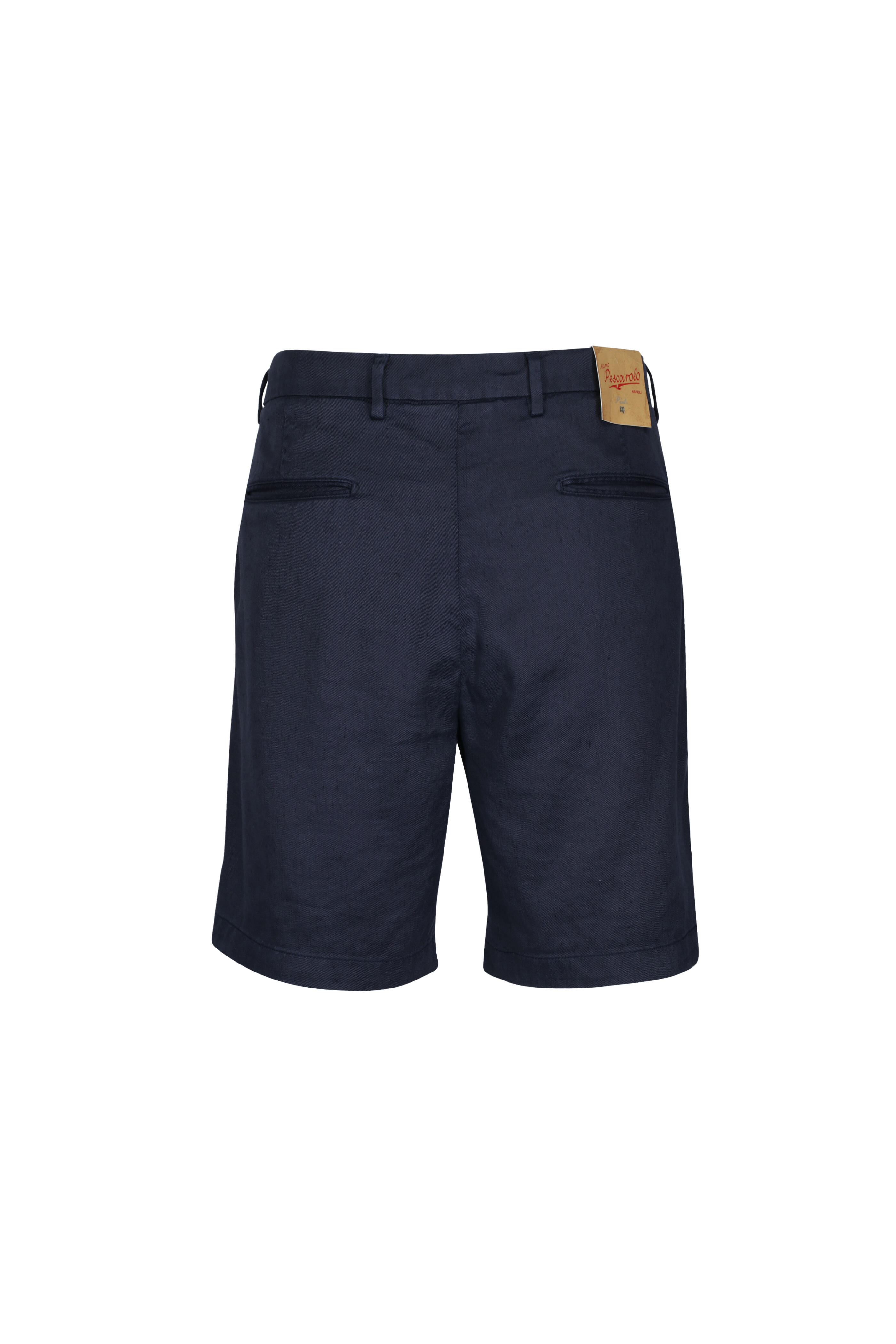 Banded waist; belt loops. Zip fly; two button closure. Side slip pockets. Back welt pockets. Imported. 57% linen, 41% lyocell, 2% elastane. Dry clean.