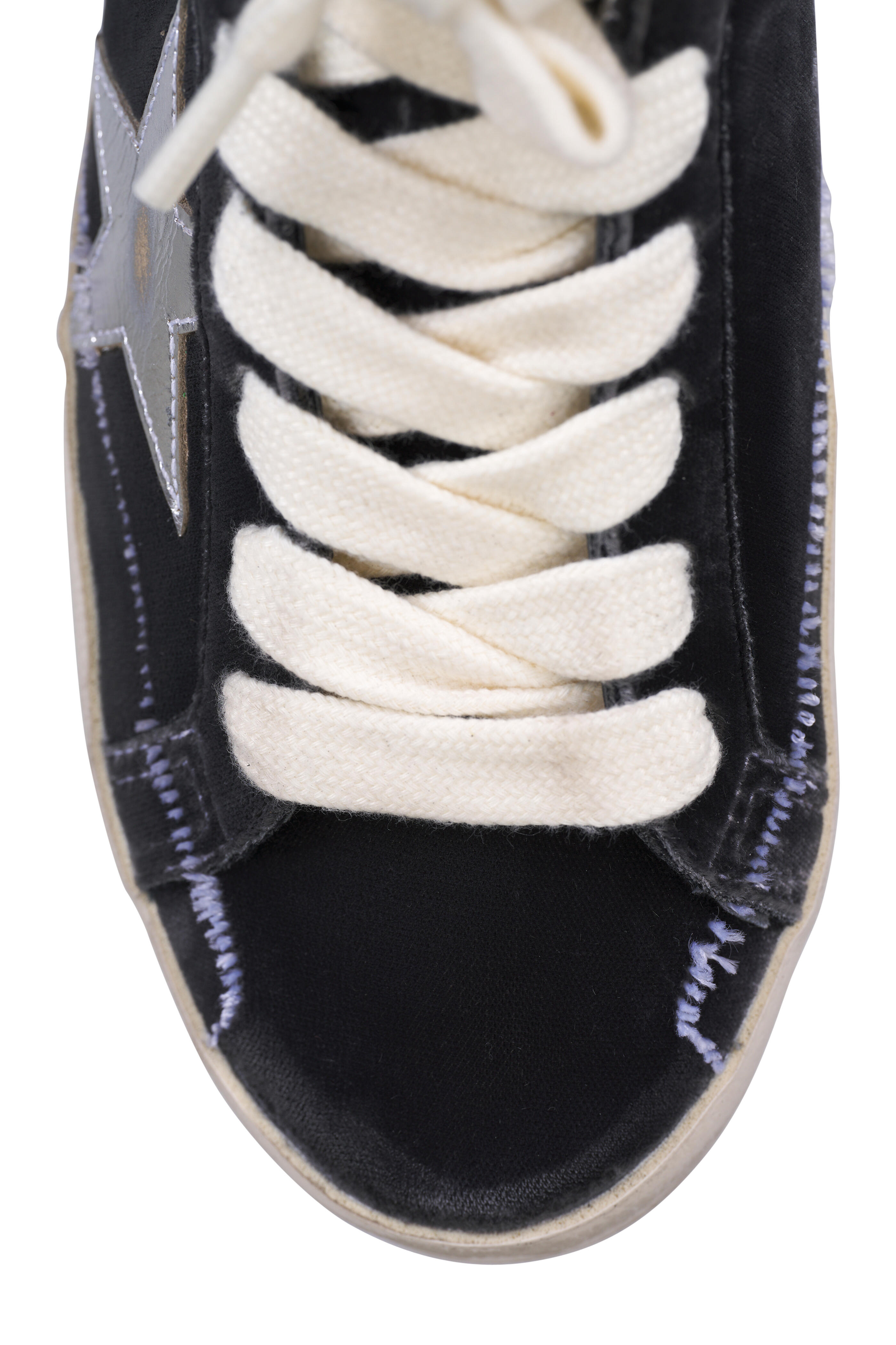 Leather & velvet upper. Round toe. Lace-up closure. Silver leather star. Fabric lining, leather insole. Rubber sole. Made in Italy.
