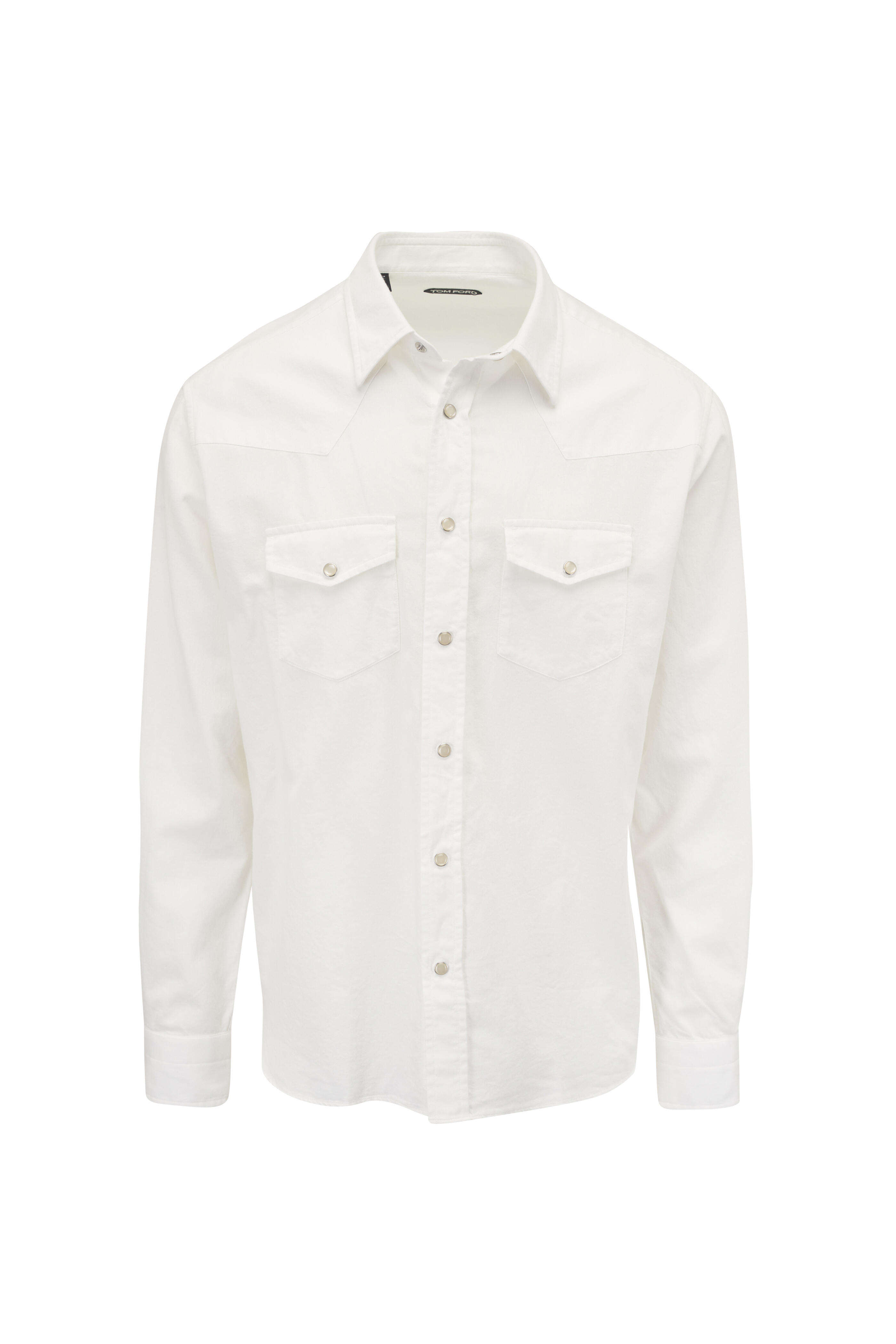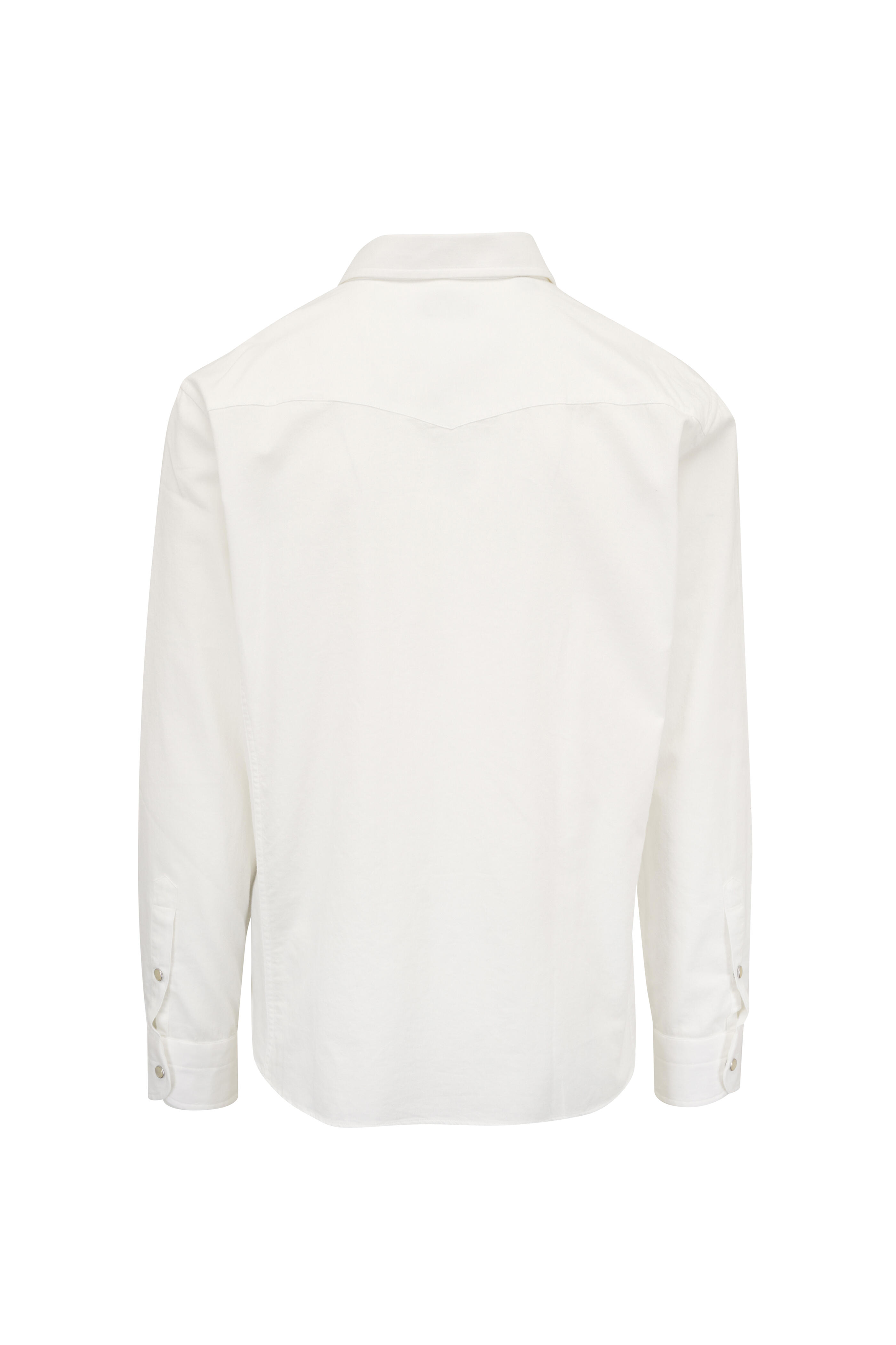 Spread collar. Three-button placket. Ribbed trims. Made in Italy. 67% lyocell, 33% cotton. Dry clean.