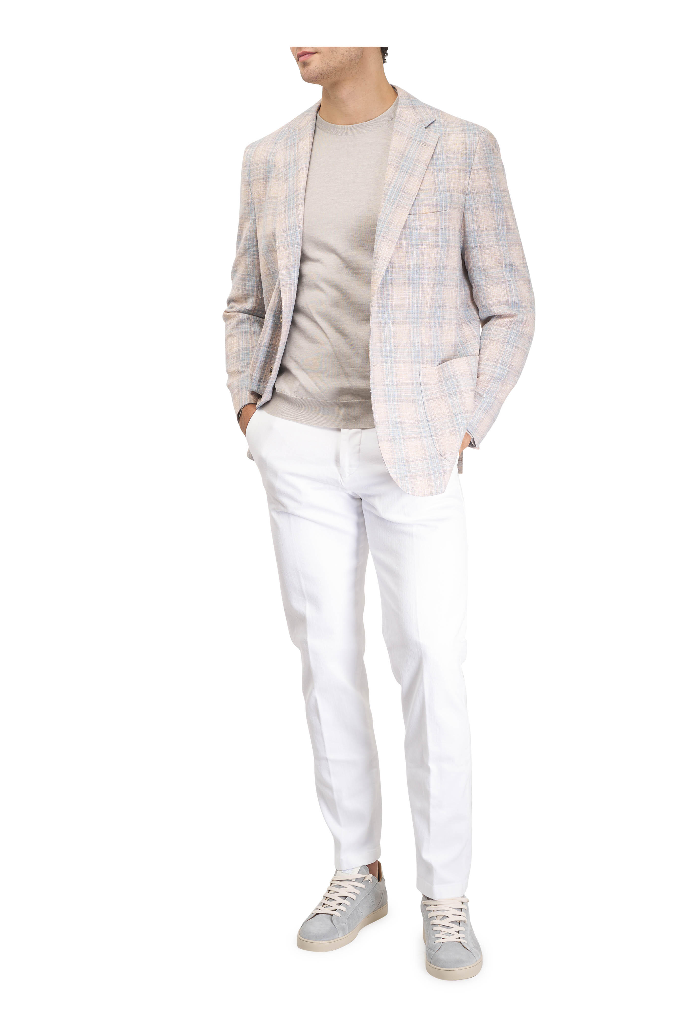 Crew neckline. Ribbed trims. Made in Italy. 100% cotton. Dry clean.