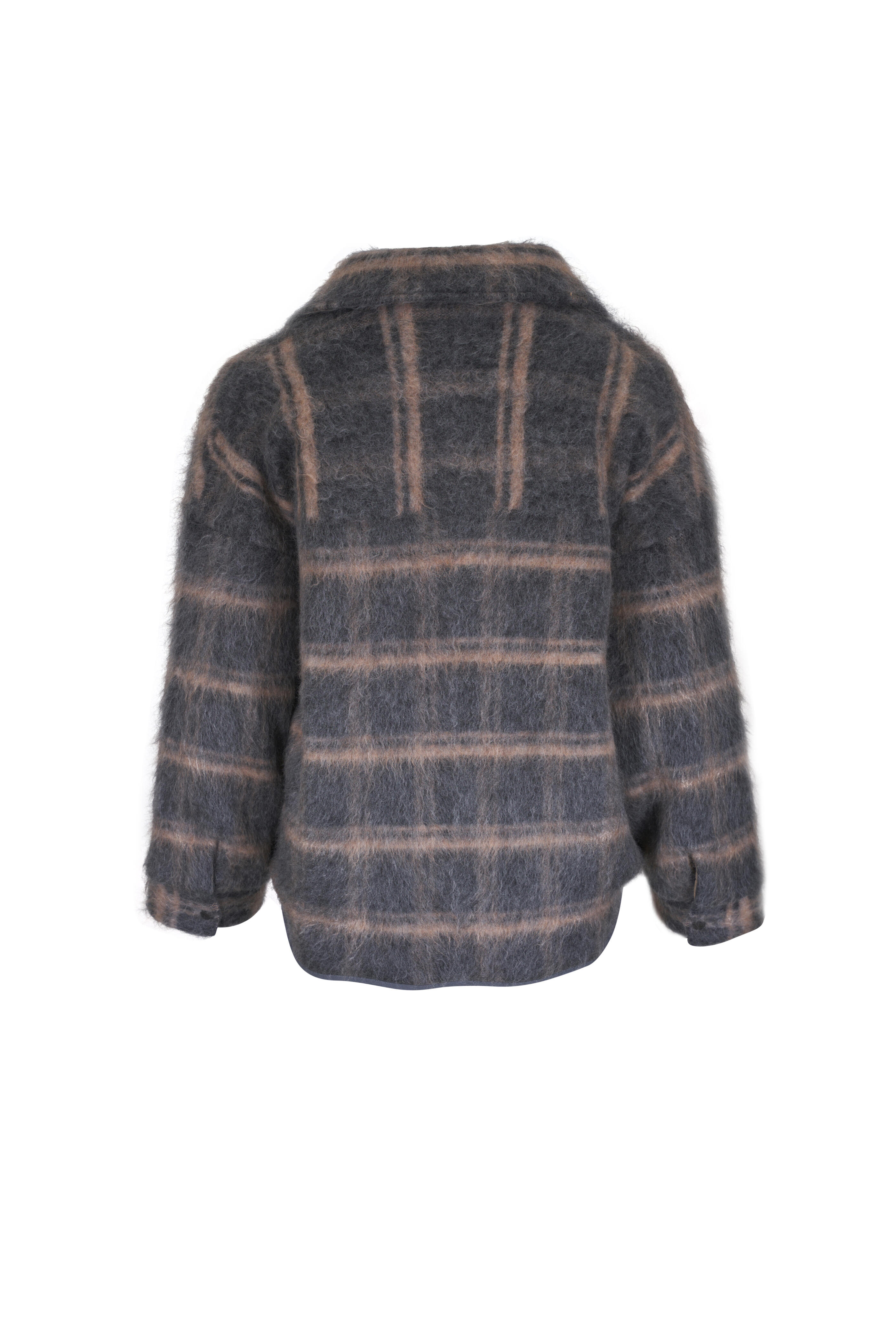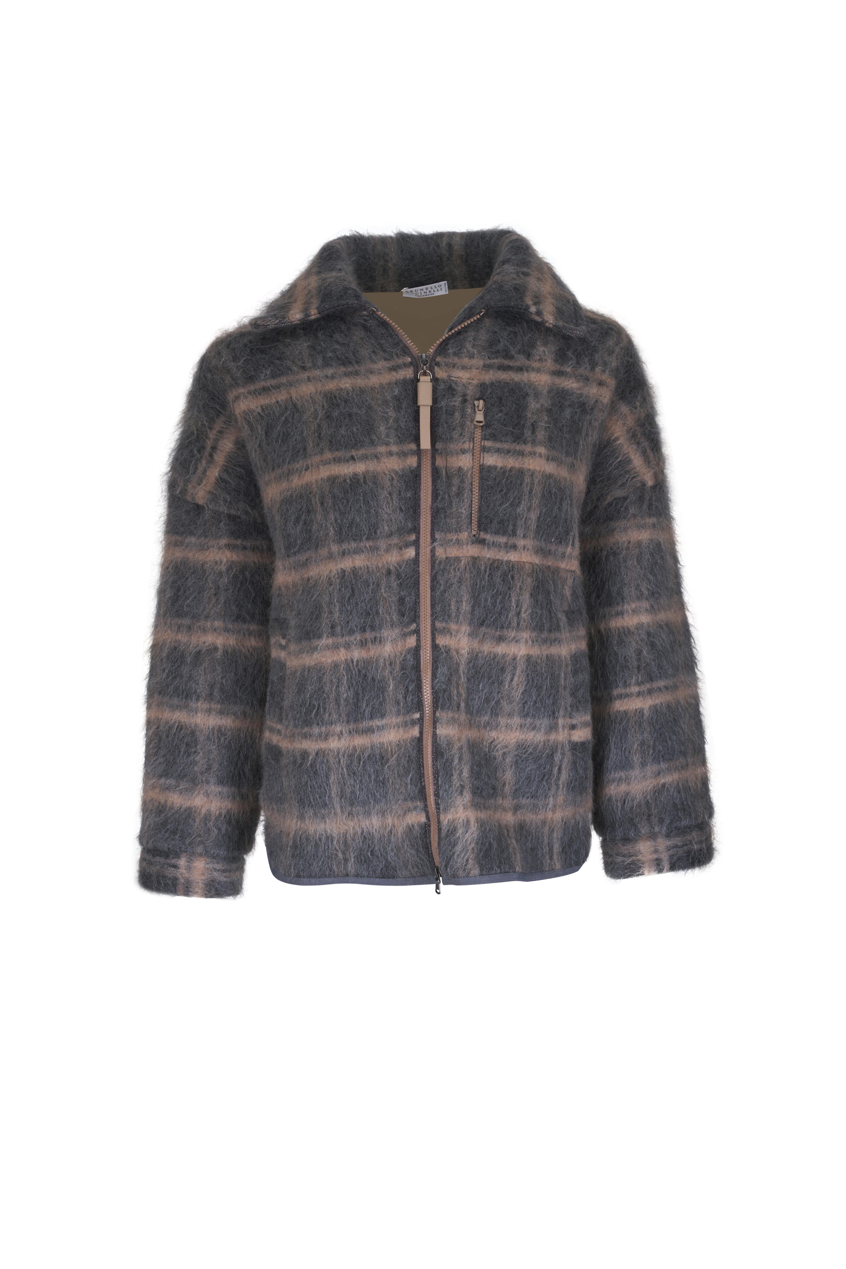 Spread collar. Front two-way zip placket. Side slip pockets; check pocket with zipper. Shirt-style cuffs. Monili detailing. Made in Italy. 34% virgin wool, 19% mohair, 17% nylon, 17% cashmere, 6% silk, 6% wool, 1% elastane; Thermore® padding. Dry clean.
