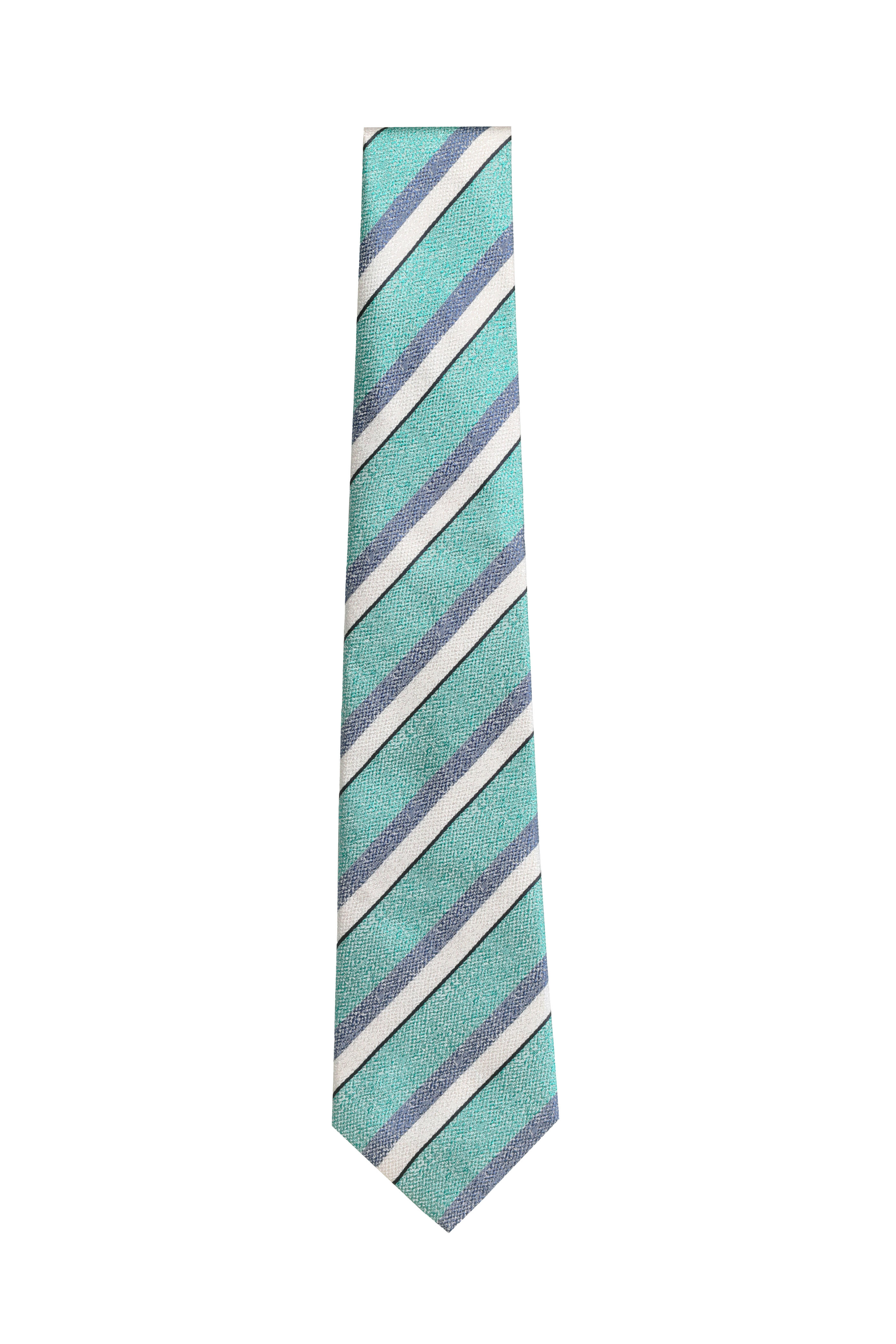 Aqua Blue Stripe Silk Necktie