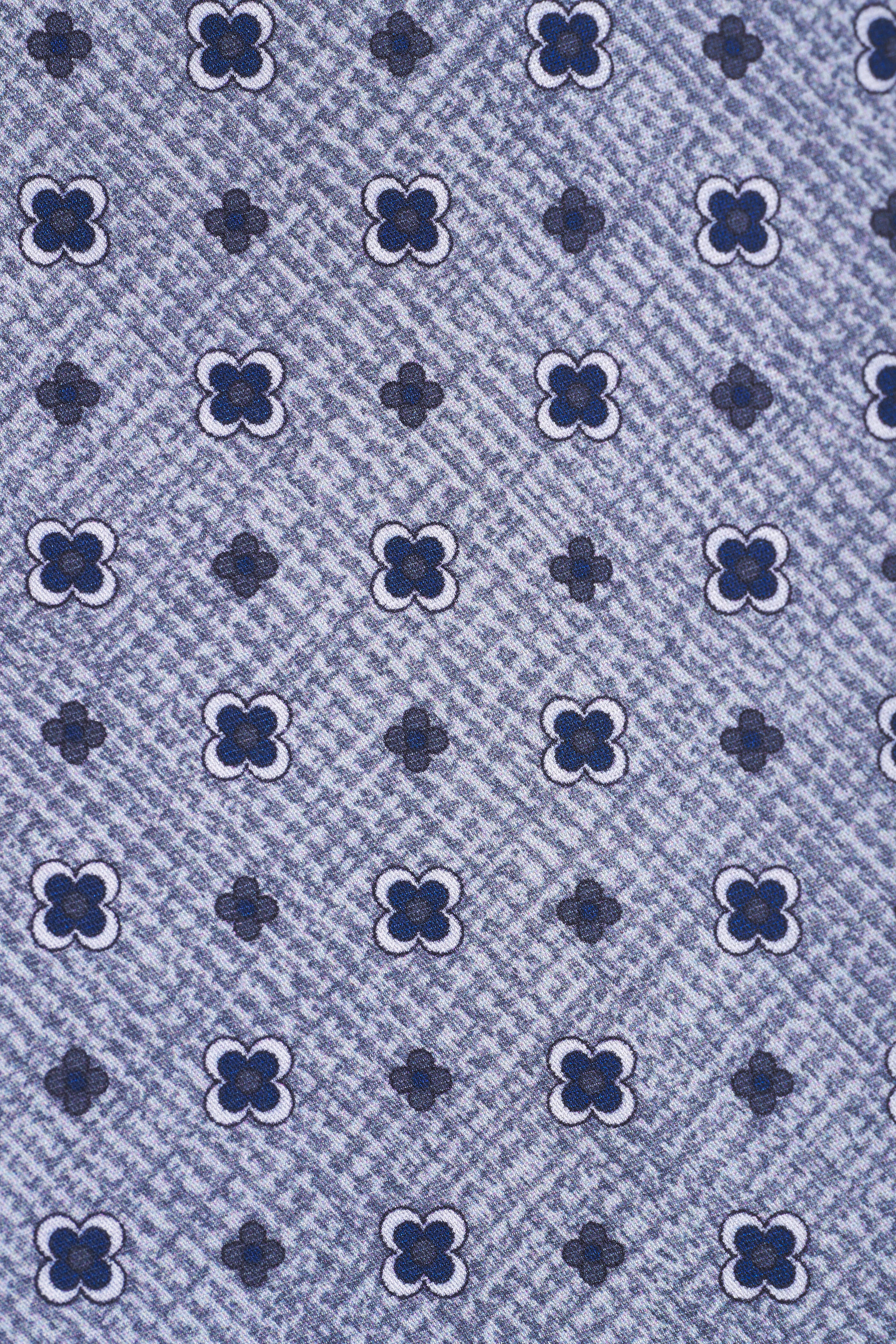 Navy Blue & Grey Medallion Print Silk Necktie