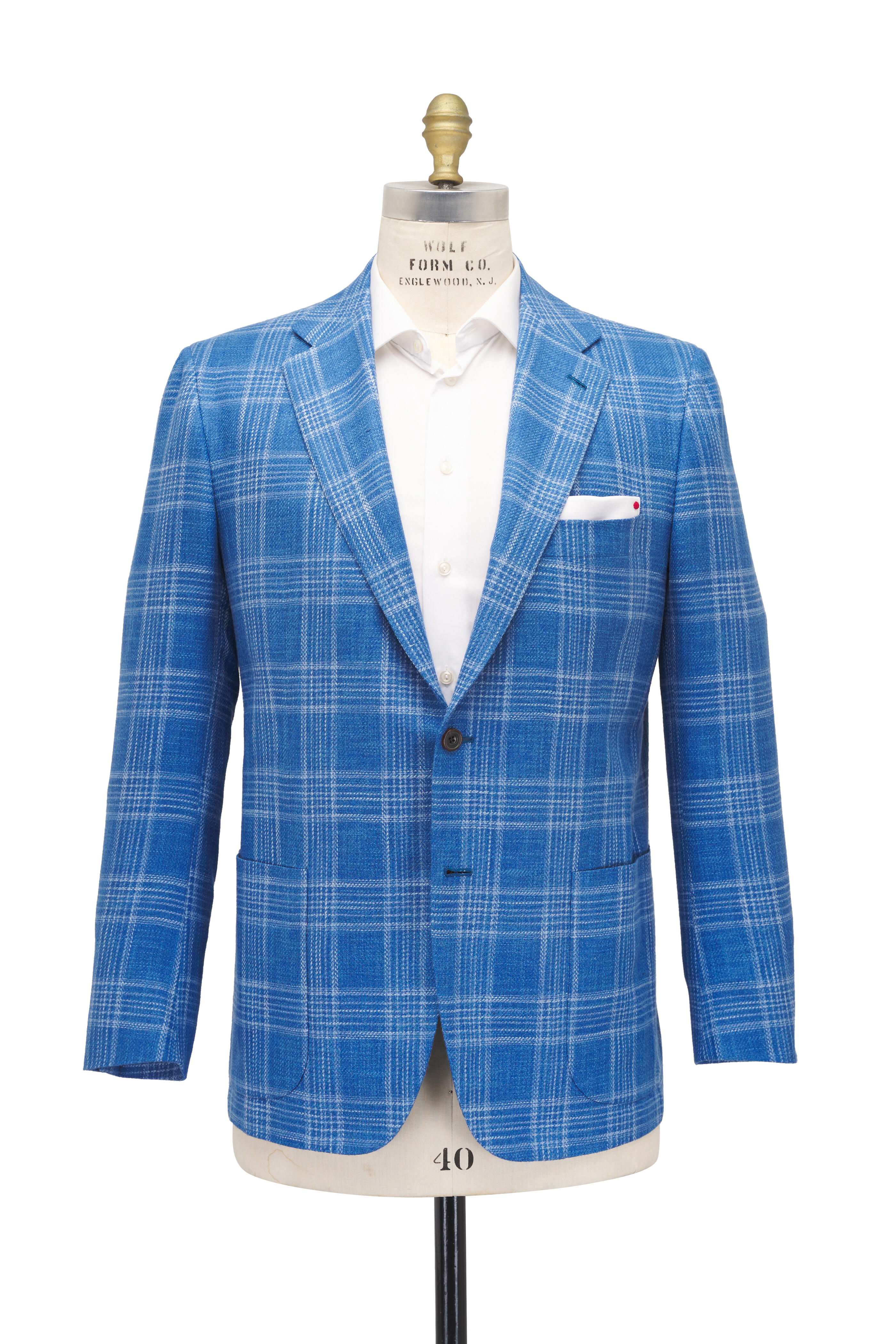 Ocean Blue Silk, Cotton & Cashmere Plaid Sportcoat