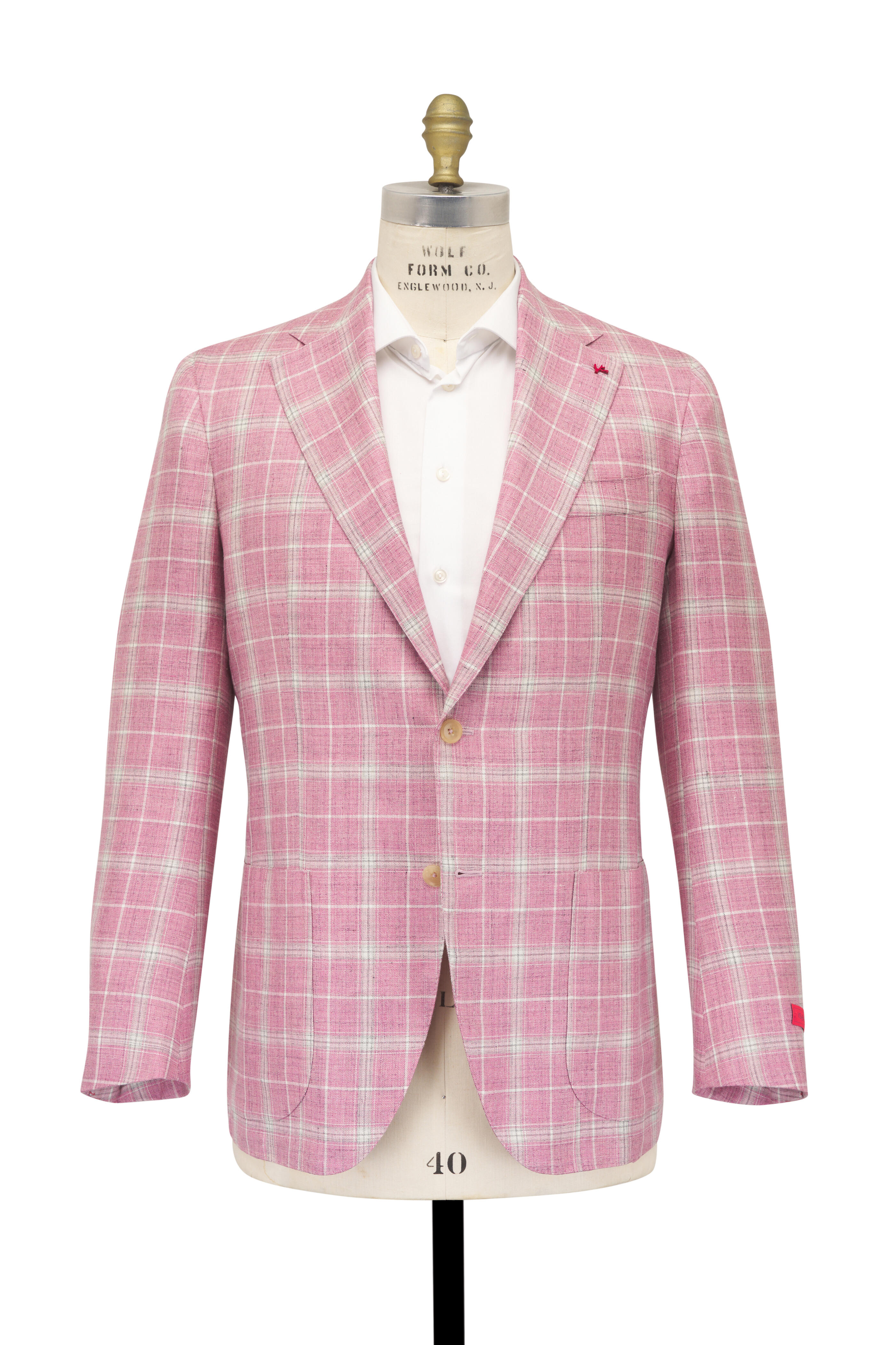 Pink Plaid Wool, Silk & Linen Sport Coat