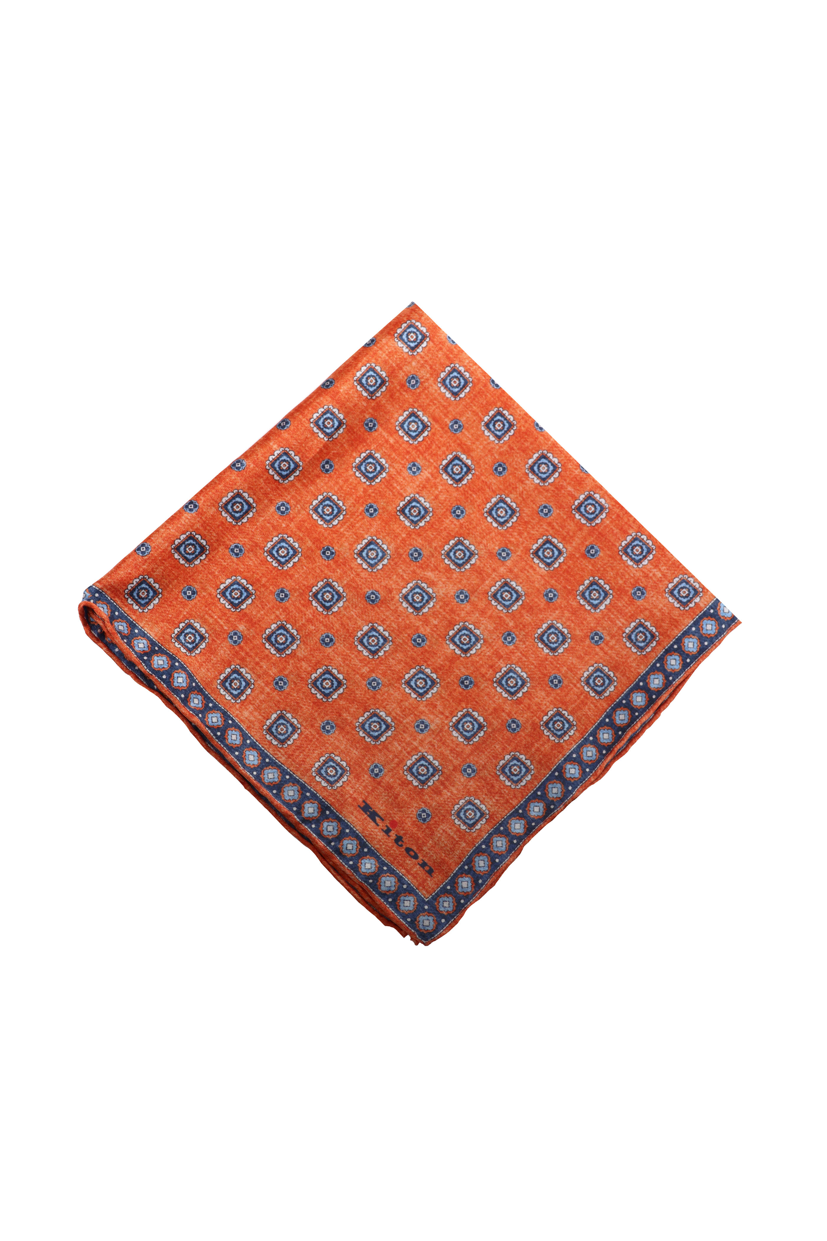 Orange Geometric Print Silk Pocket Square