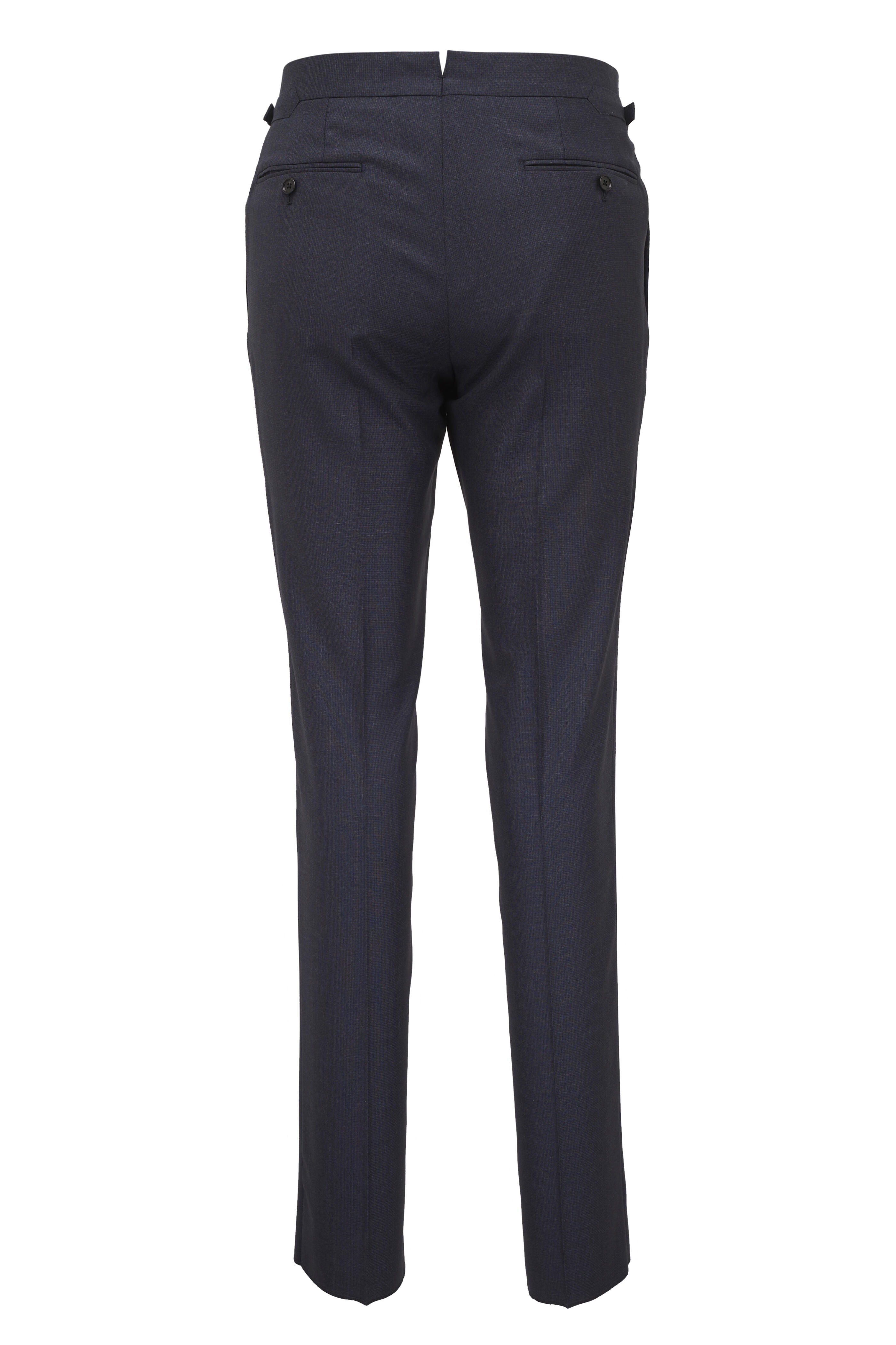 Made in Italy. Jacket: Fully lined. Notched lapels. Front two button closure. Lower flap pockets, chest welt pocket, interior welt pockets. Double vent. Pant: Front slip pockets; back besom pockets. Unfinished hem. 100% wool. Dry clean.