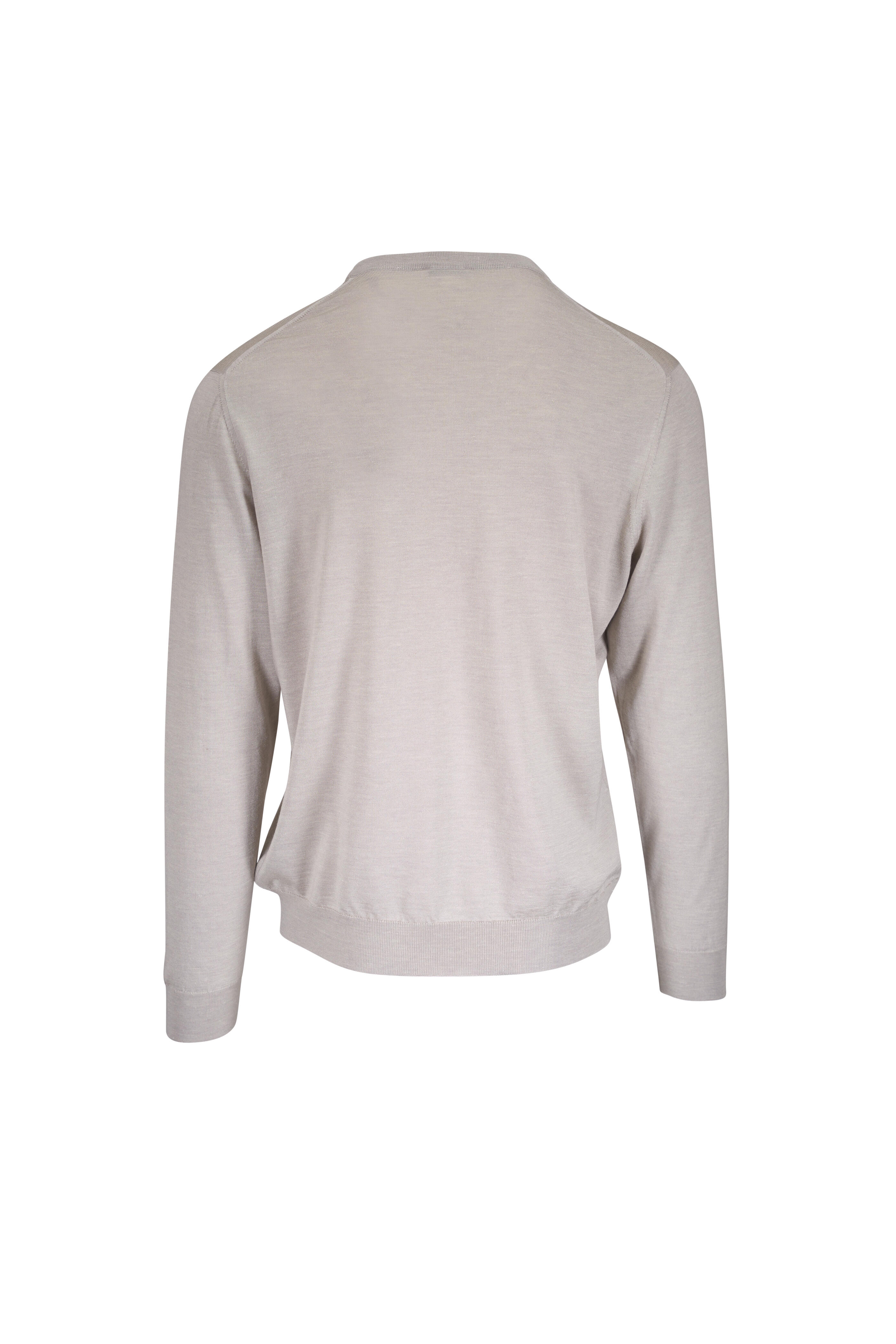 Light Gray Silk, Cashmere & Linen Crewneck Sweater