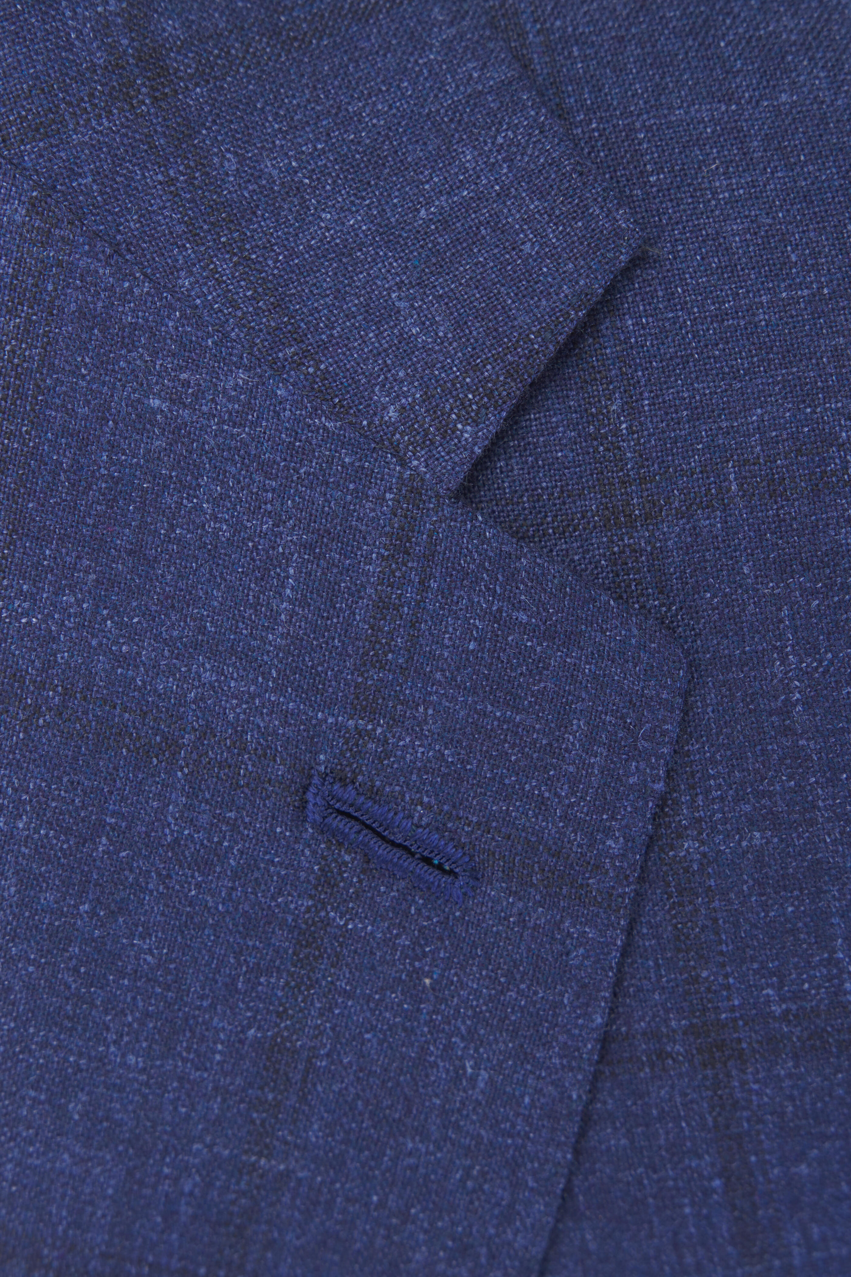 Notched lapels. Front two-button closure. Lower flap pockets; chest welt pocket; internal pockets. Double vent. Made in Italy. 75% wool, 15% silk, 10% linen. Dry clean.