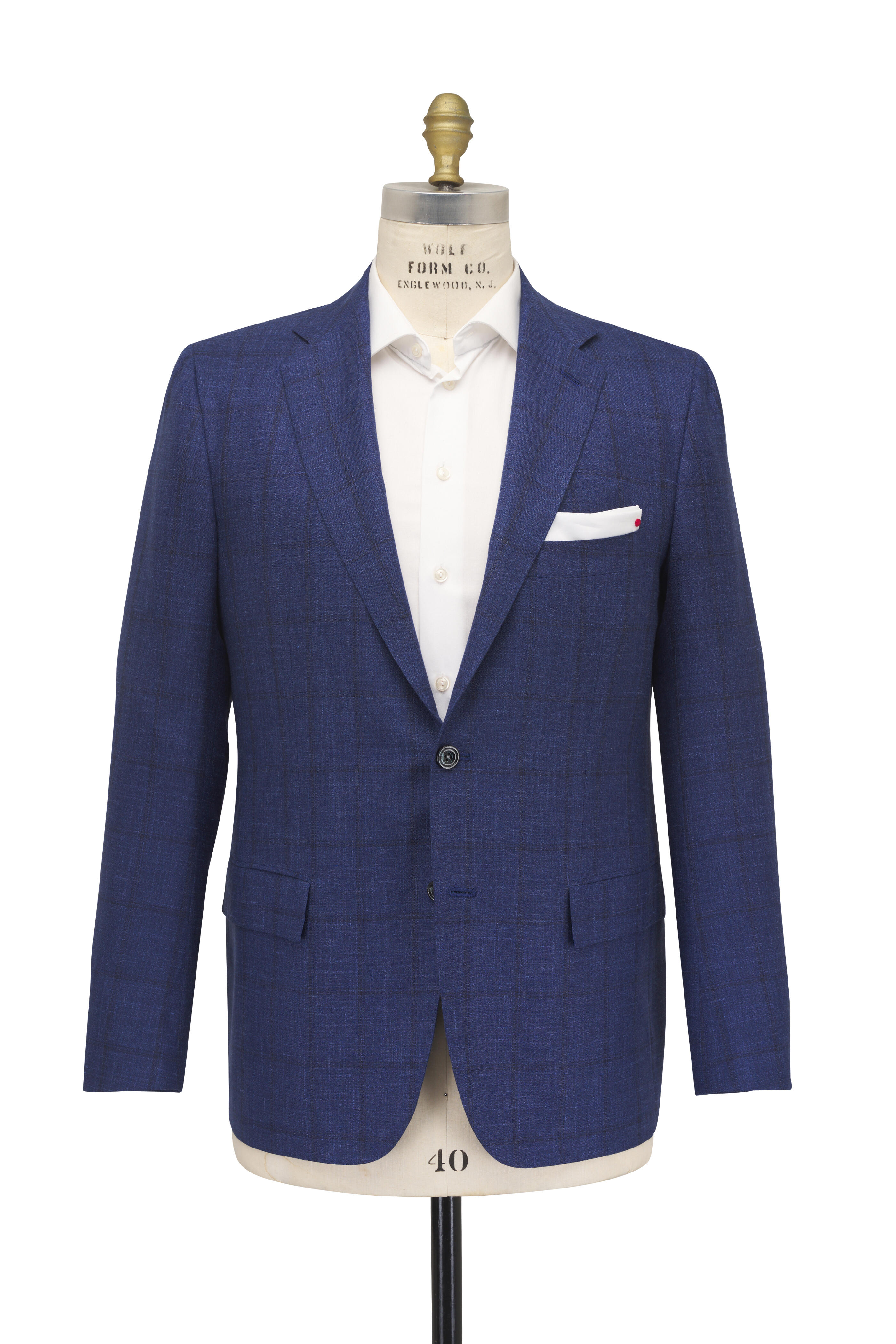 Navy Wool, Silk, & Cotton Windowpane Sportcoat