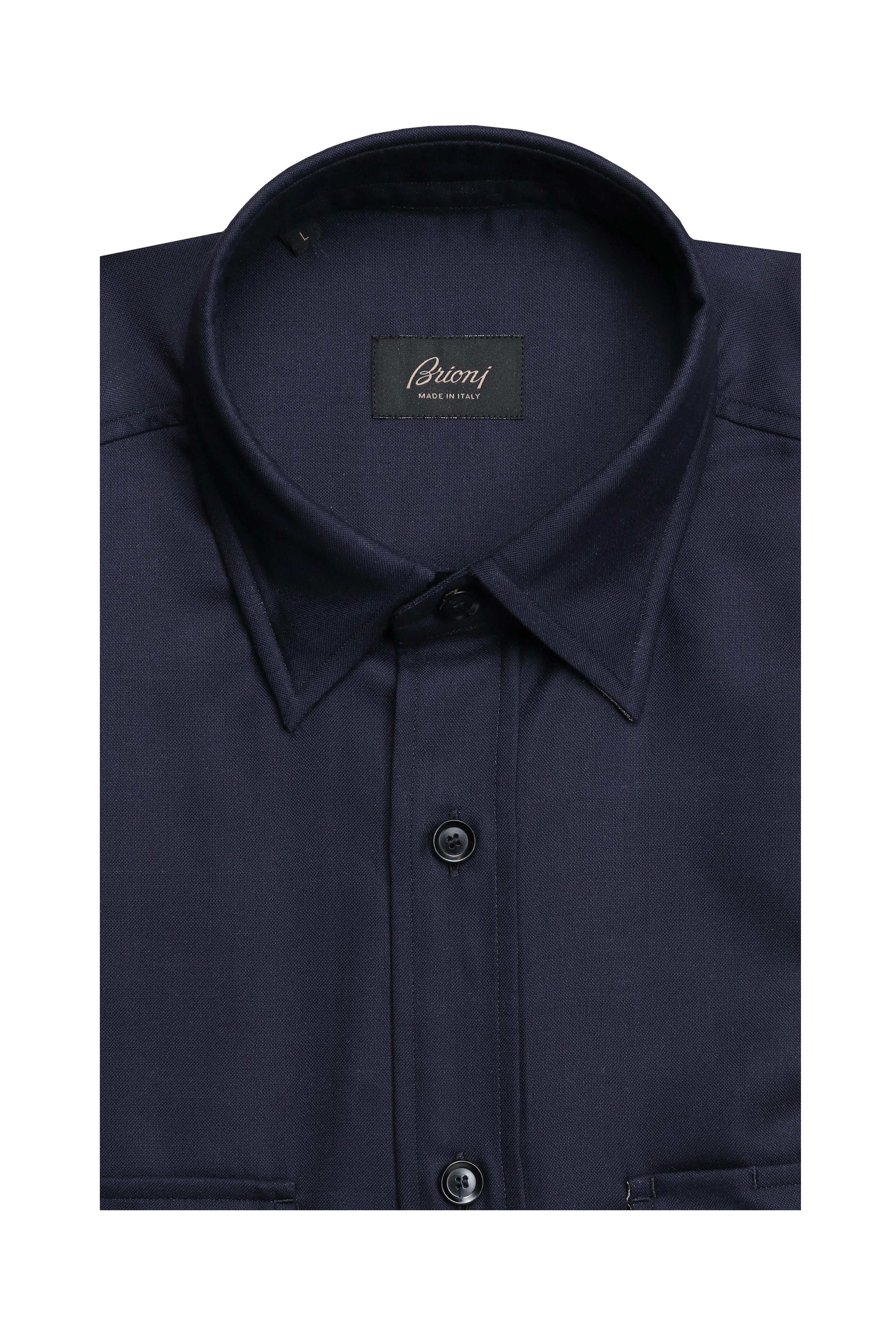 Point collar. Front button placket. Chest flap pockets. Single button cuffs. Made in Italy. 100% wool. Dry clean.