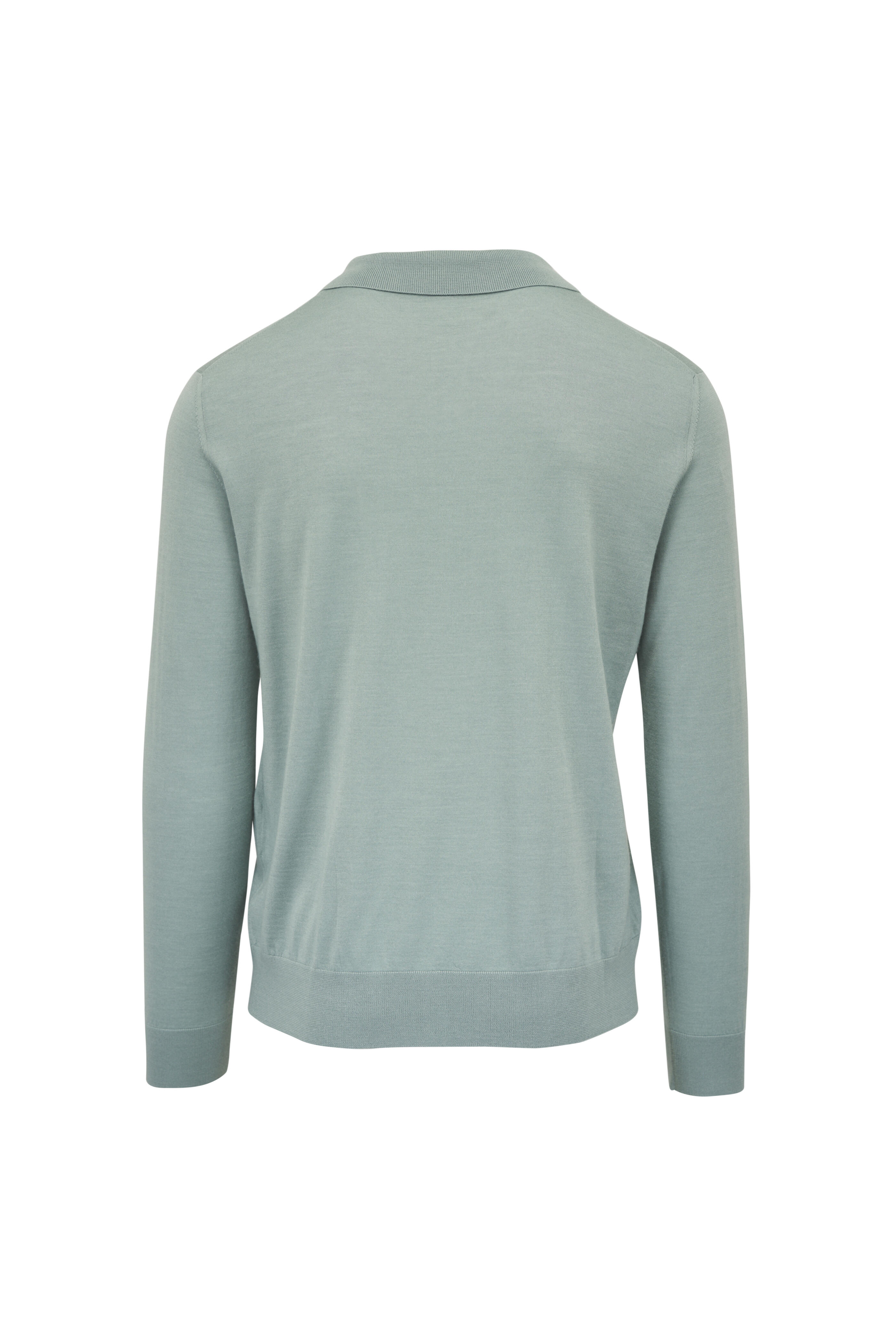 Spread collar. Three button placket. Ribbed trims. Made in Italy. 70% cashmere, 30% silk. Dry clean.