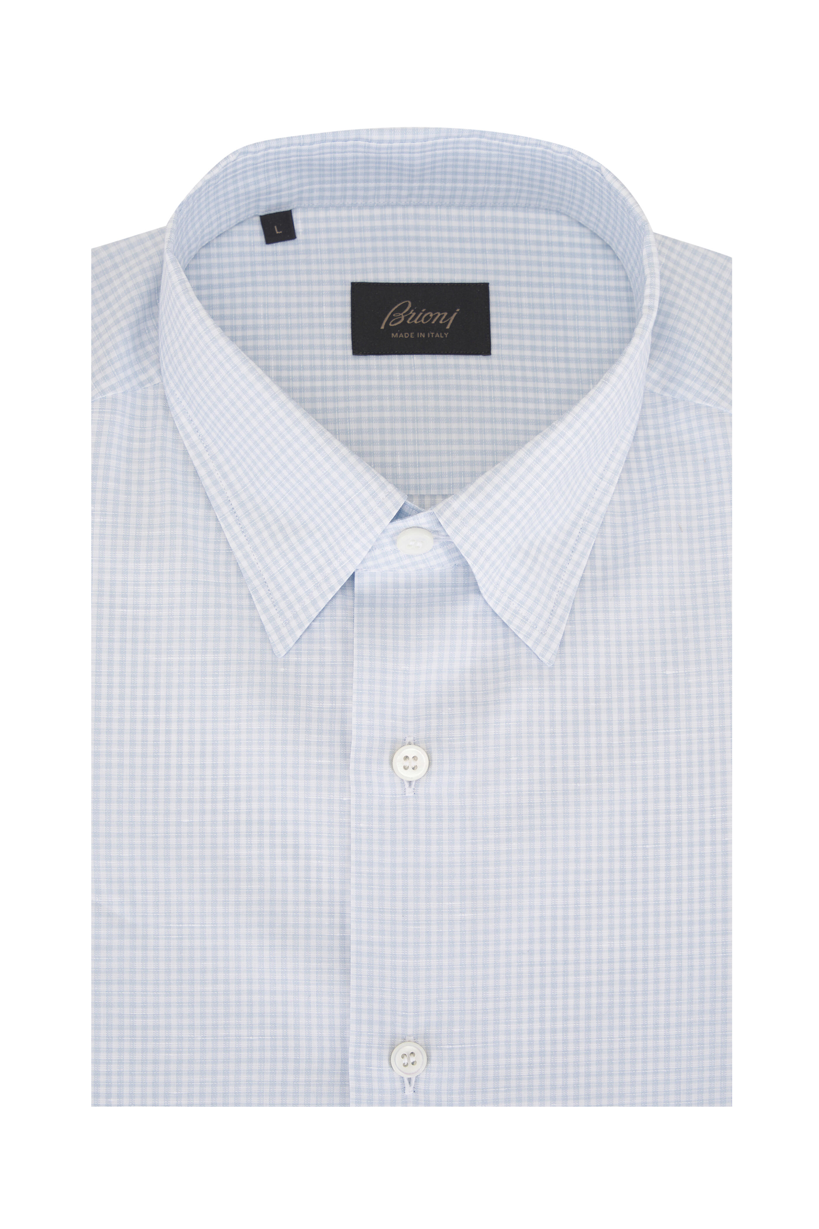 Point collar. French front button placket. Single button barrel cuffs. Made in Italy. 70% cotton, 30% linen. Machine wash.