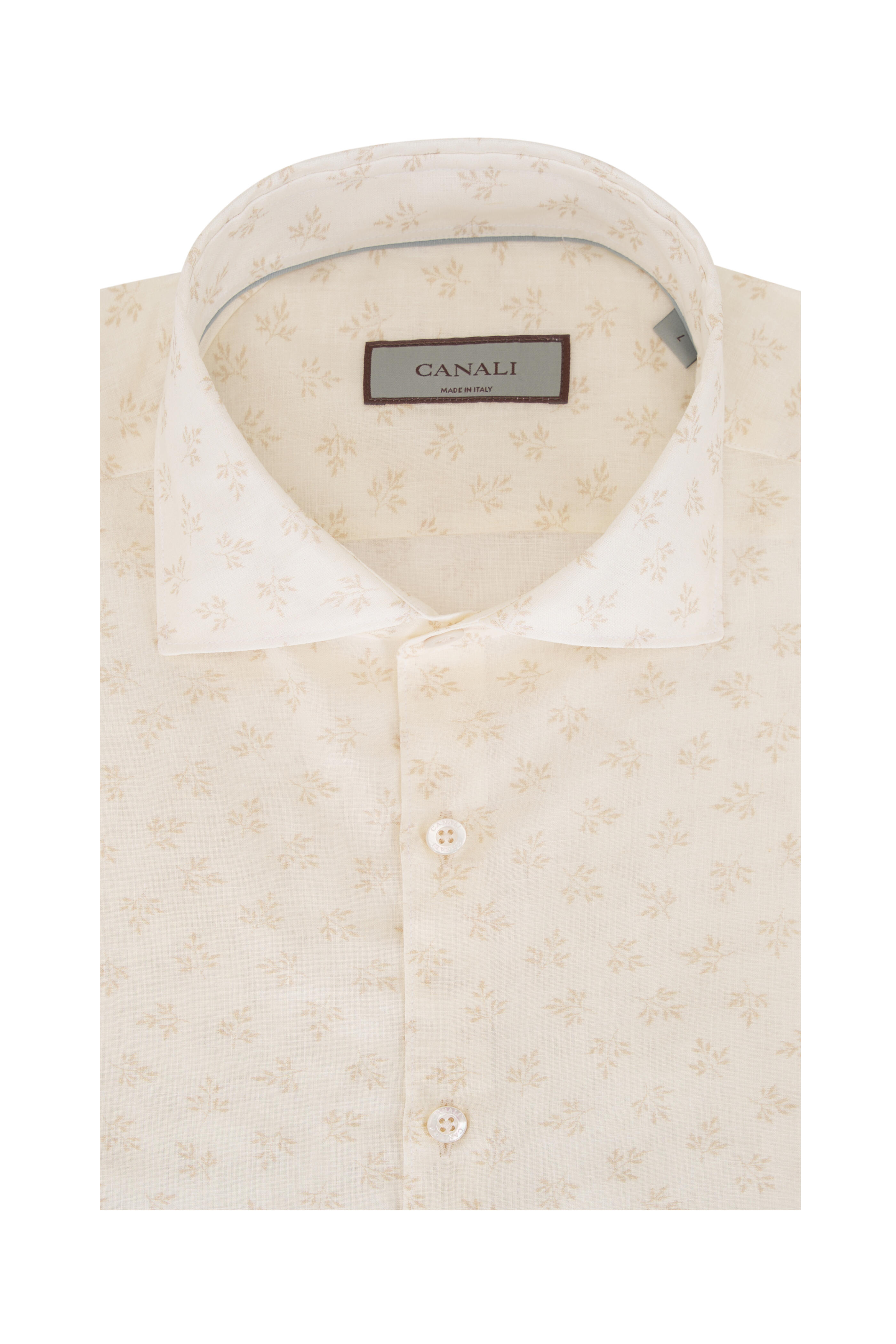 Spread collar. French placket. Single-button mitered cuffs. Made in Italy. 100% cotton. Dry clean.