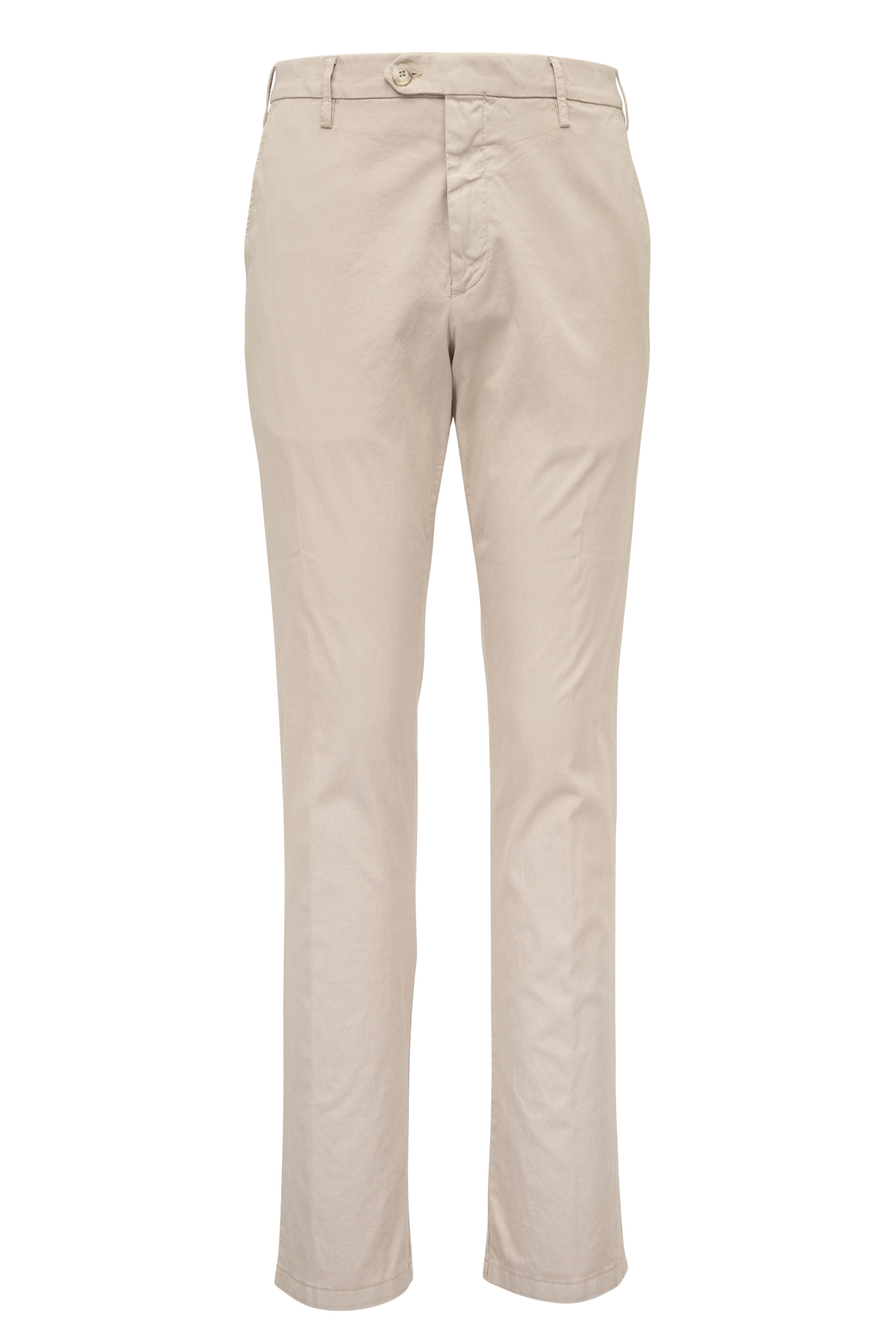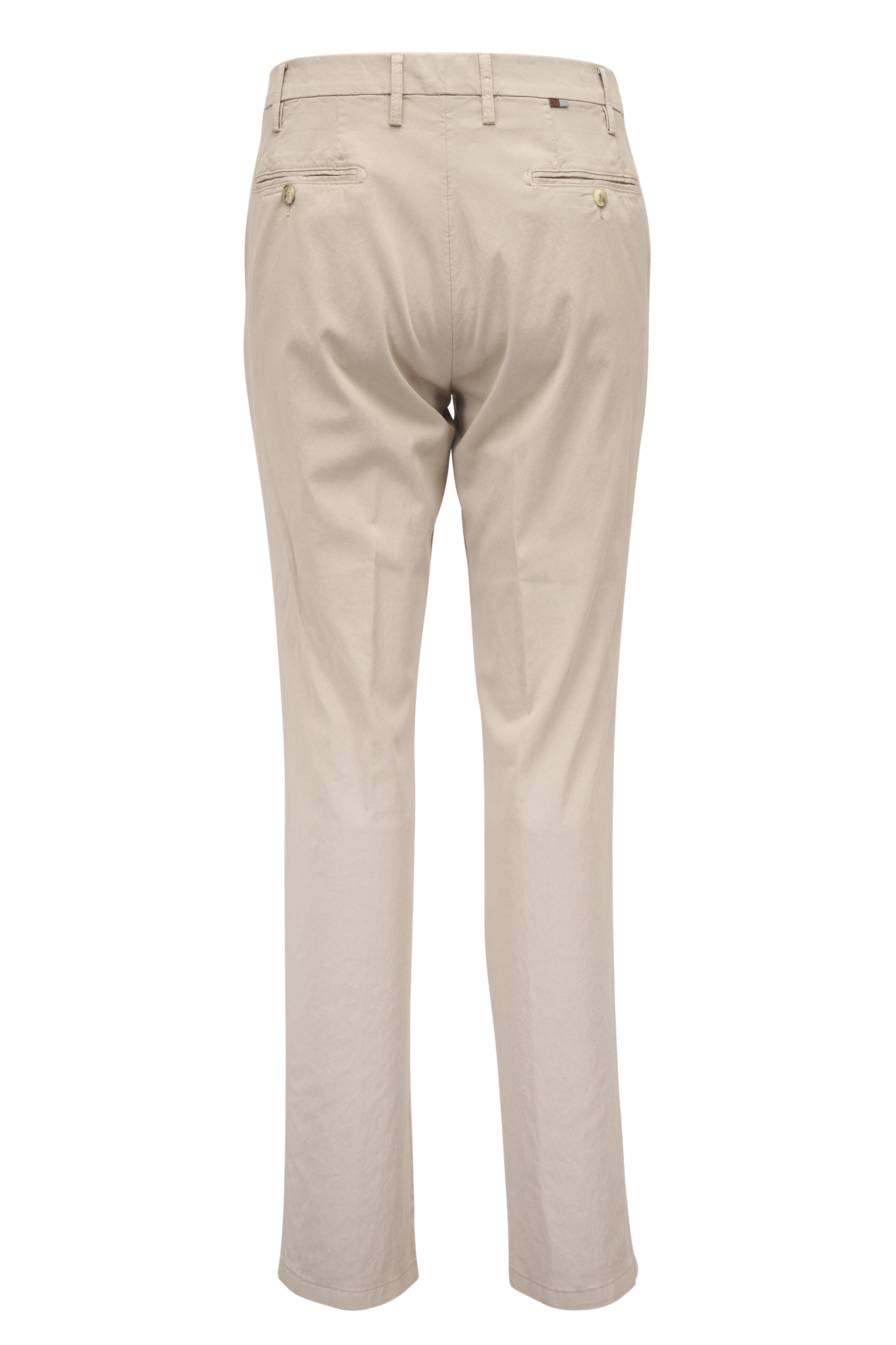 Zip fly; button tab closure. Belt loops. Front slip pockets; back besom pockets. Made in Italy. 62% cotton, 35% lyocell, 3% elastane. Dry clean.