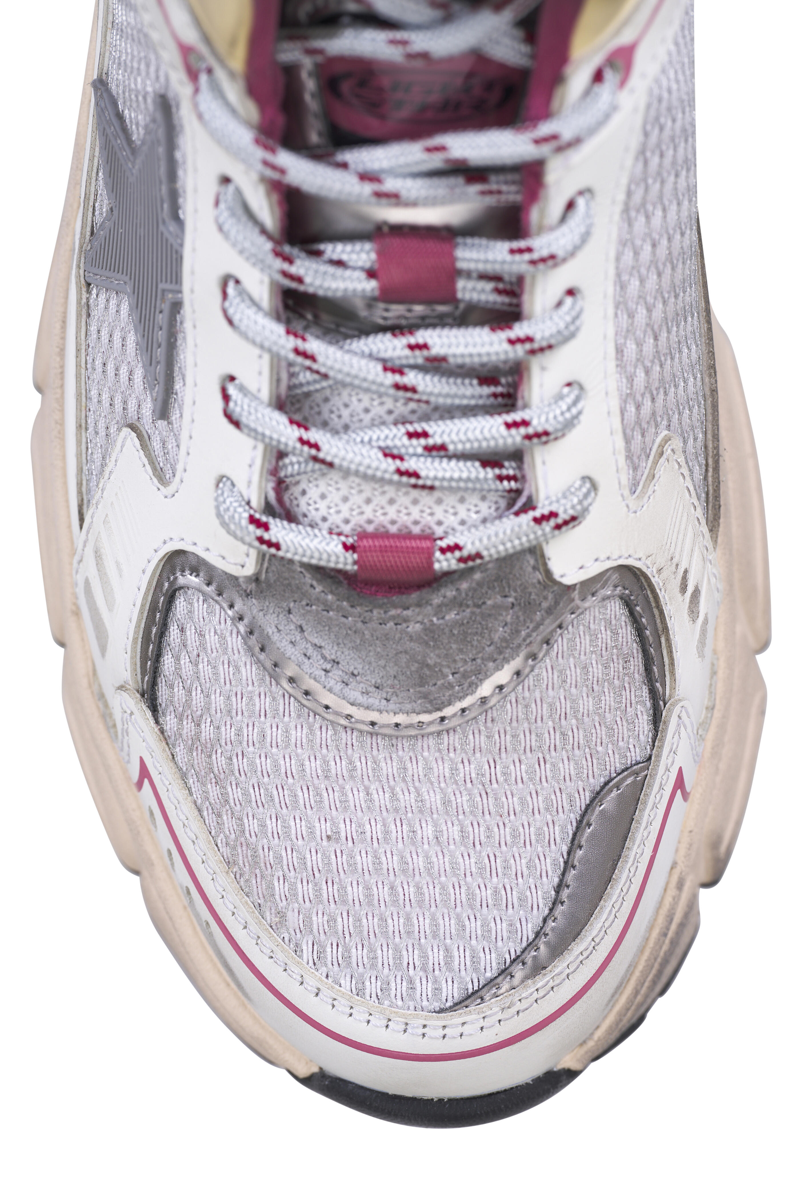 Leather and mesh upper. Round toe. Lace up closure; back pull tab. Cushioned collar. Textile lining. Rubber sole. Distressed detailing. Made in Italy.