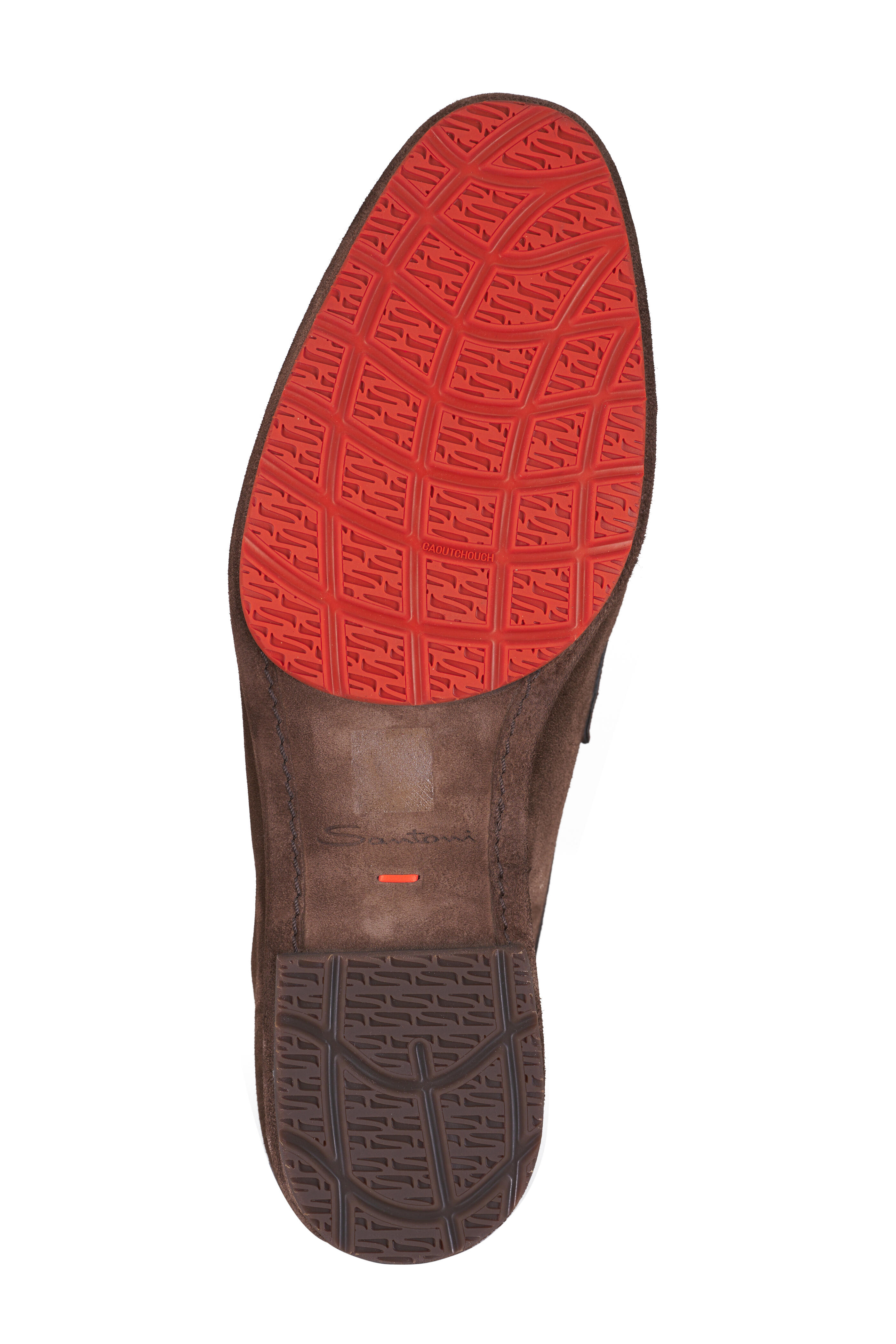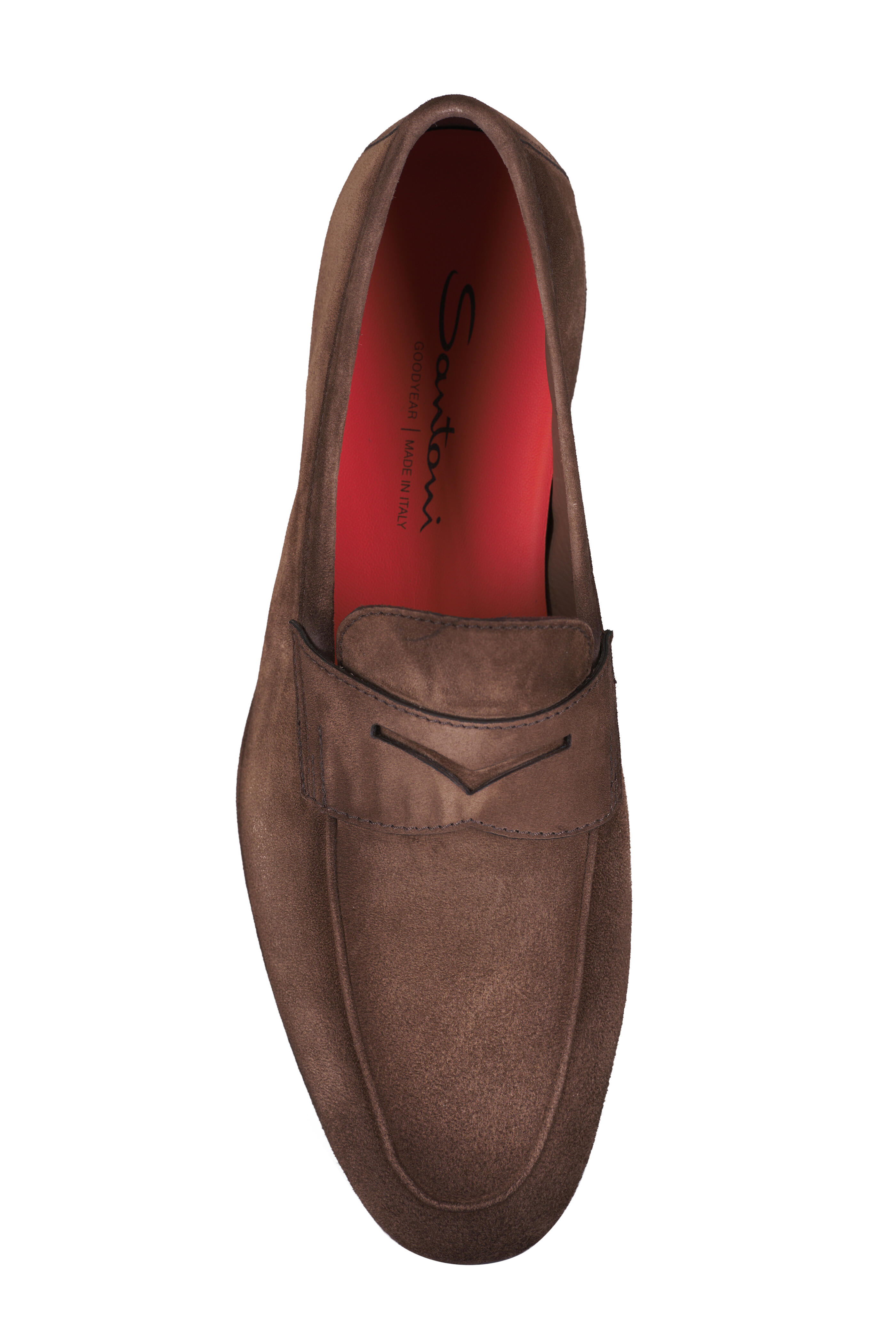 Suede upper. Tapered toe. Penny strap at vamp. Unlined; cushioned insole. Rubber sole. Made in Italy.