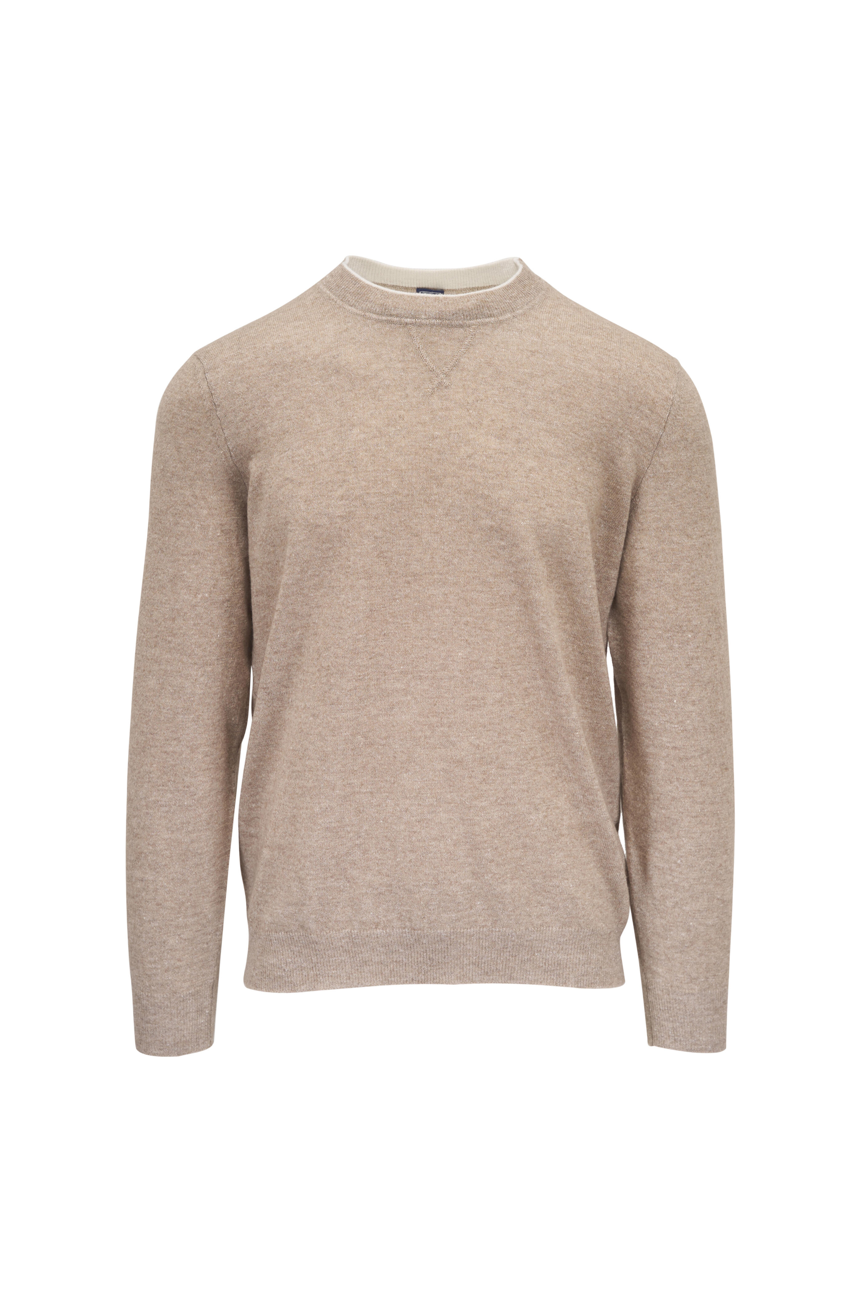 • Fedeli - Mushroom Cashmere & Linen Crewneck Sweater