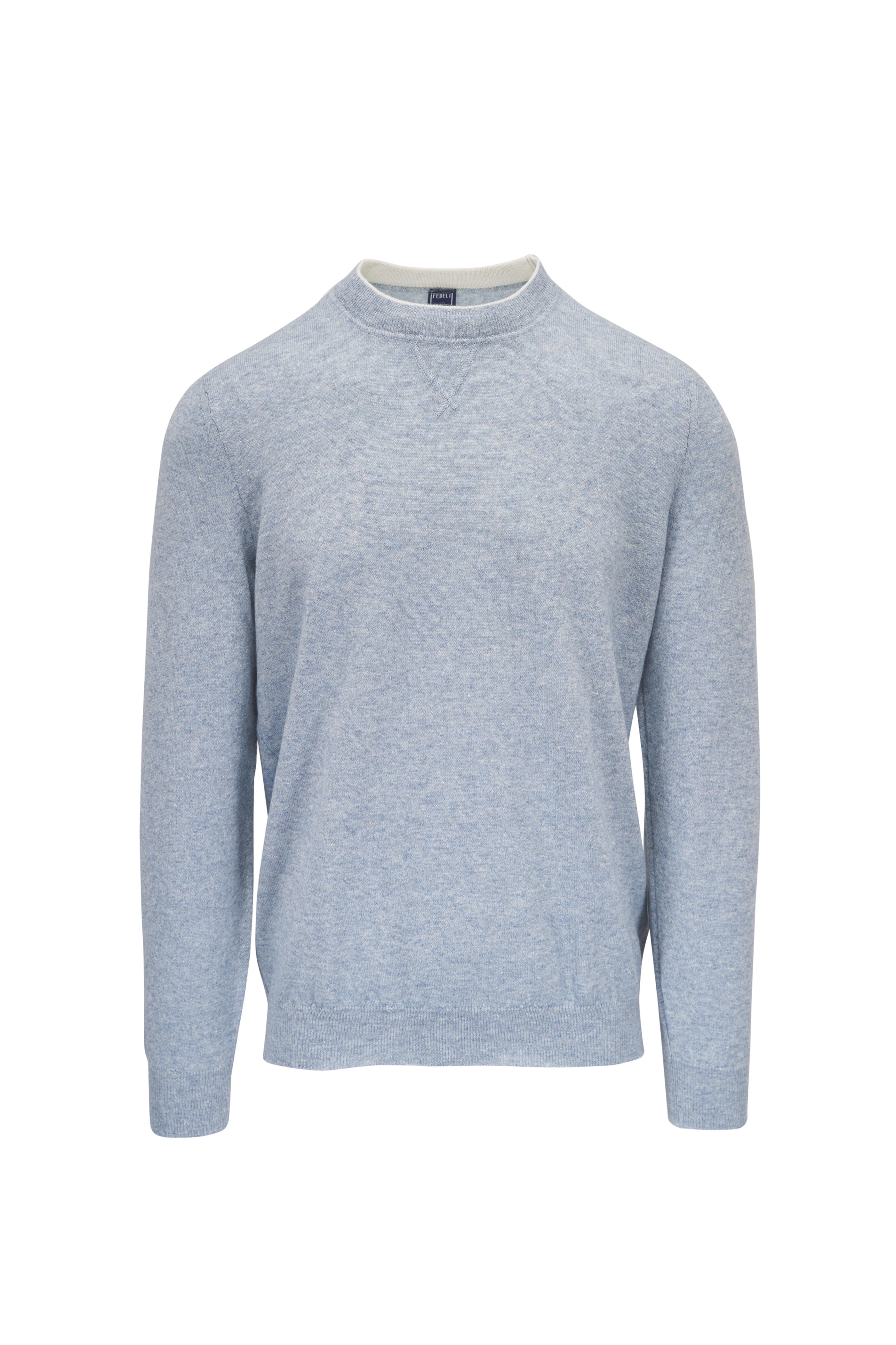 • Fedeli - Light Blue Cashmere & Linen Crewneck Sweater