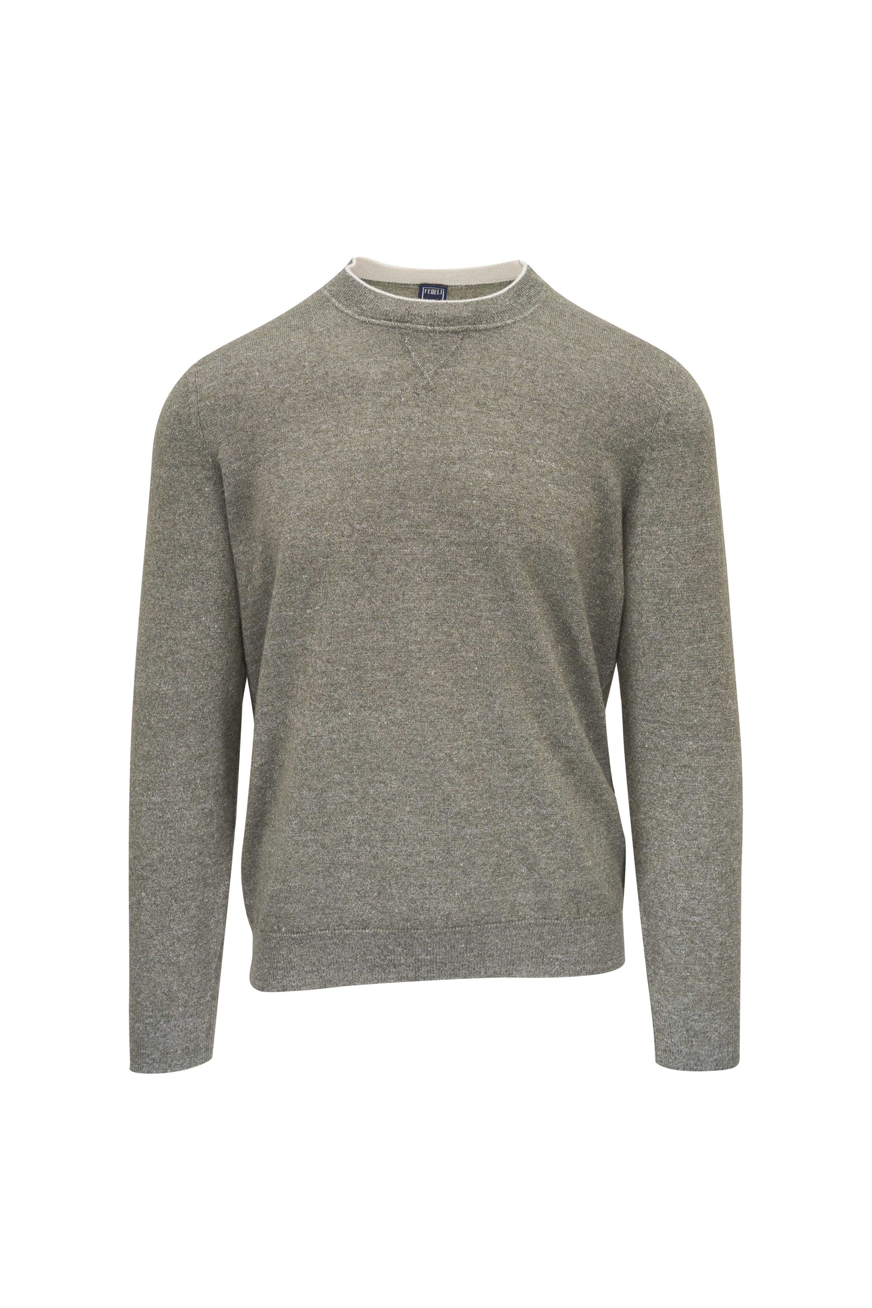 • Fedeli - Olive Cashmere & Linen Crewneck Sweater