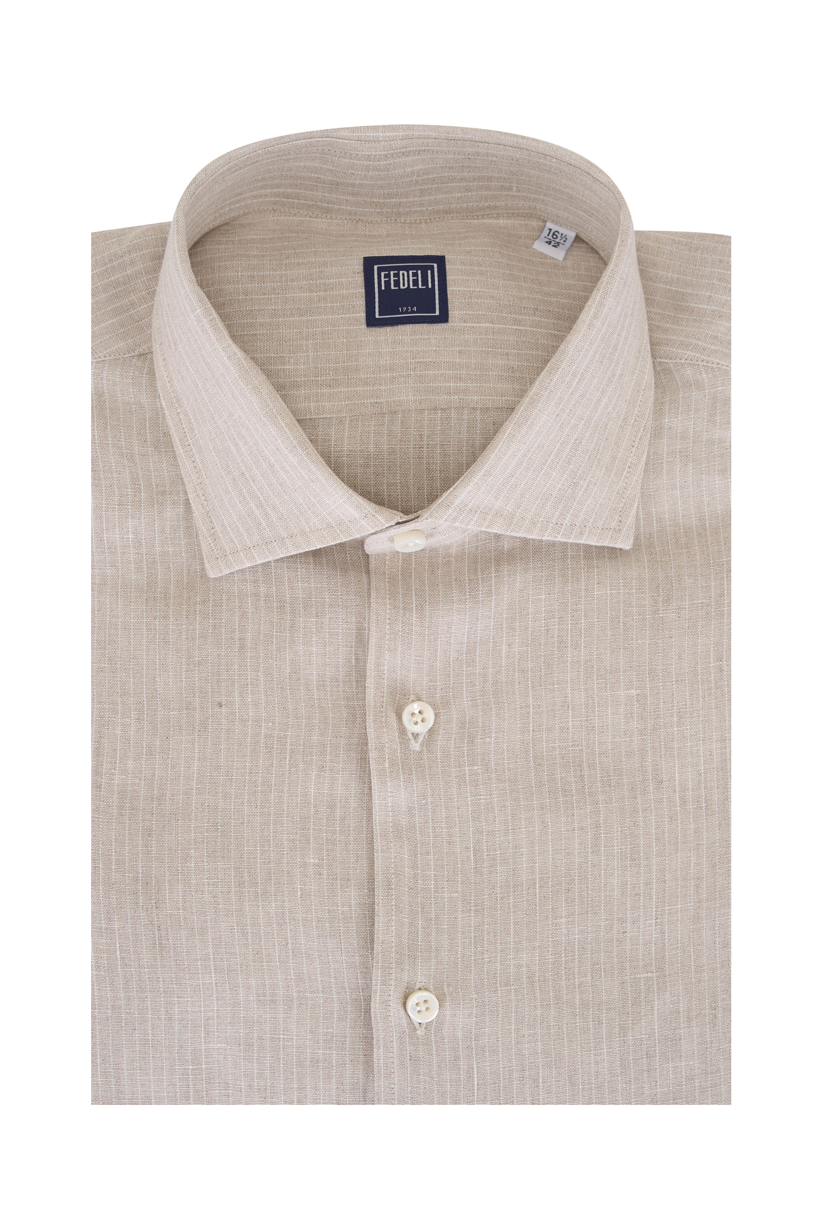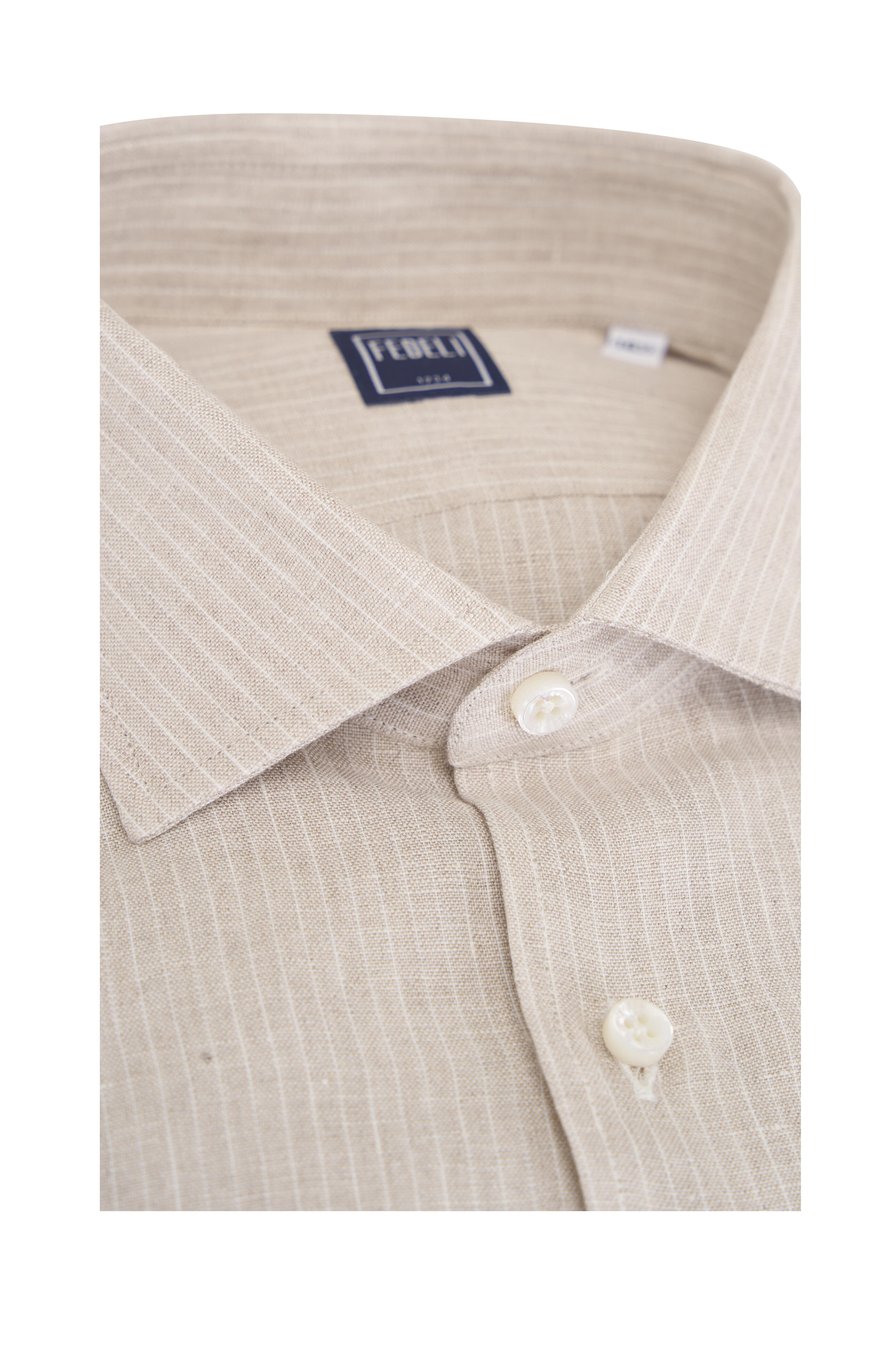 Tan Stripe Linen Dress Shirt