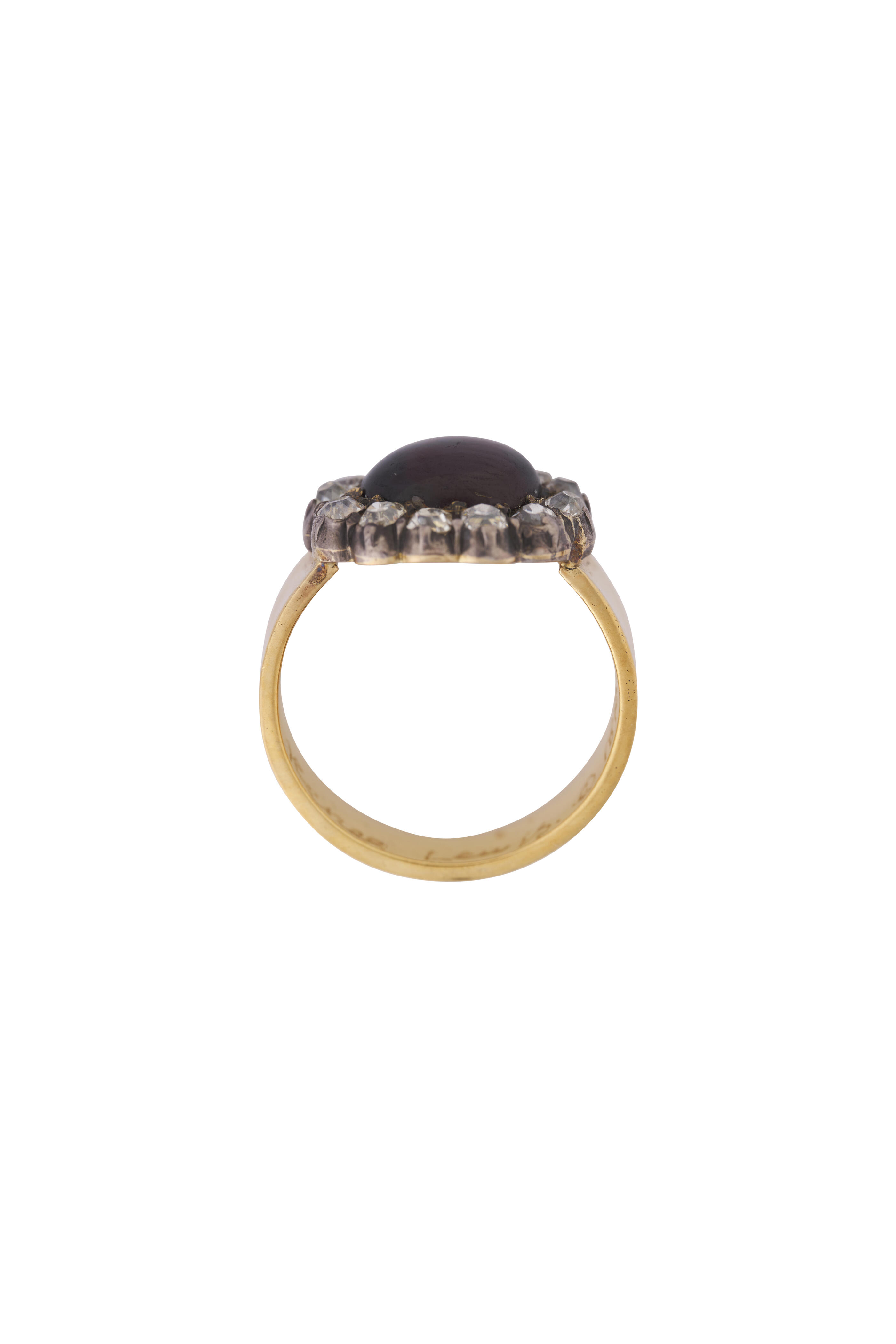18k Yellow Gold. Diamond. Almandine Garnet.