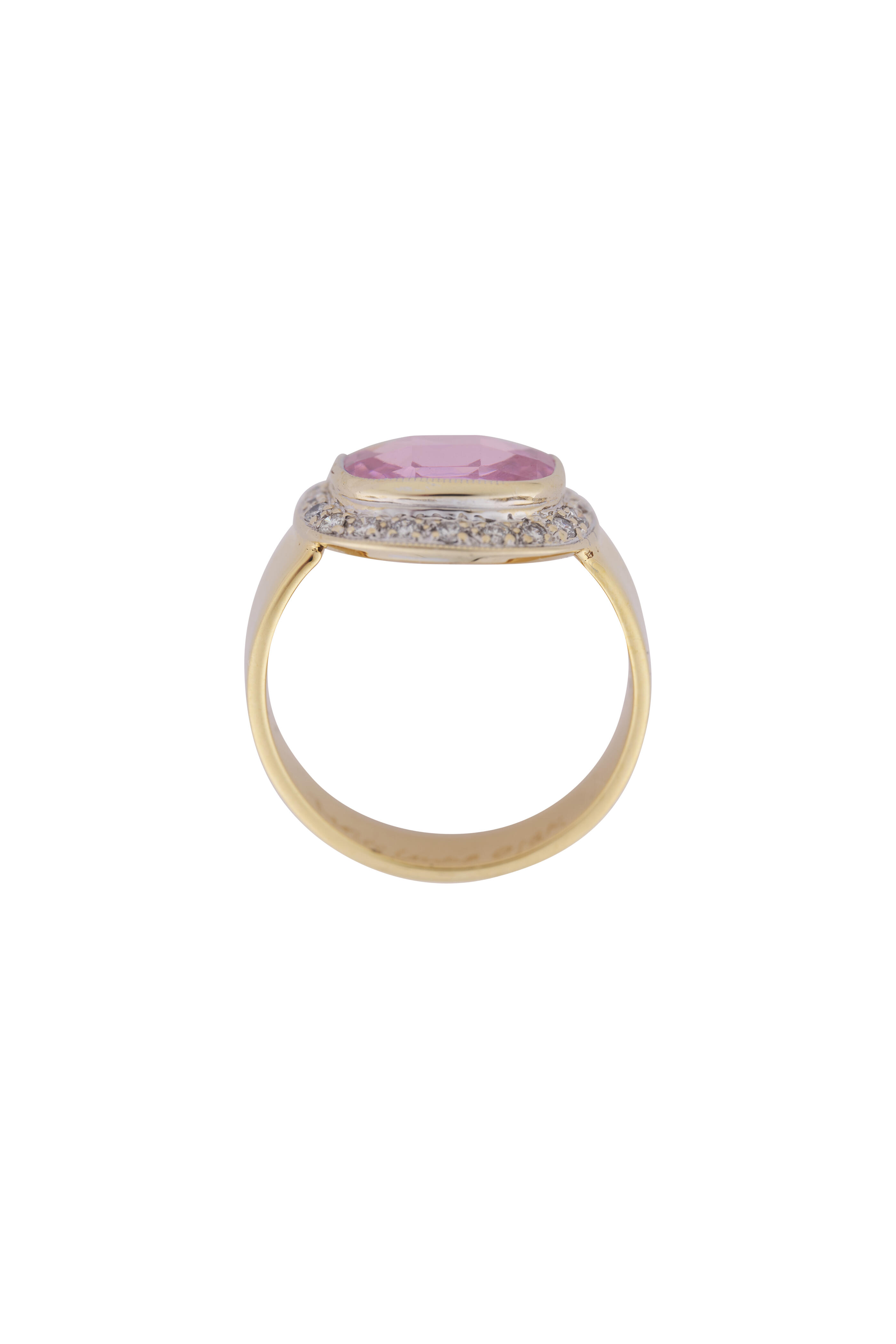 18k yellow gold. 18k white gold. Diamond. Kunzite.