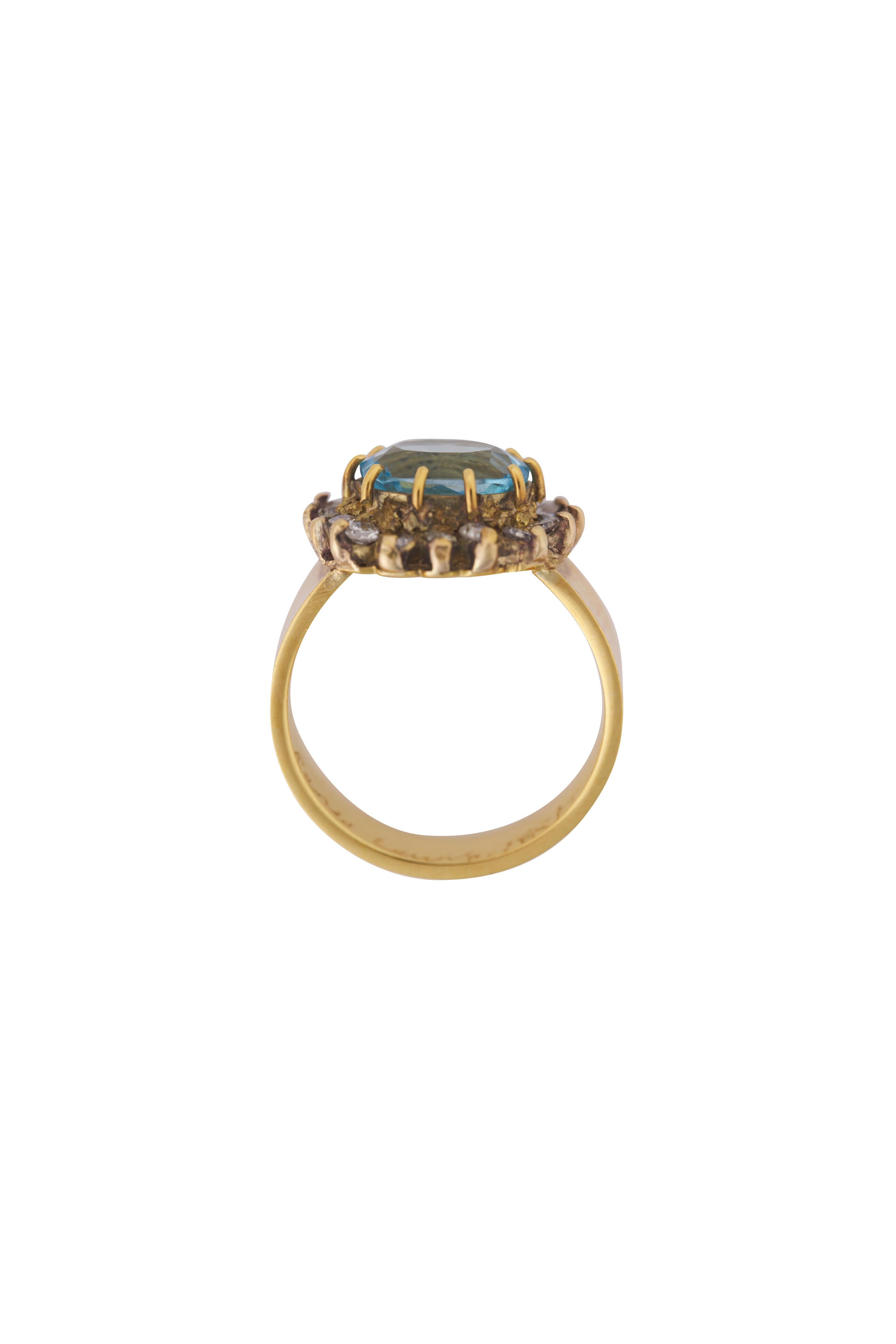 18k yellow gold. 18k white gold. Diamond. Aquamarine.
